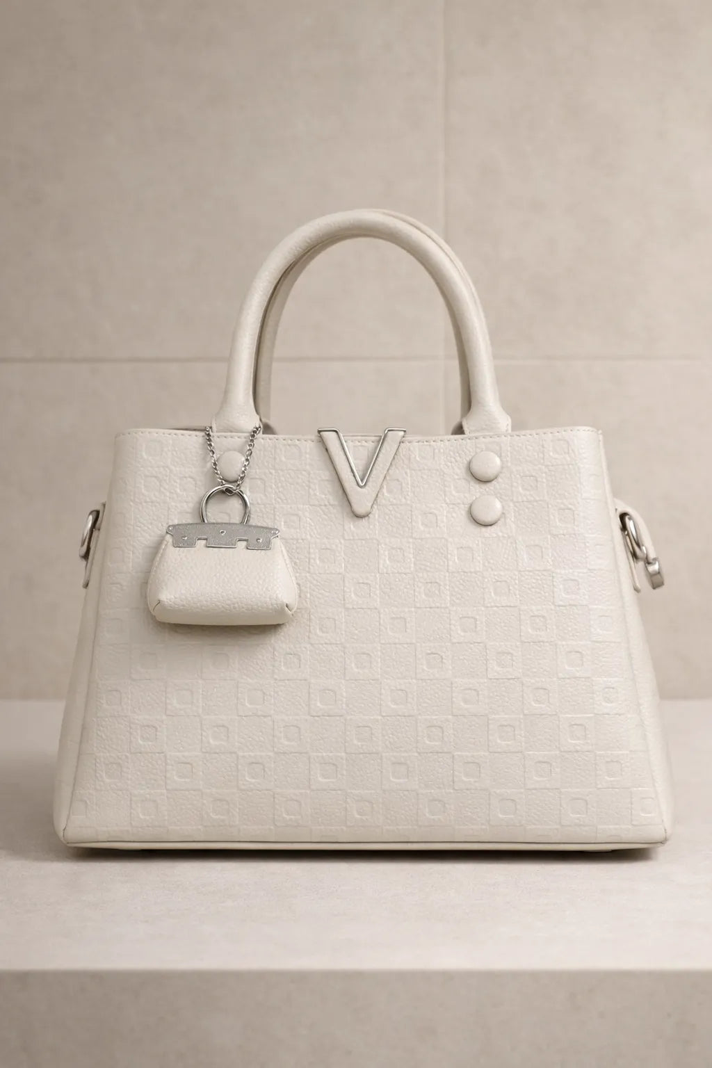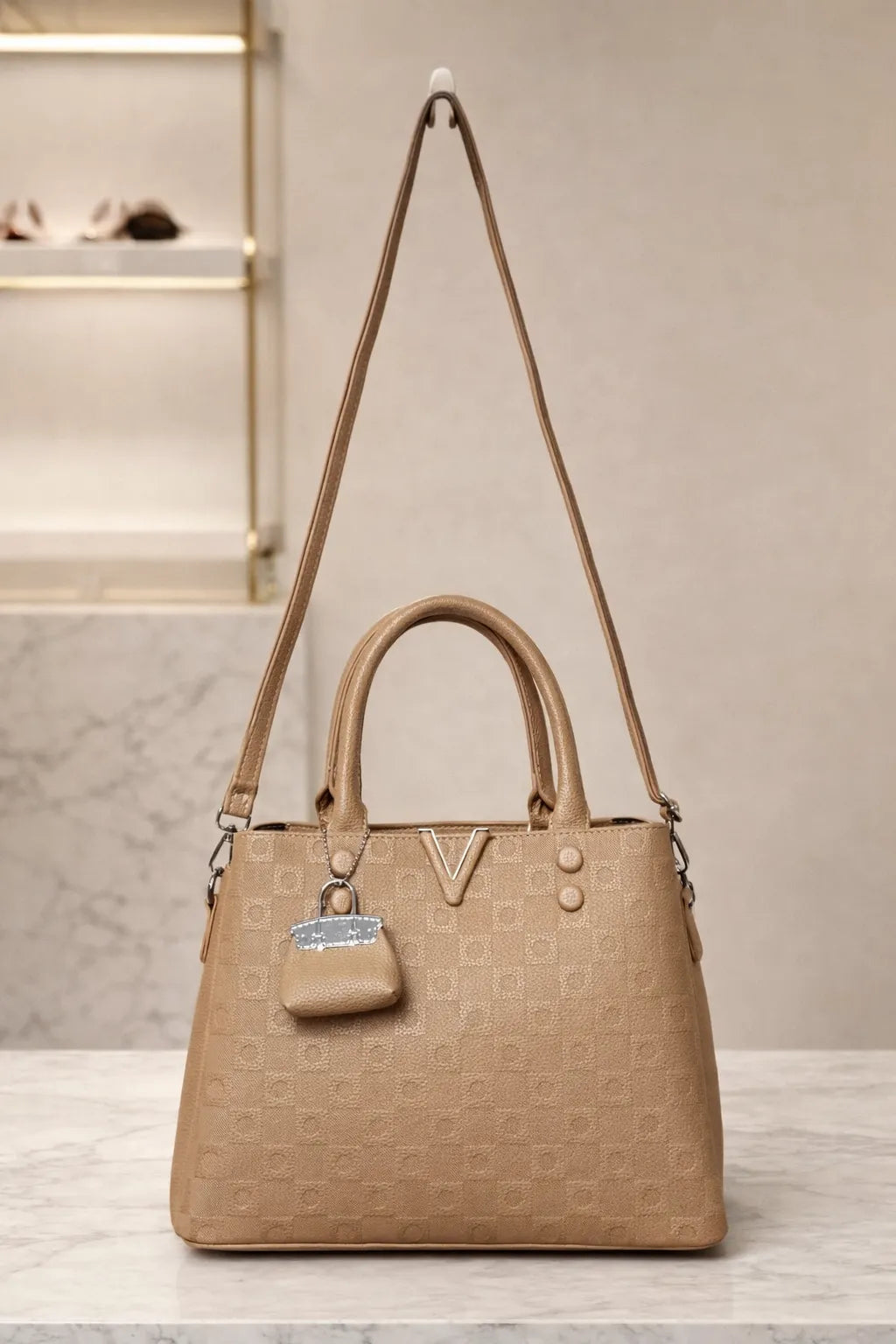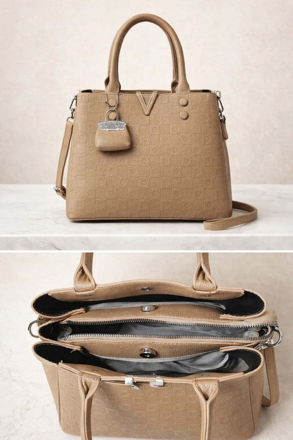 Upgrade your everyday style with this women’s structured top handle handbag, designed with an elegant textured finish and a modern silhouette. Featuring both top handles and a detachable crossbody strap, this versatile handbag is perfect for shopping, holidays, work, and daily wear.
