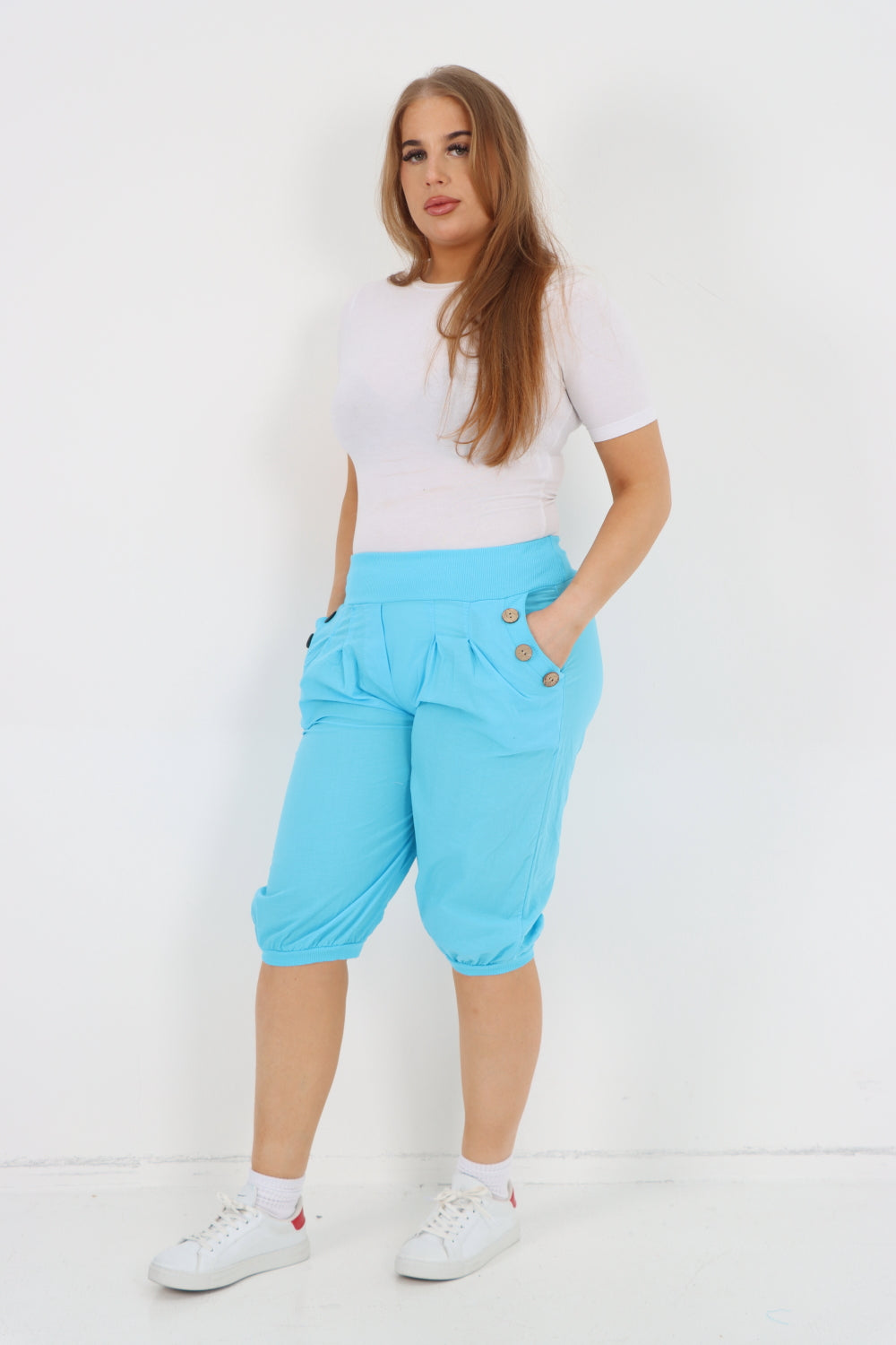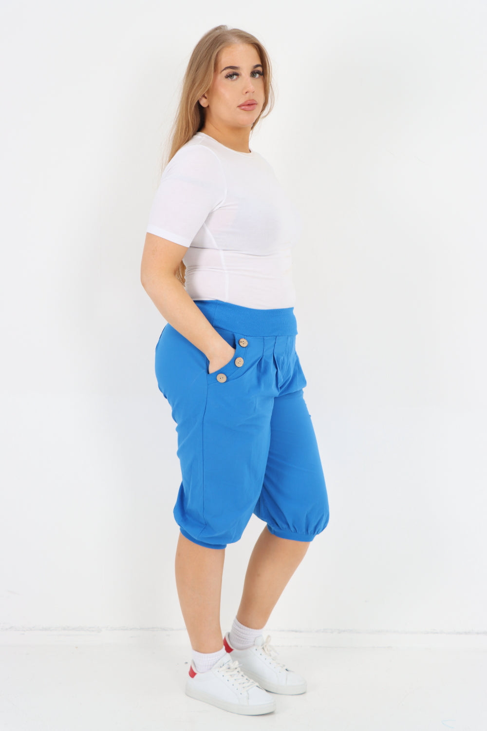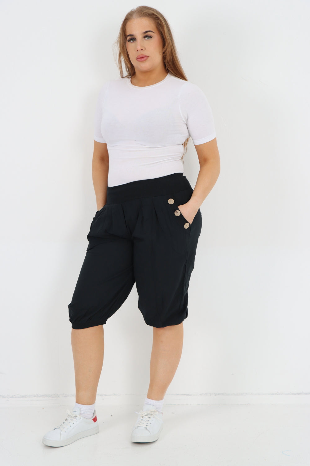 Add a stylish and practical option to your stock with our Italian Crop Capri Trousers  with button detail. Made in Italy from soft, breathable fabric with a slight stretch, these wholesale women’s trousers offer all-day comfort with a flattering fit. Side pockets and button details add both function and style, making them a go-to piece for everyday wear.