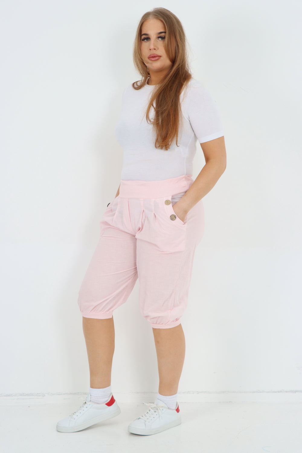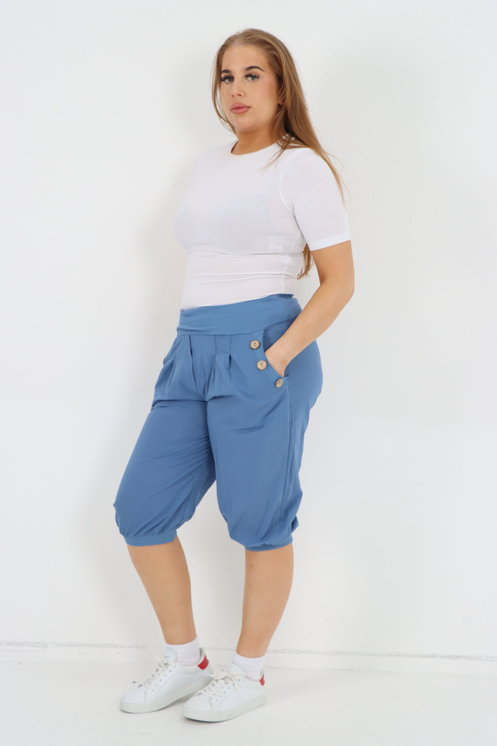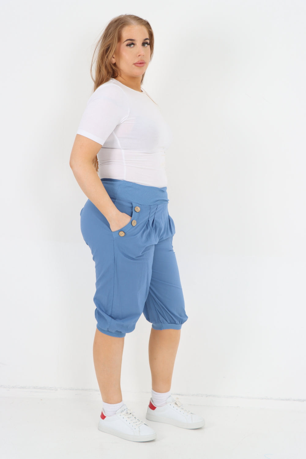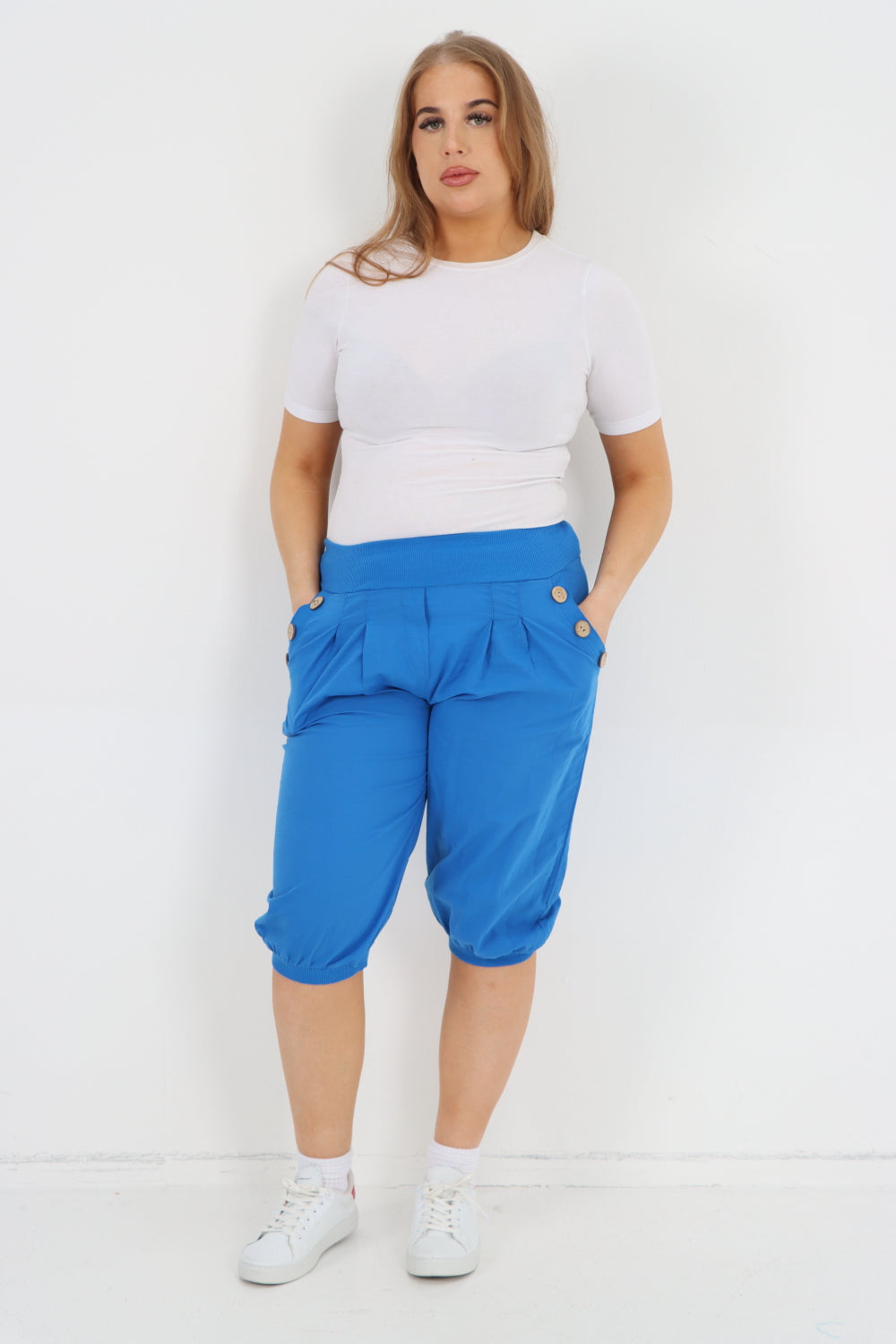 Add a stylish and practical option to your stock with our Italian Crop Capri Trousers  with button detail. Made in Italy from soft, breathable fabric with a slight stretch, these wholesale women’s trousers offer all-day comfort with a flattering fit. Side pockets and button details add both function and style, making them a go-to piece for everyday wear.