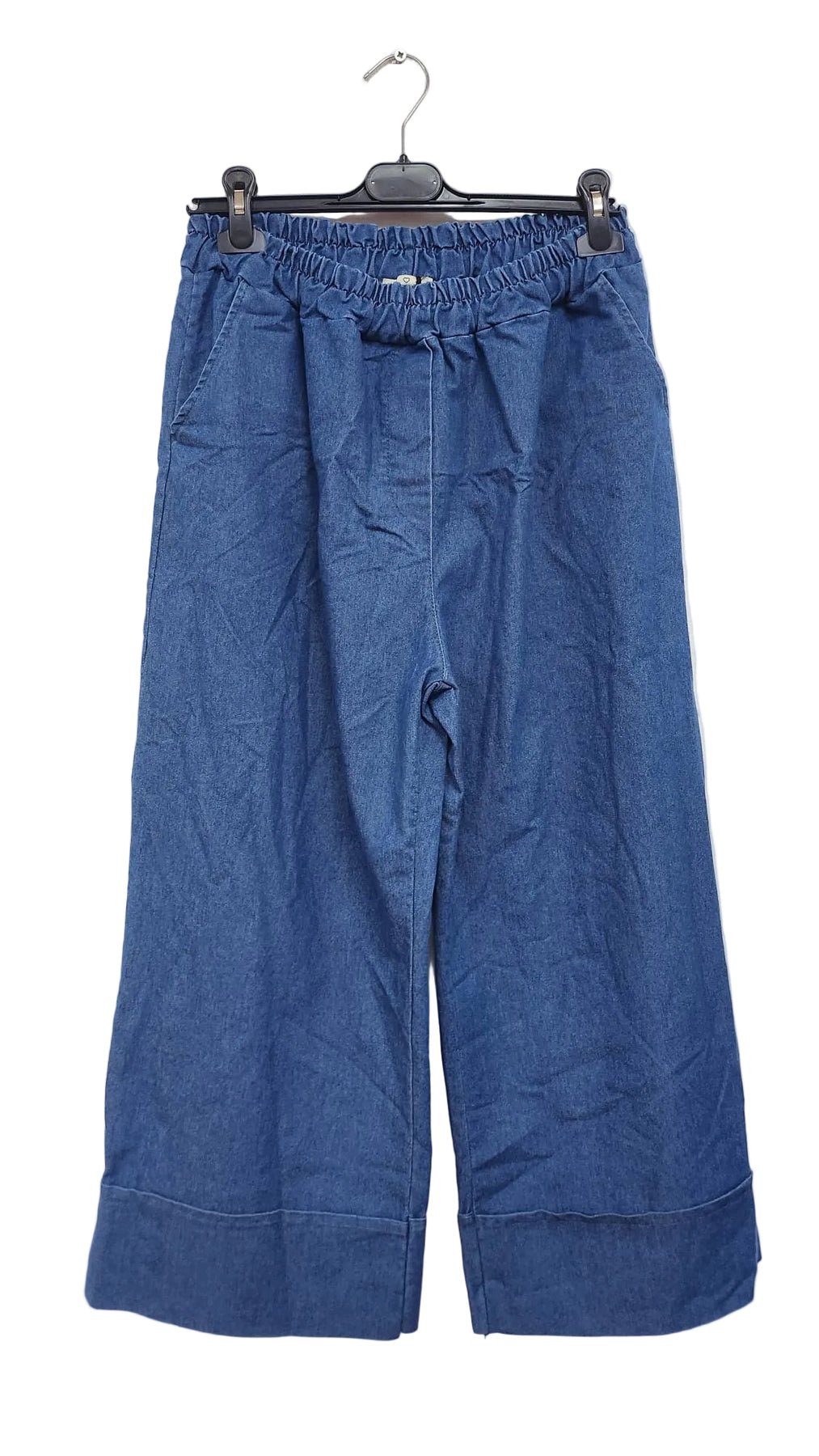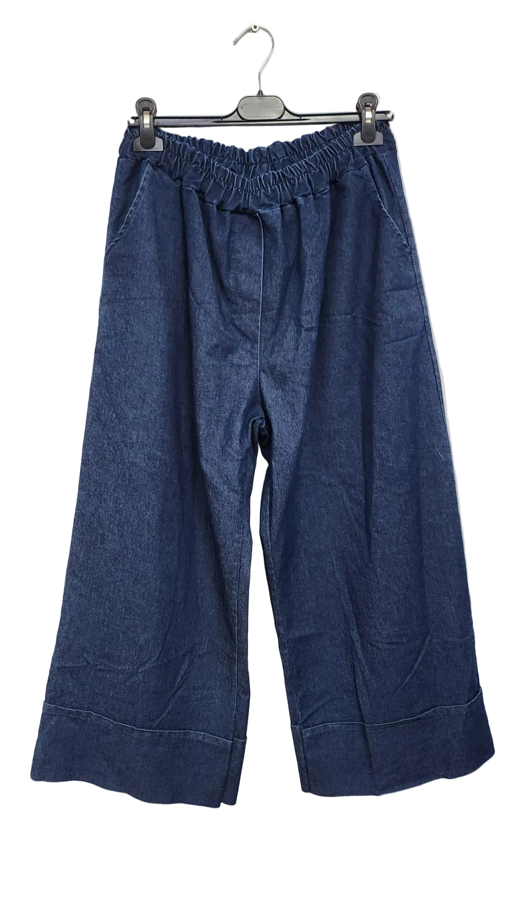 The elasticated waistband provides a comfortable and adjustable fit from 30 to 48 inches, making these trousers ideal for UK sizes 10–22. The folded hem detail adds a contemporary touch, giving the trousers a structured yet casual look that works perfectly for day-to-day wear, travel, or smart-casual outfits.