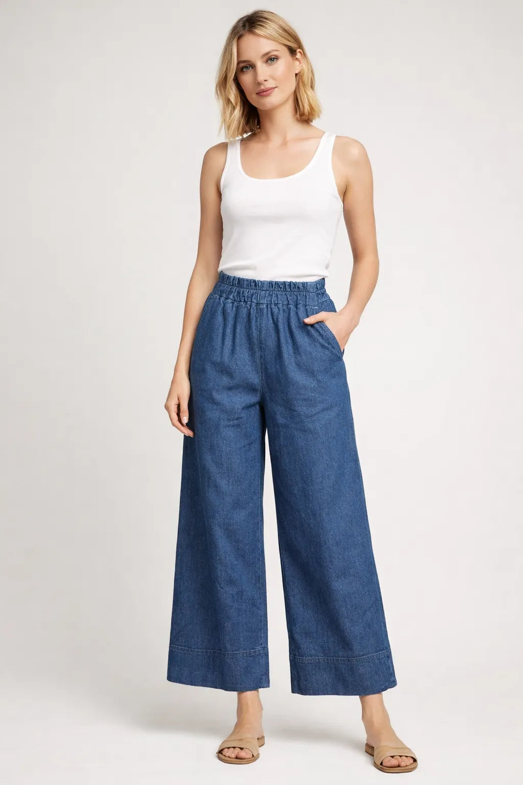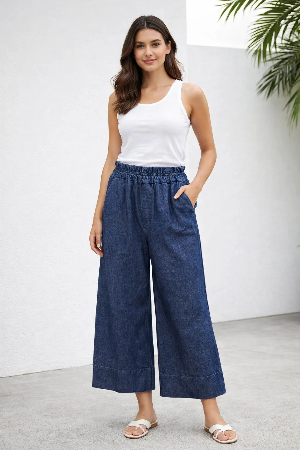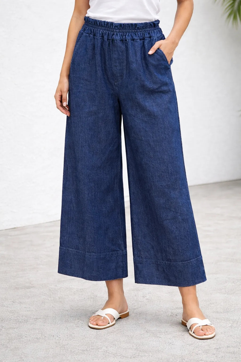 Refresh your everyday essentials with our women’s wide leg denim trousers with folded hem, designed for comfort, flexibility, and effortless styling. Made from a cotton-rich stretch denim, these trousers offer a relaxed silhouette while maintaining a polished, on-trend finish.
