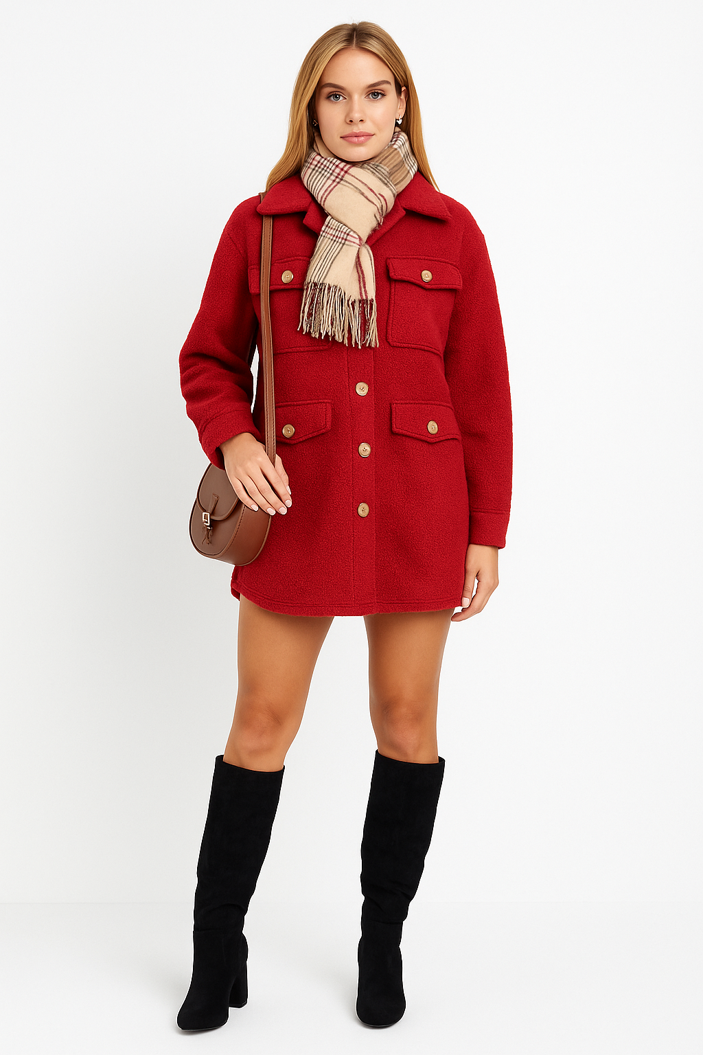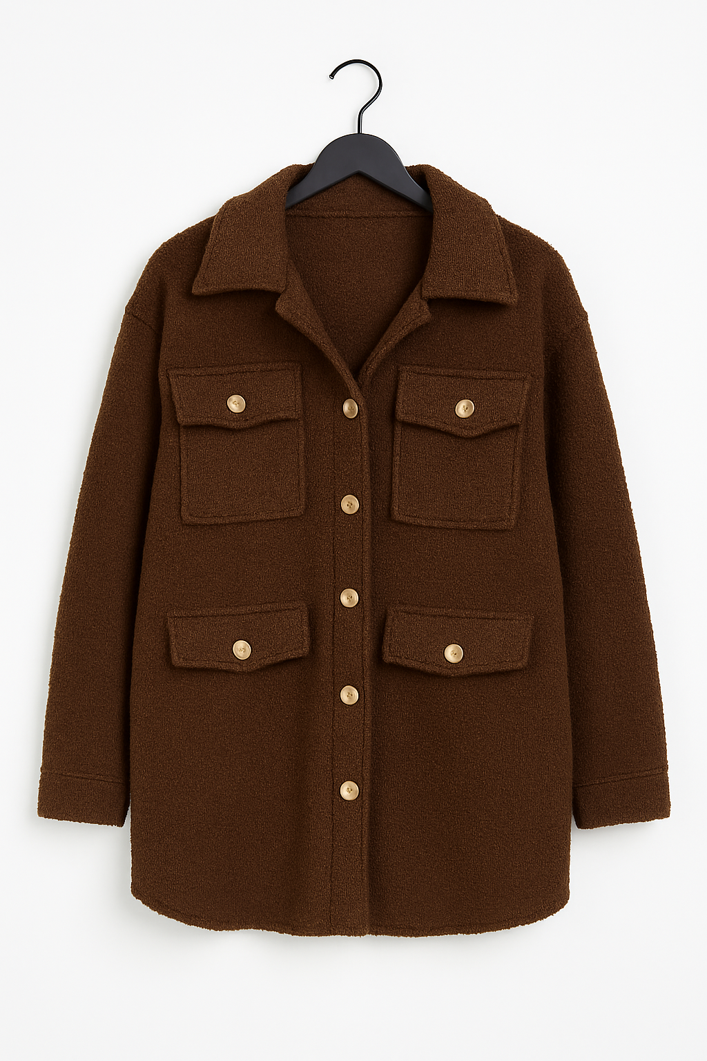 Miss Bold Wholesale ensures each piece meets the highest standards of Italian craftsmanship. The boucle texture, sharp tailoring, and soft finish reflect premium quality your customers will love. Ideal for boutiques, e-commerce platforms, and fashion stockists seeking trendy outerwear at wholesale prices, this shacket is a standout addition to any women's wear range.