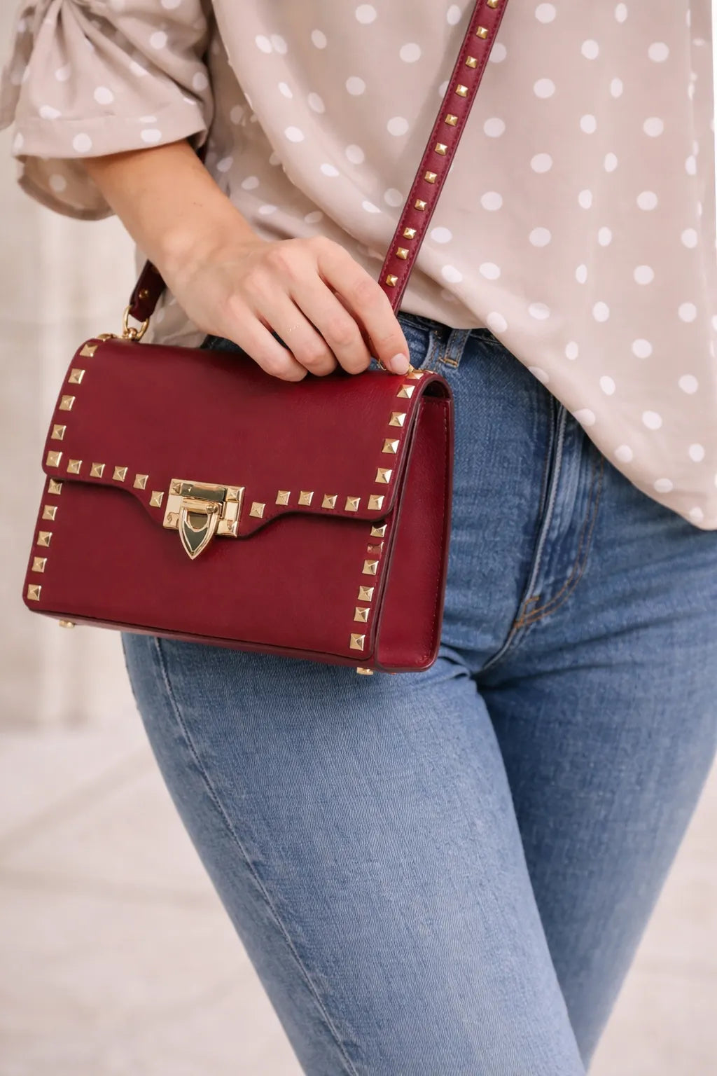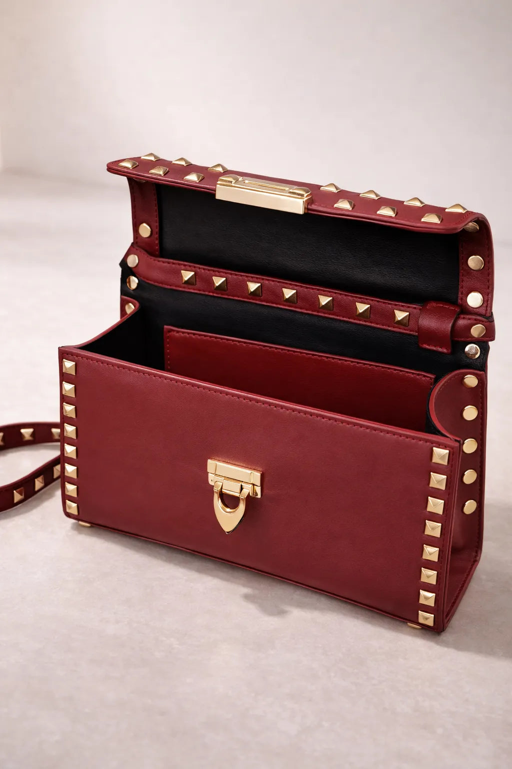 Upgrade your everyday style with this studded crossbody bag, designed for effortless elegance and practicality. Featuring bold stud detailing, a secure gold-tone lock closure, and a structured silhouette, this bag is the perfect balance of fashion and function.