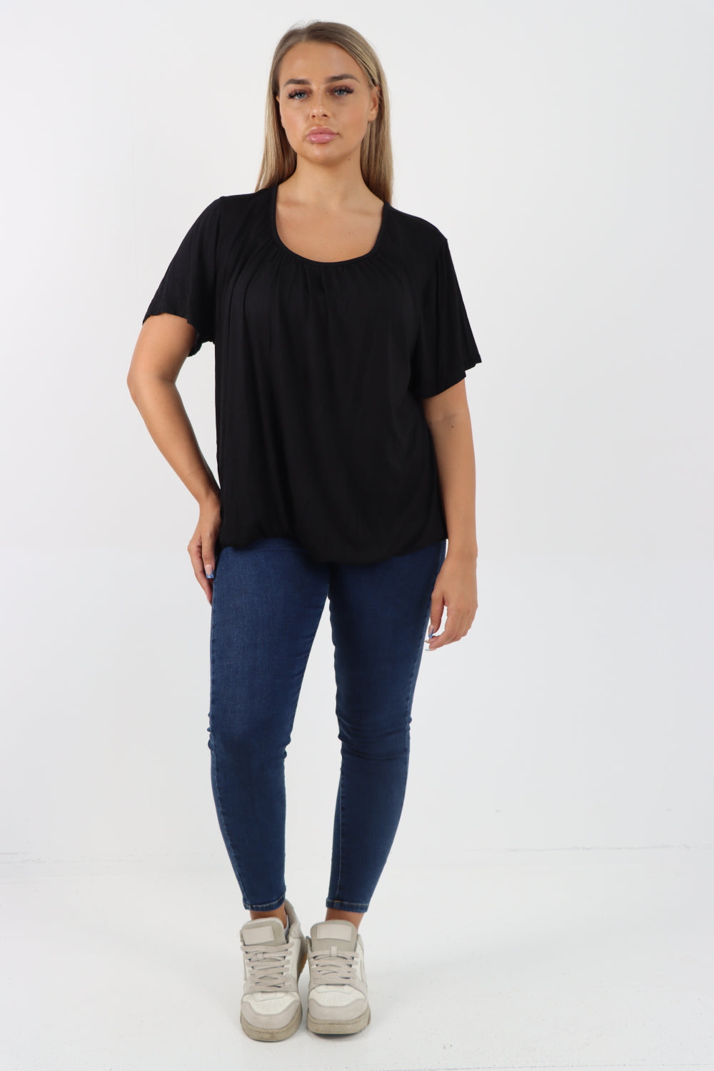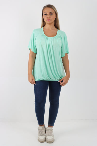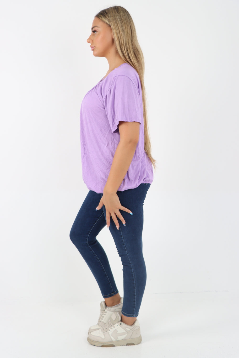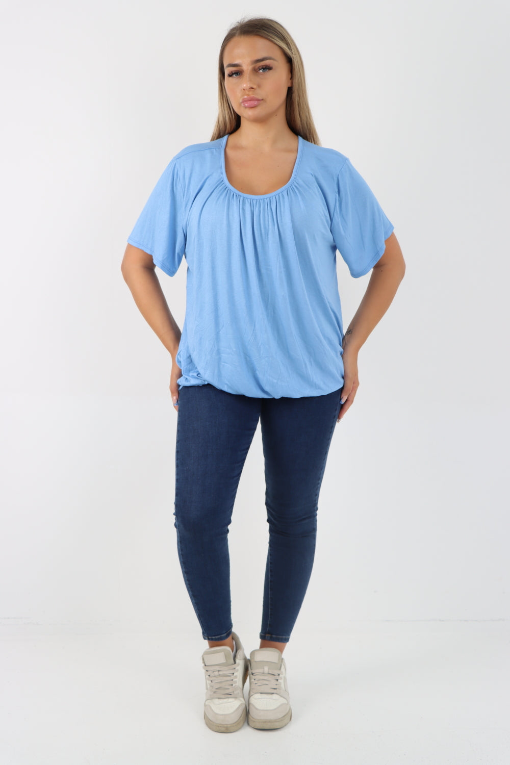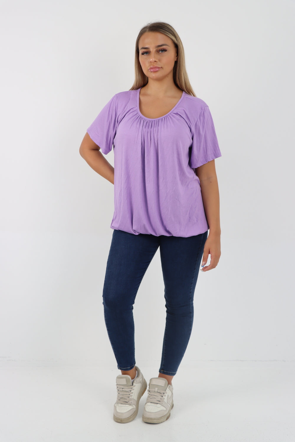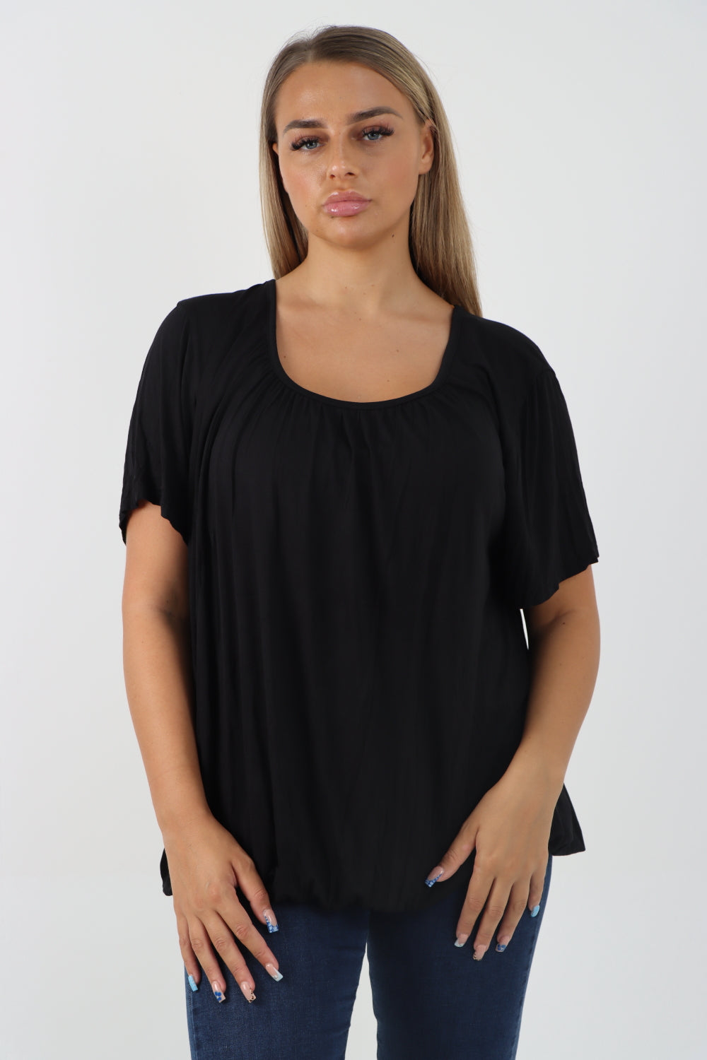 Made in Italy Bubble Hem Stretchy Round Neck Short Sleeve Top