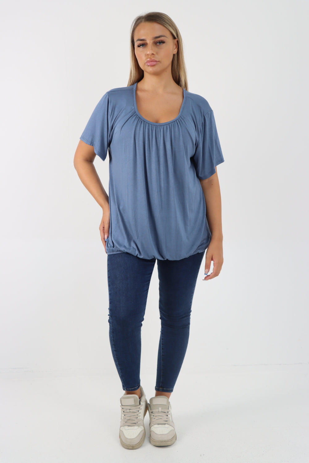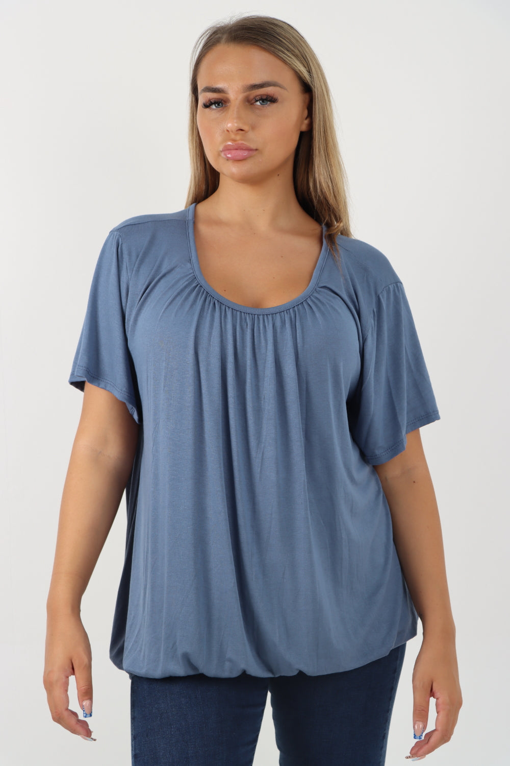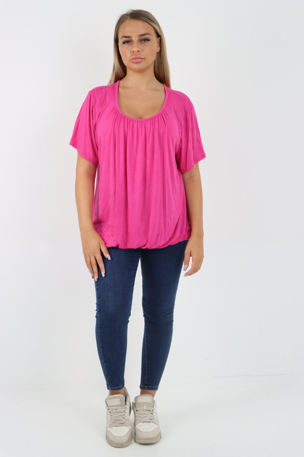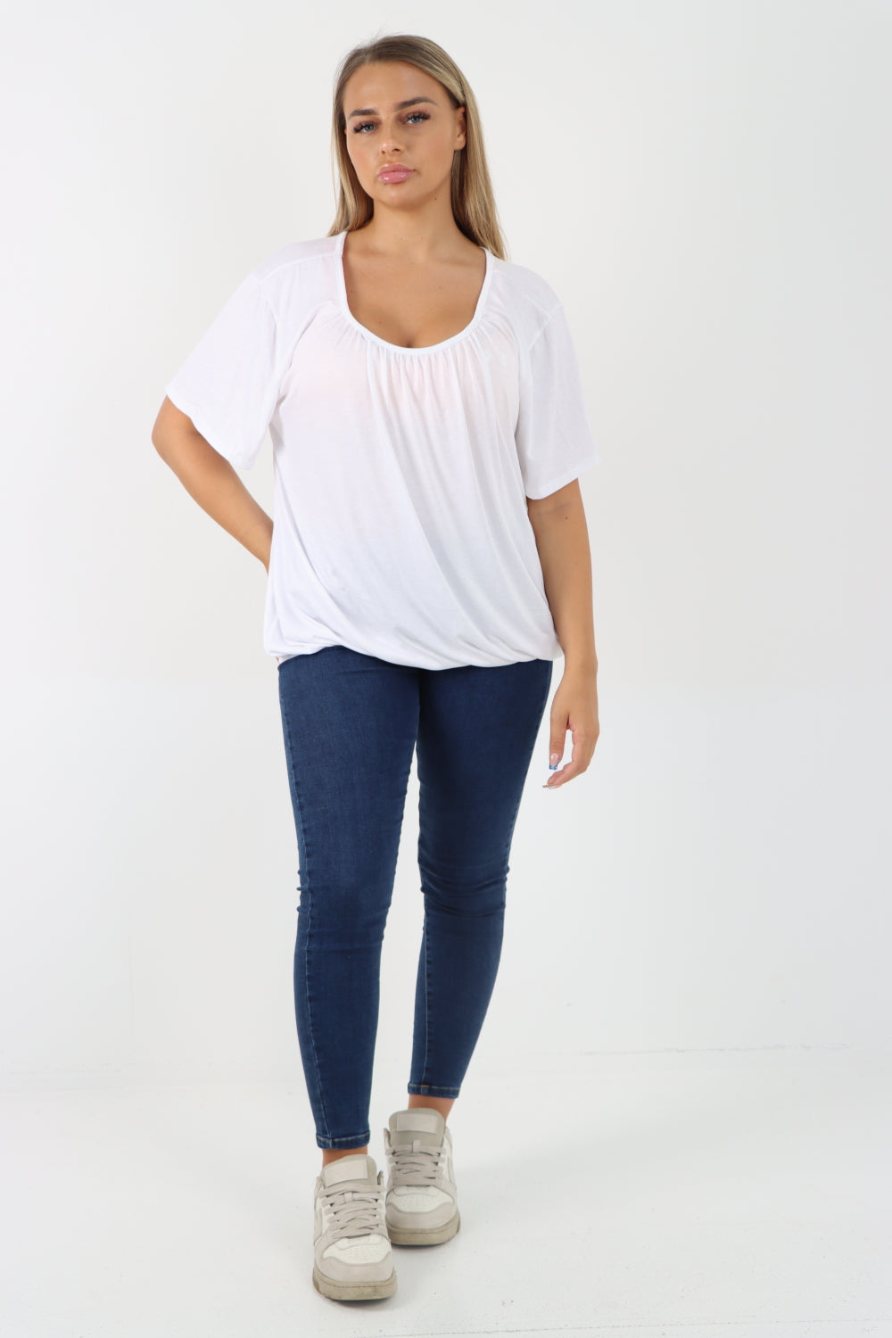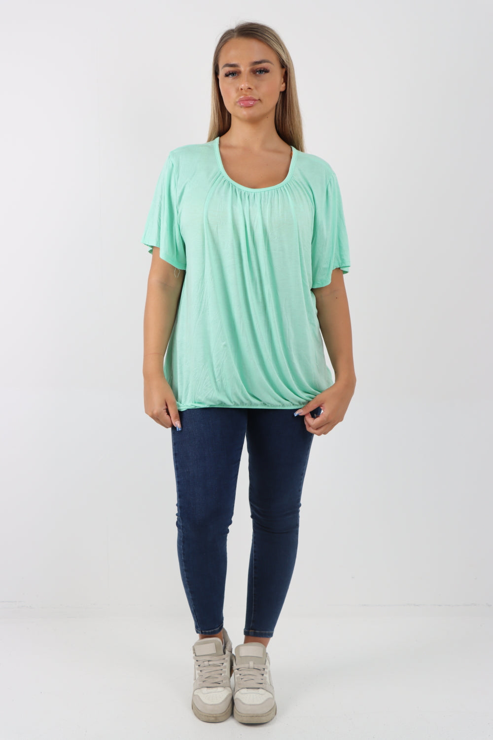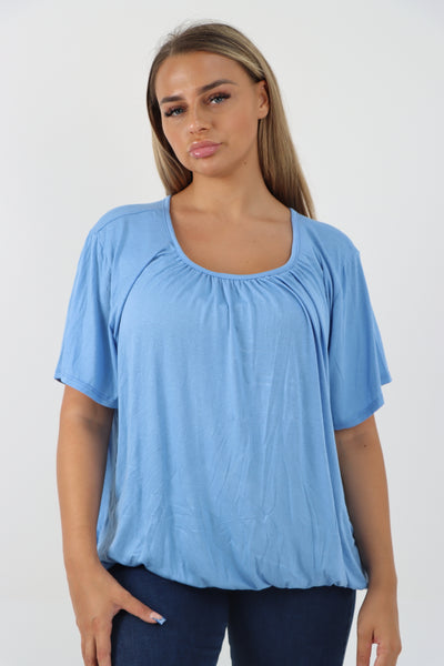 Made in Italy Bubble Hem Stretchy Round Neck Short Sleeve Top