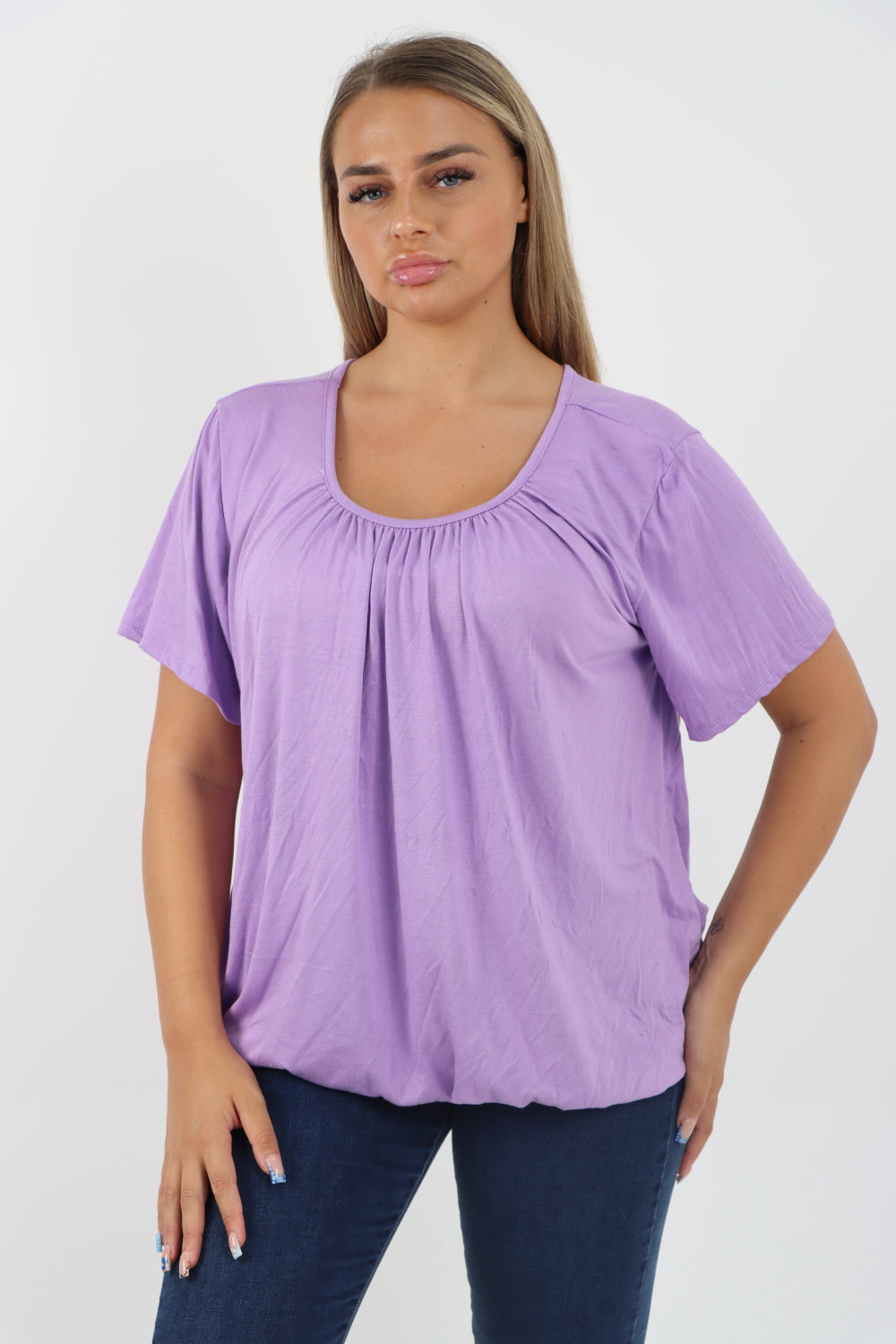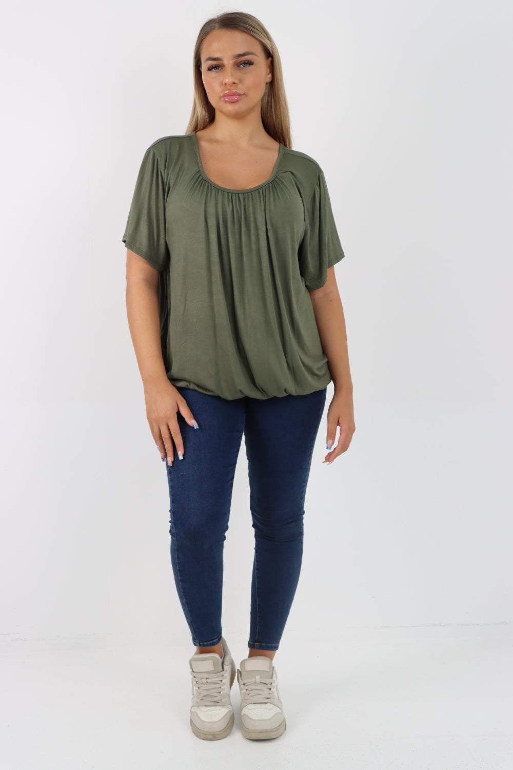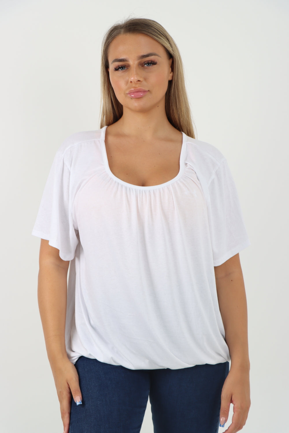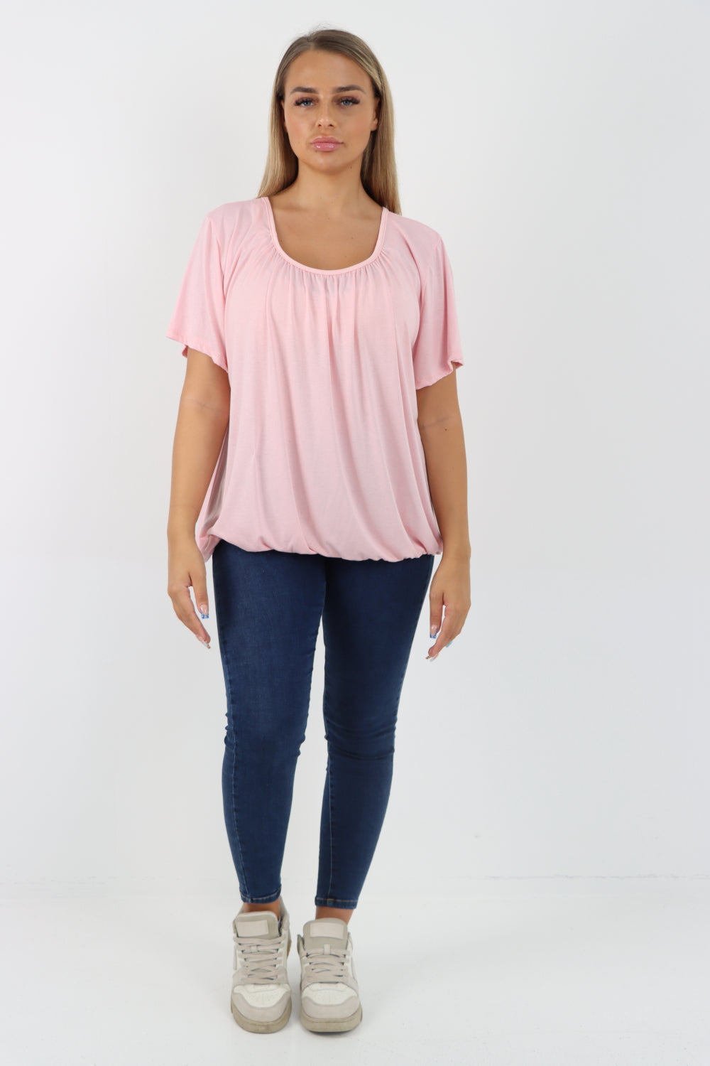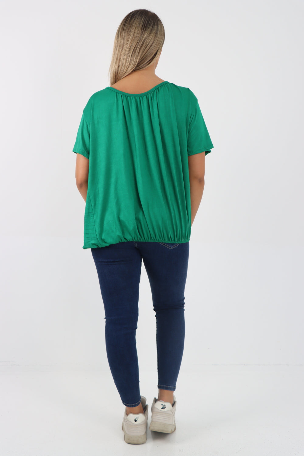 Made in Italy Bubble Hem Stretchy Round Neck Short Sleeve Top