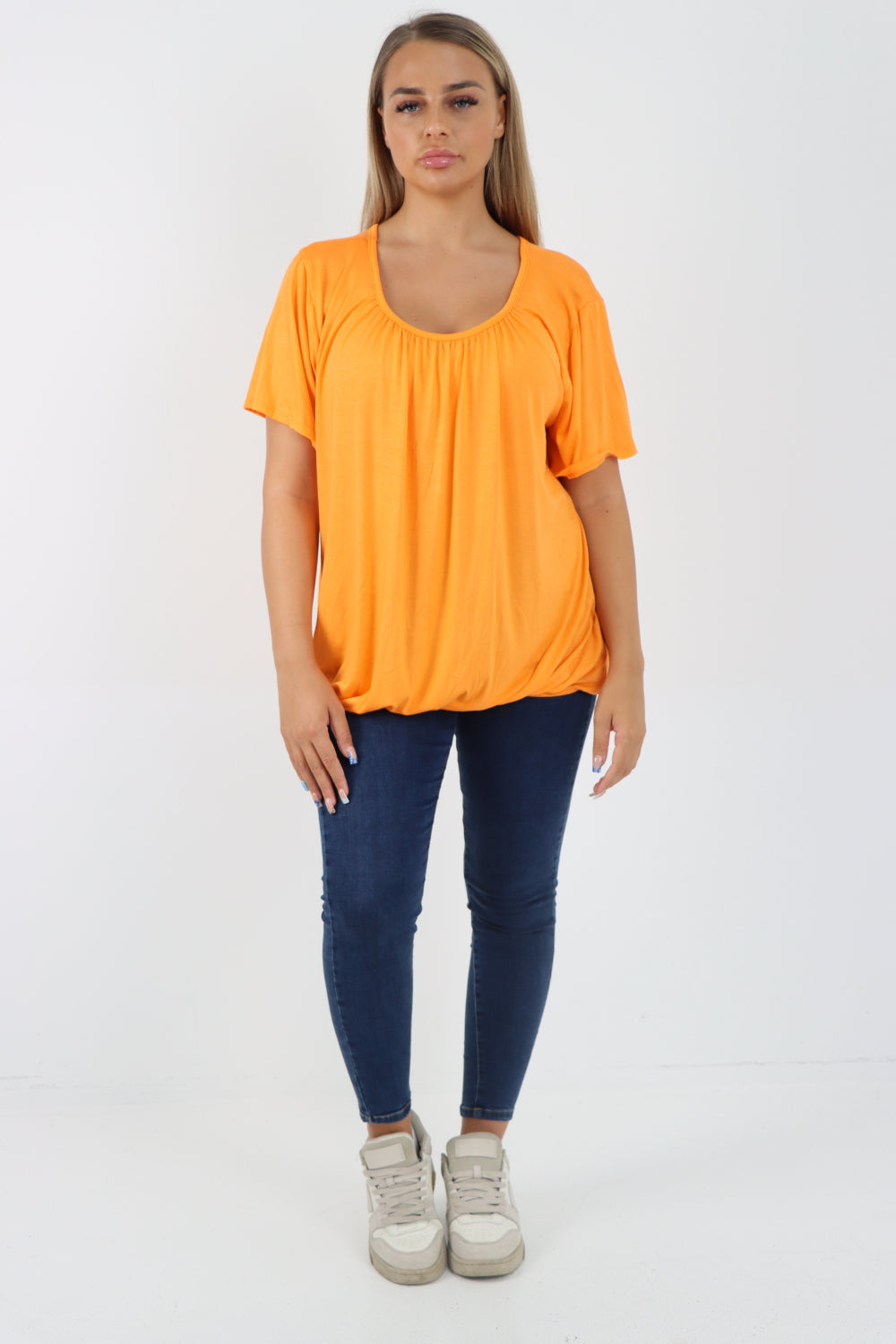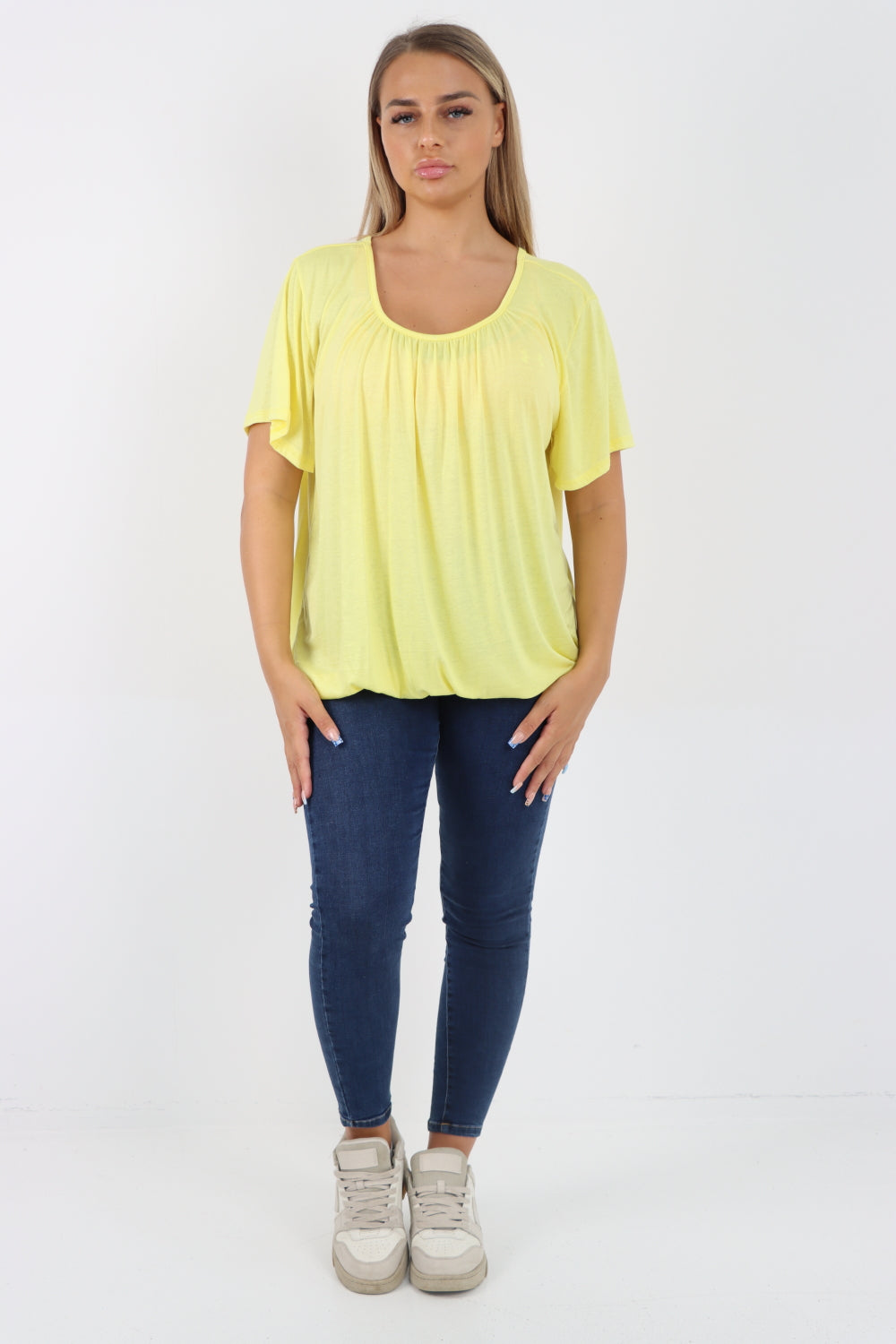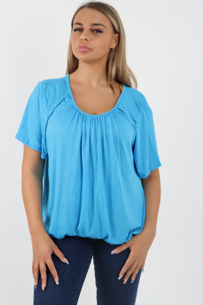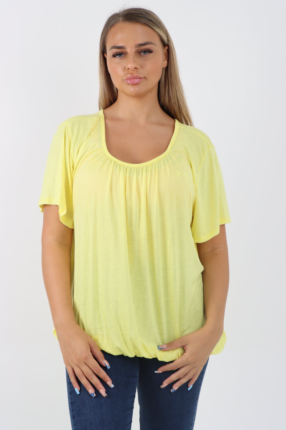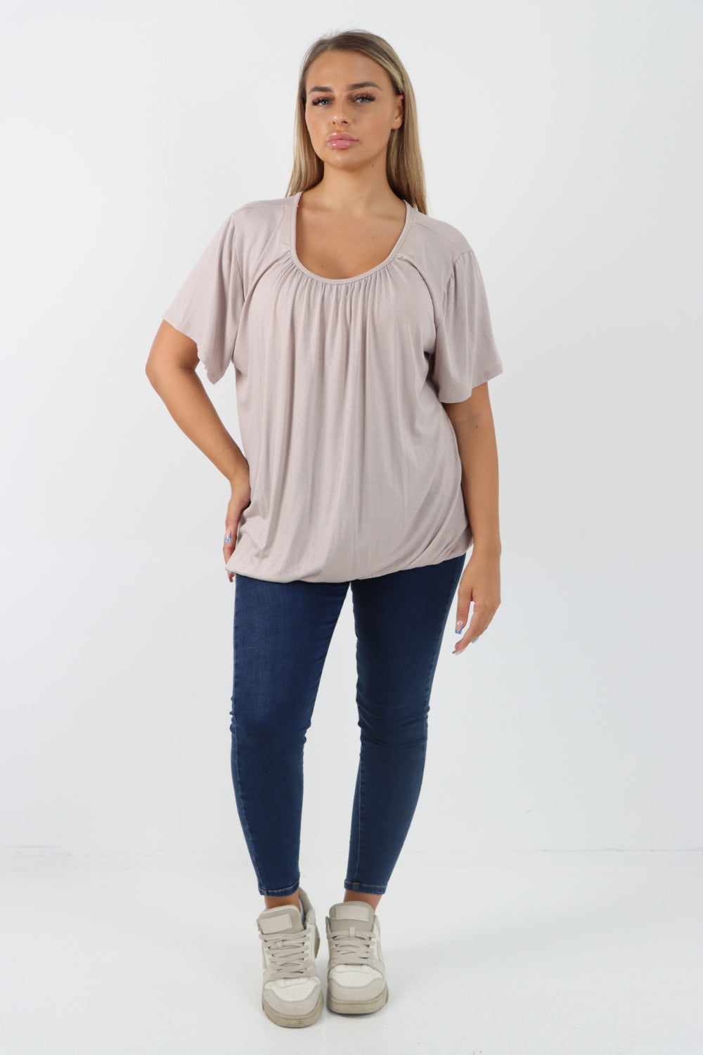 Made in Italy Bubble Hem Stretchy Round Neck Short Sleeve Top