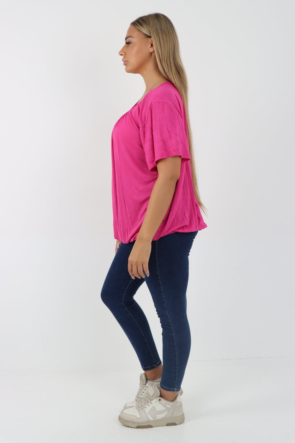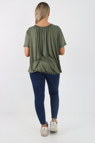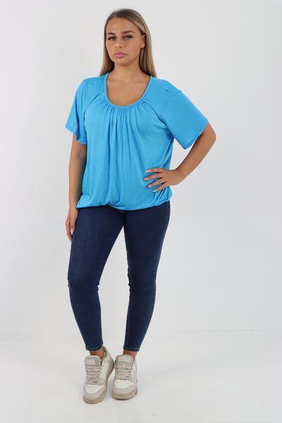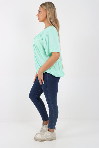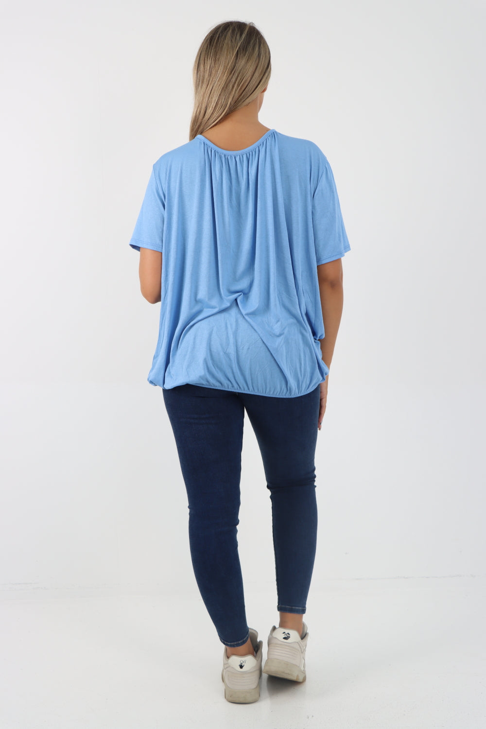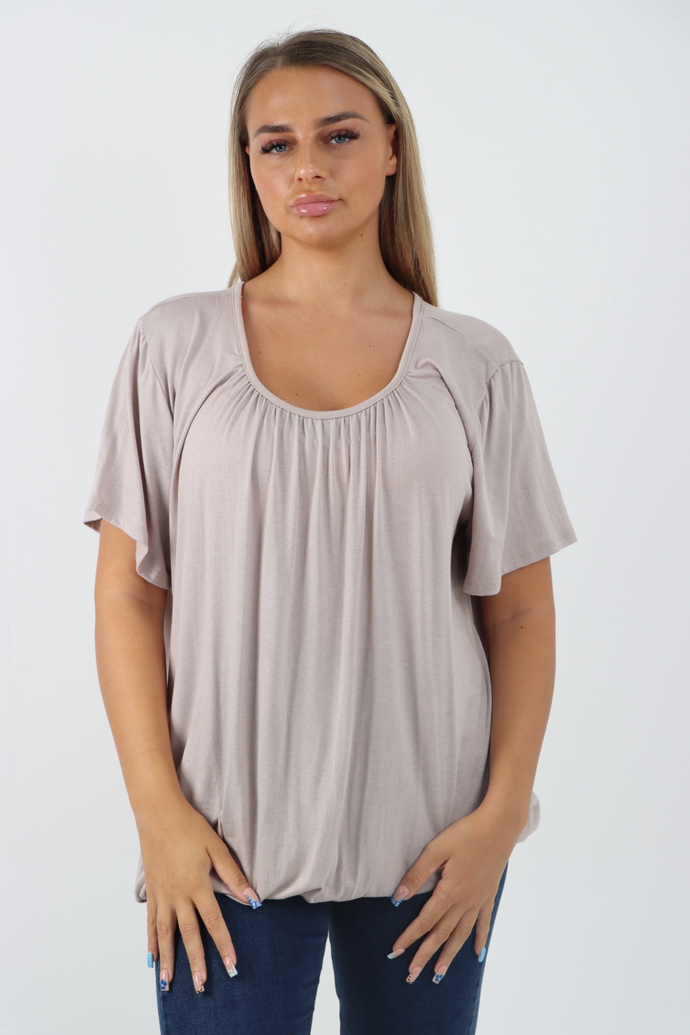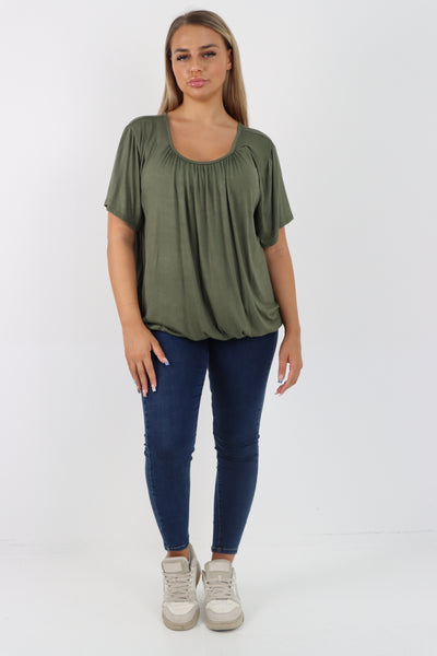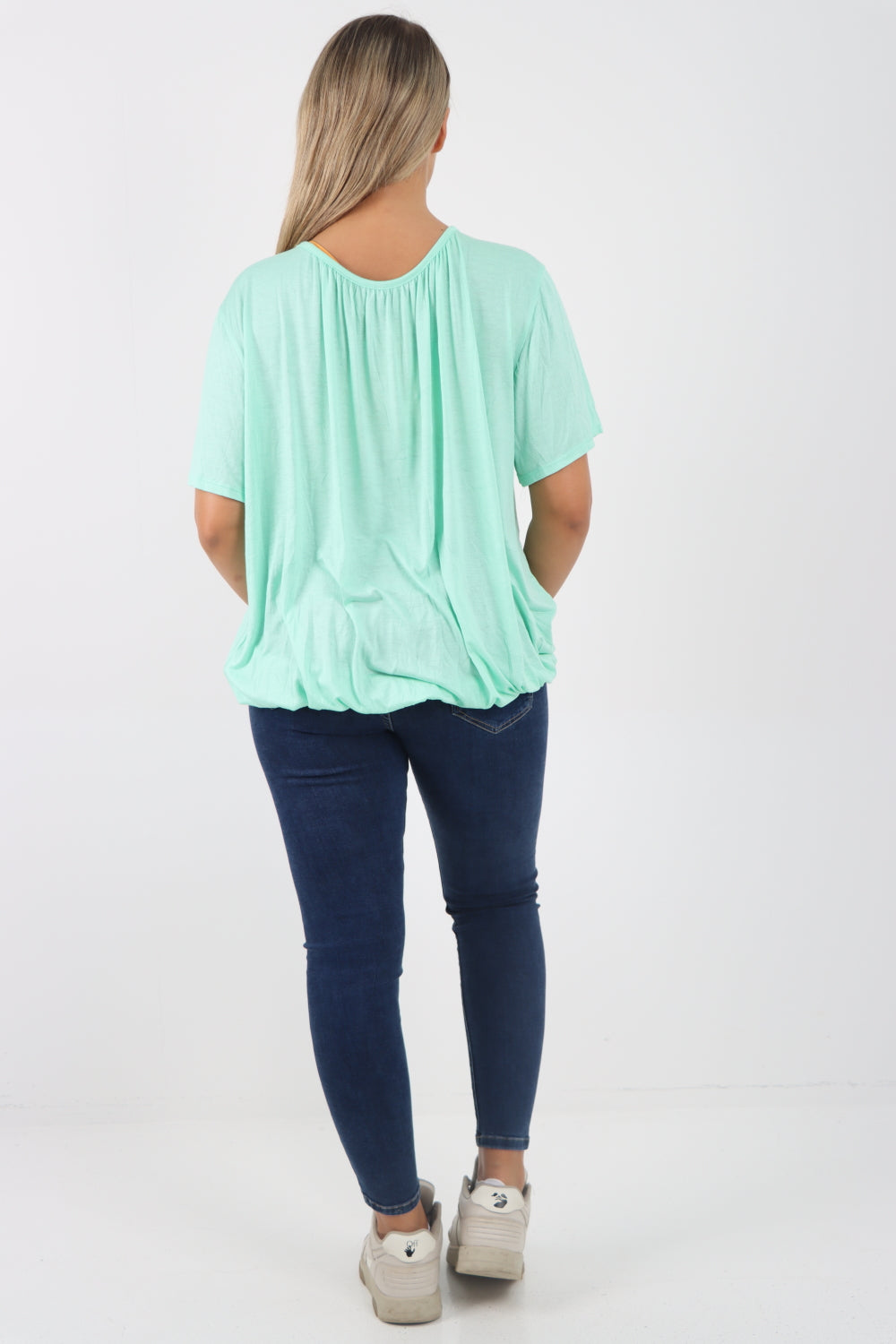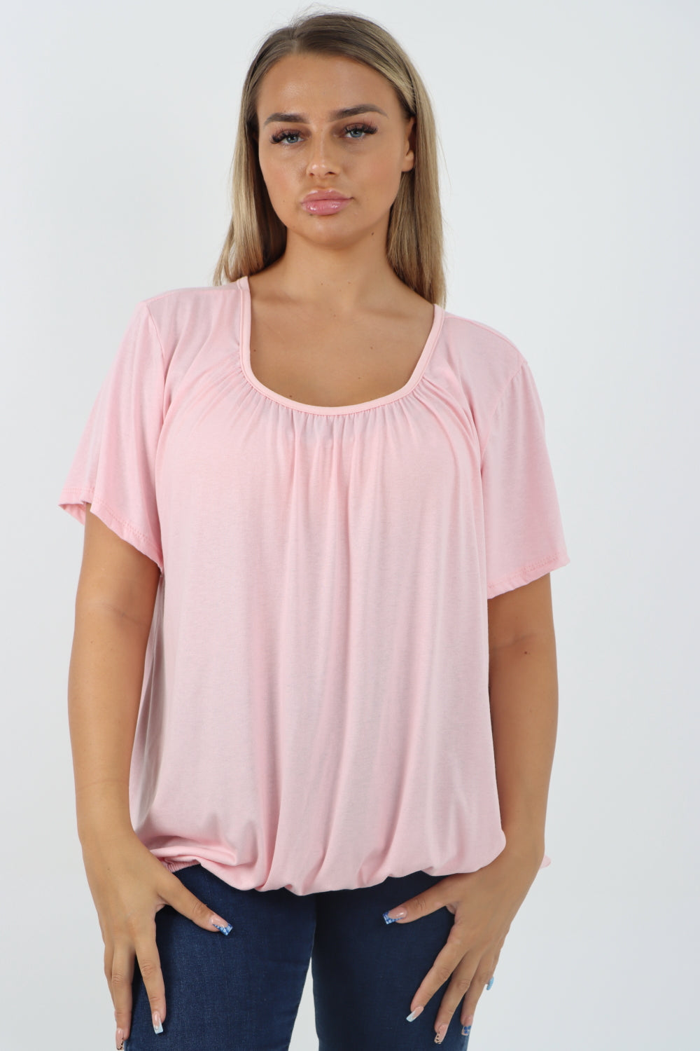Made in Italy Bubble Hem Stretchy Round Neck Short Sleeve Top