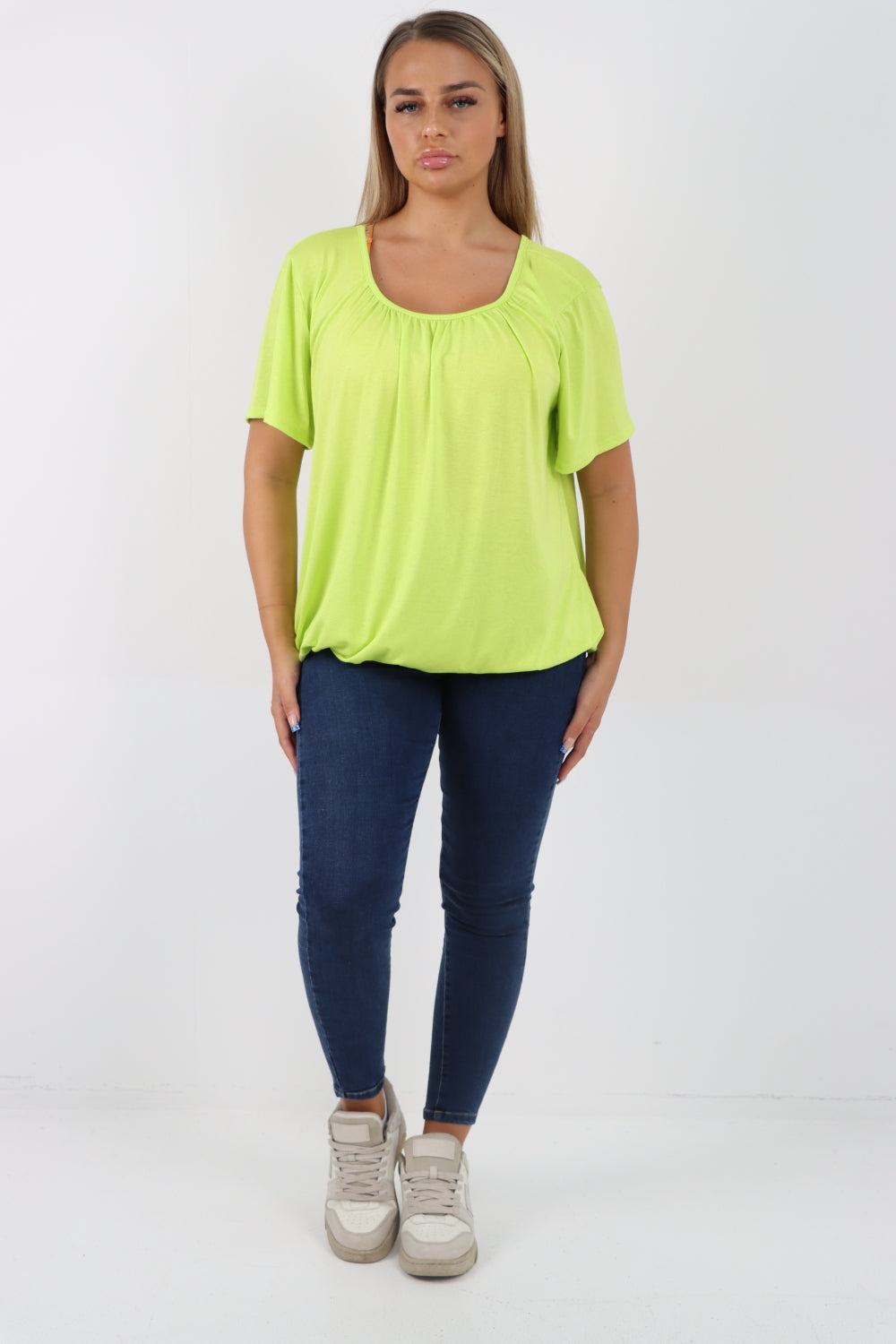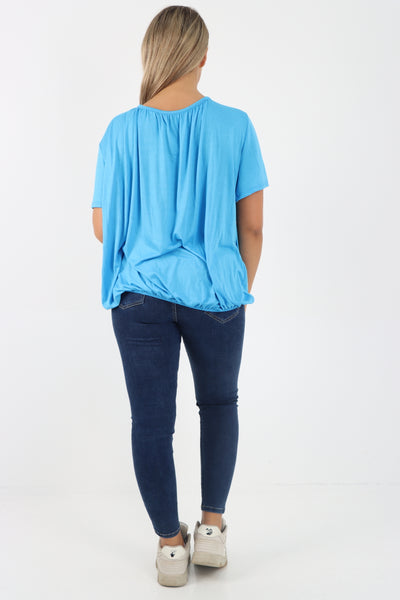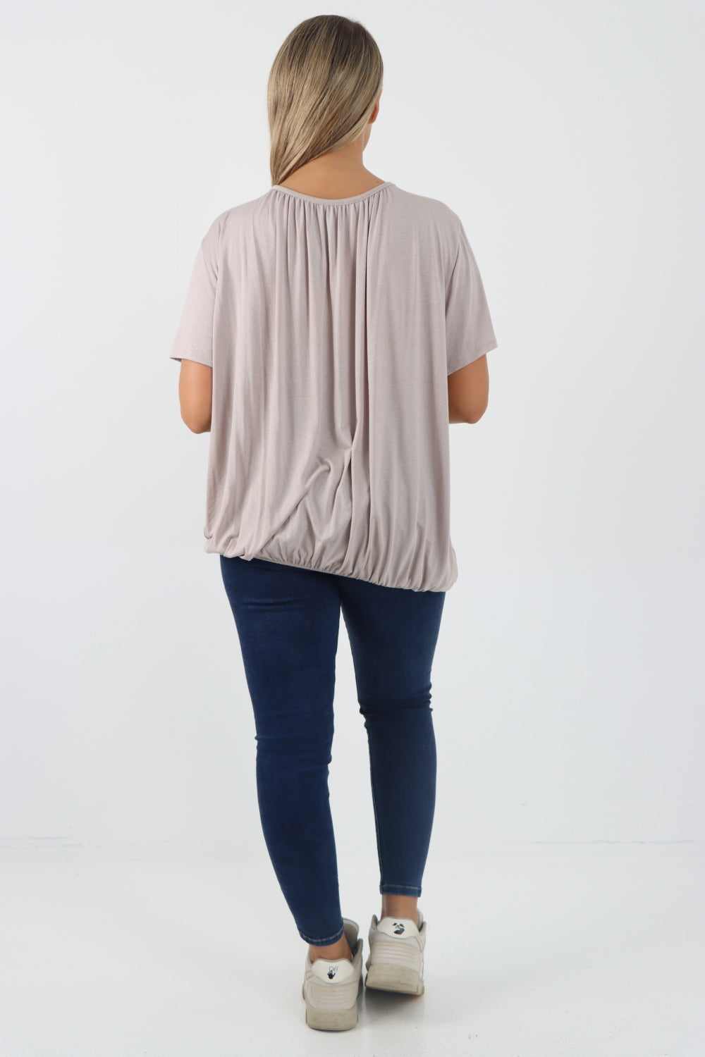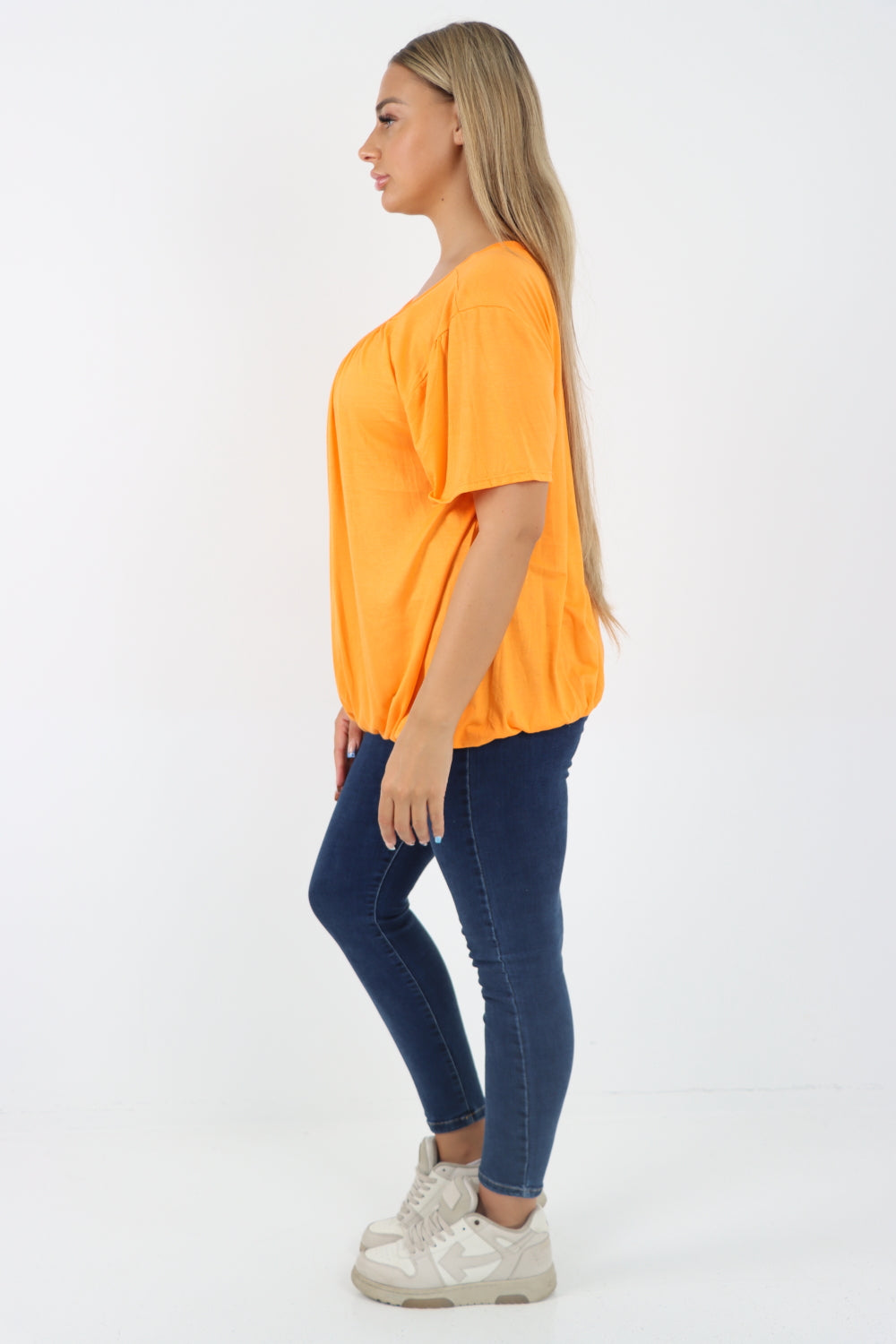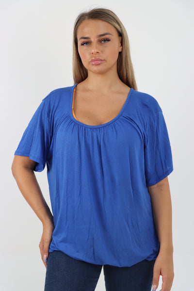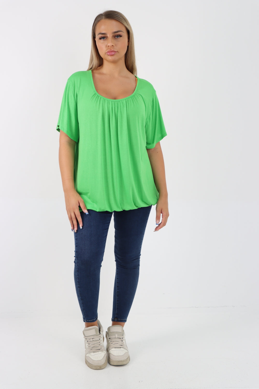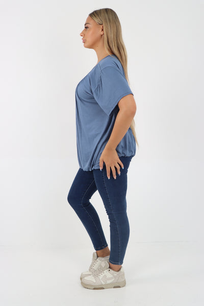 Made in Italy Bubble Hem Stretchy Round Neck Short Sleeve Top