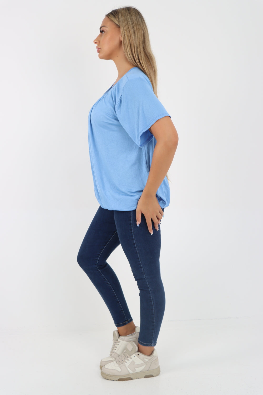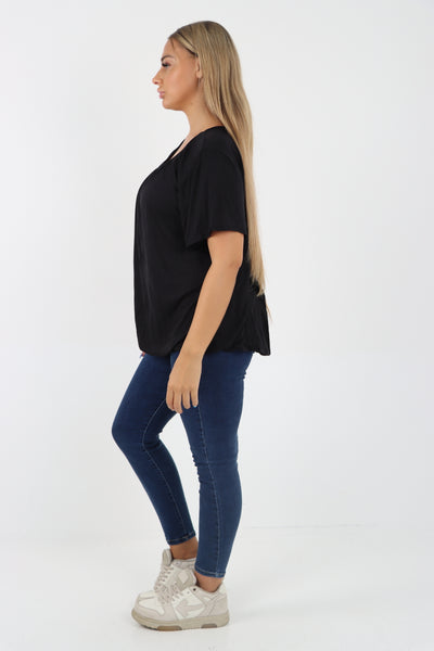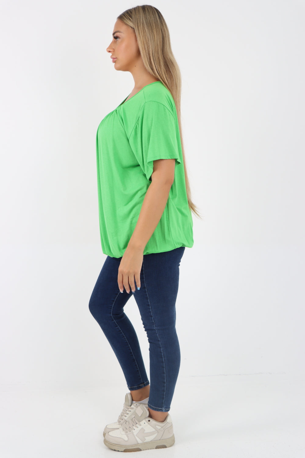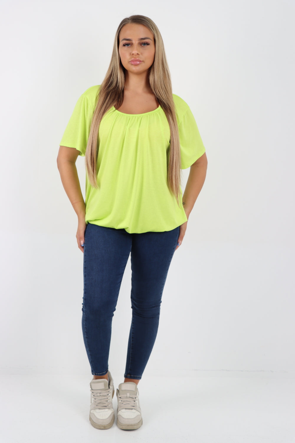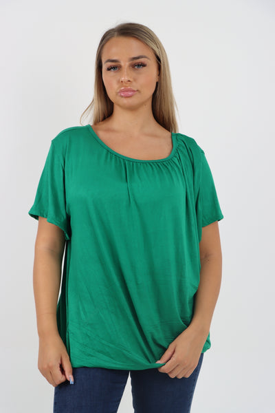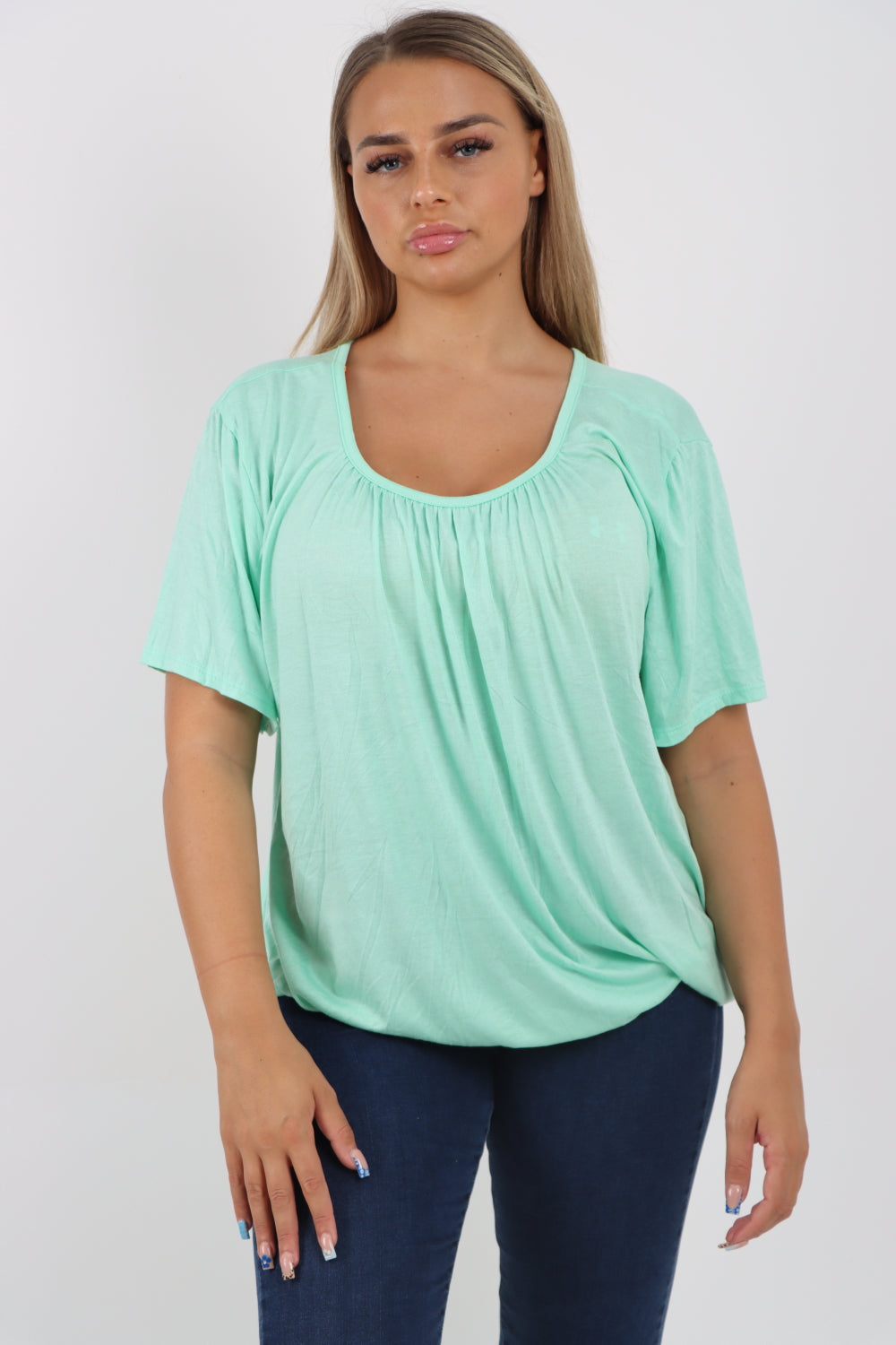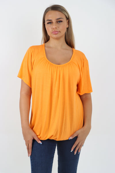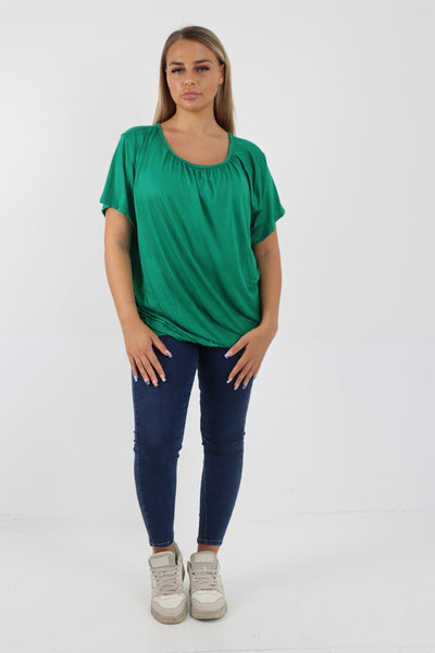 Made in Italy Bubble Hem Stretchy Round Neck Short Sleeve Top