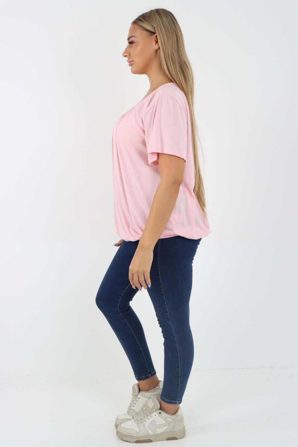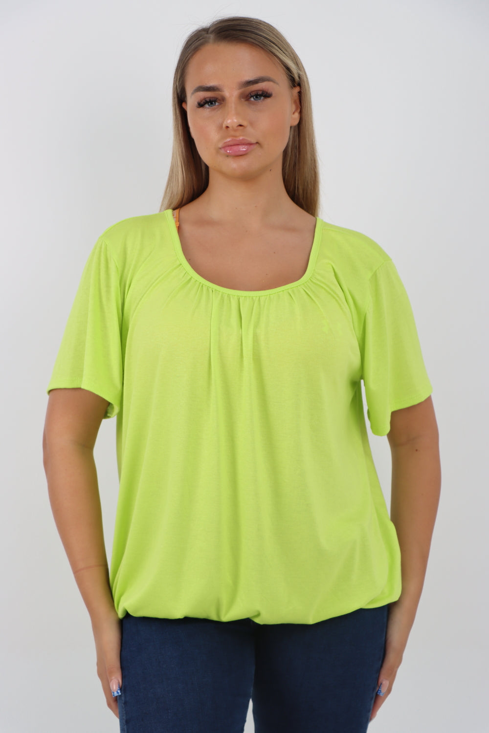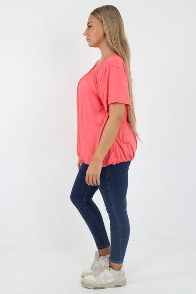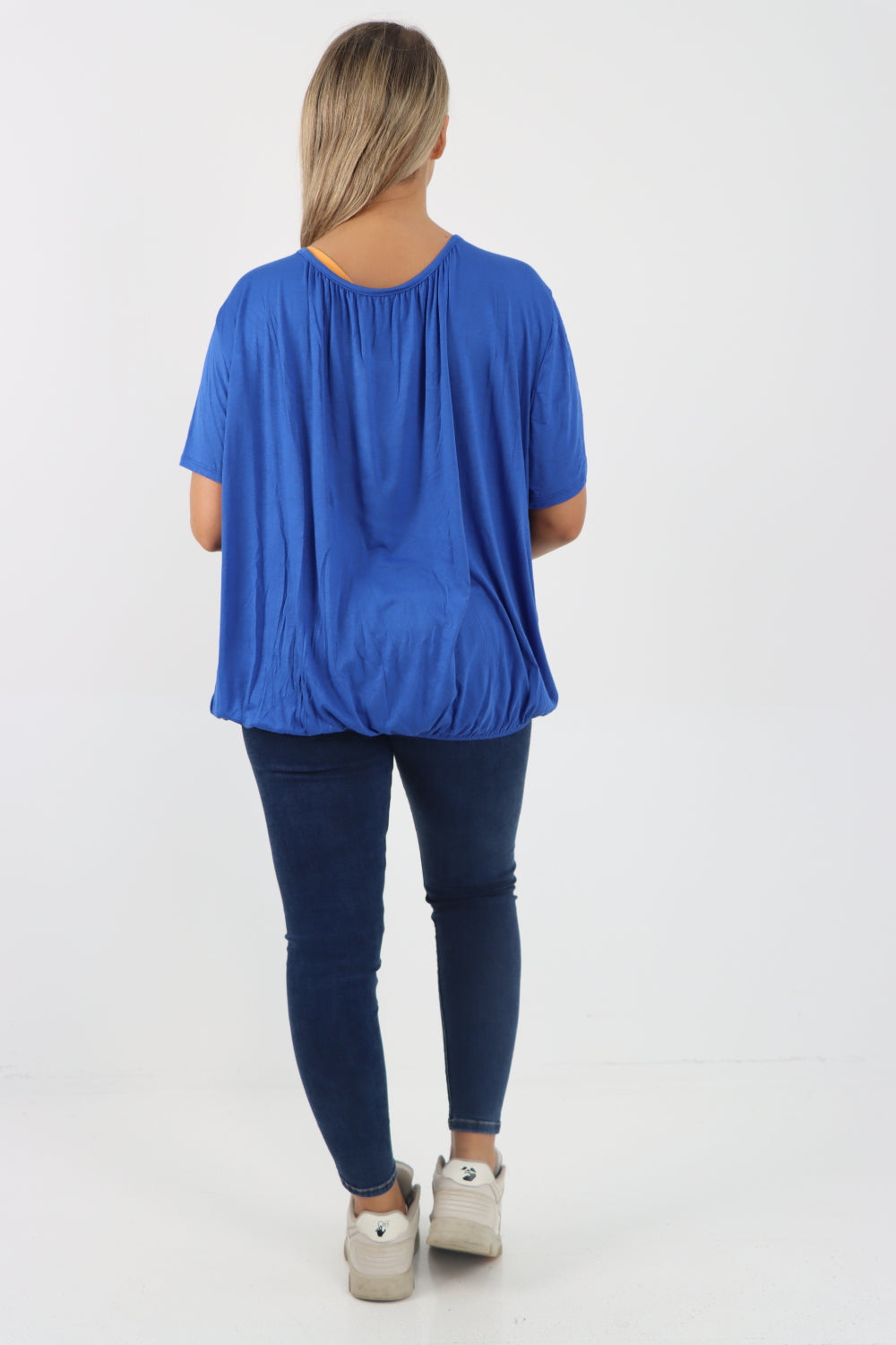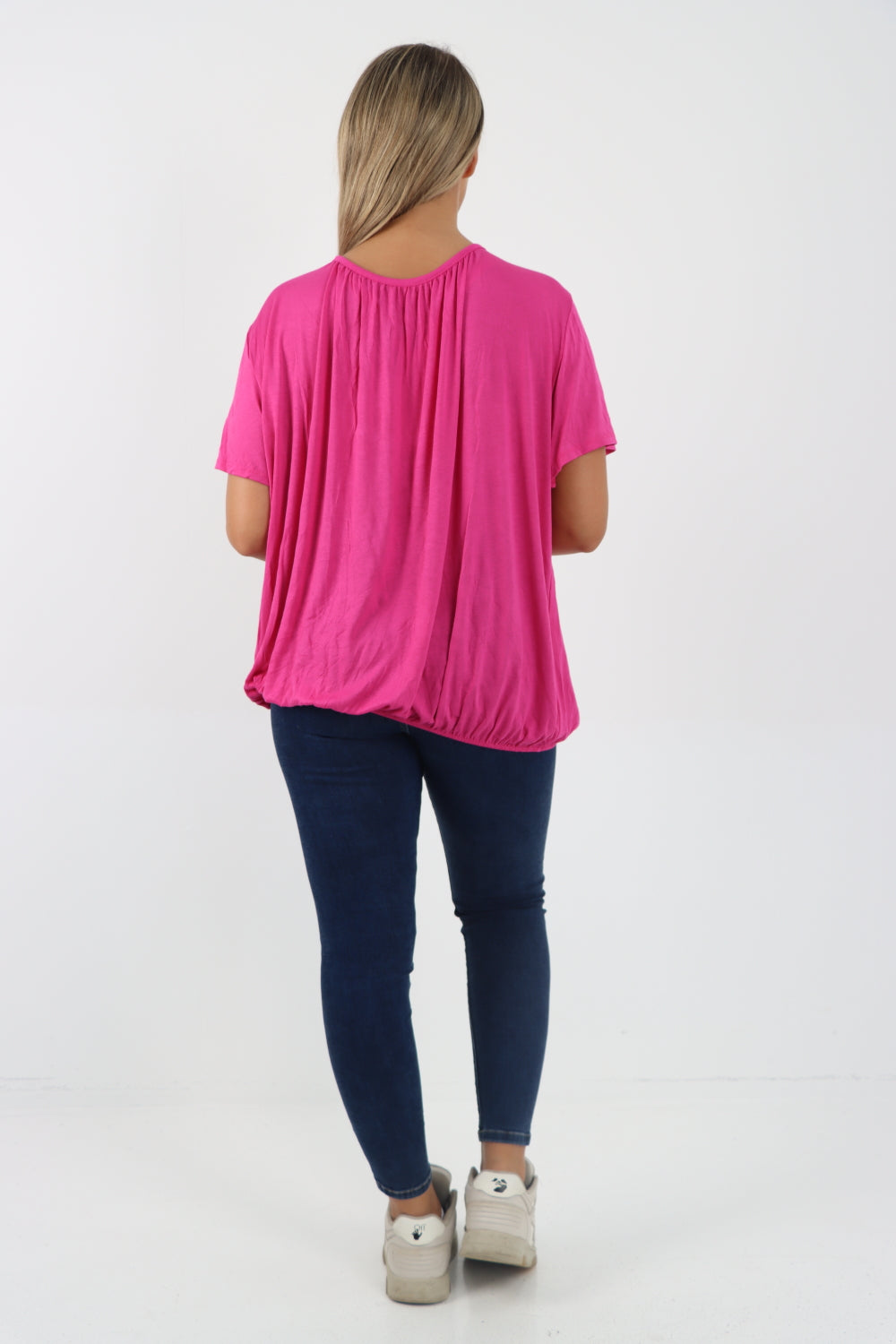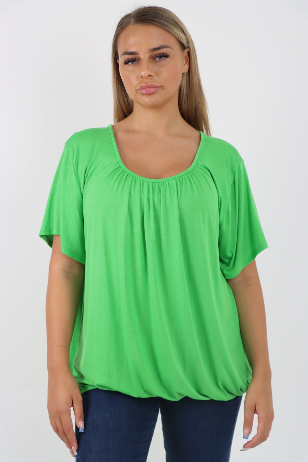 Made in Italy Bubble Hem Stretchy Round Neck Short Sleeve Top