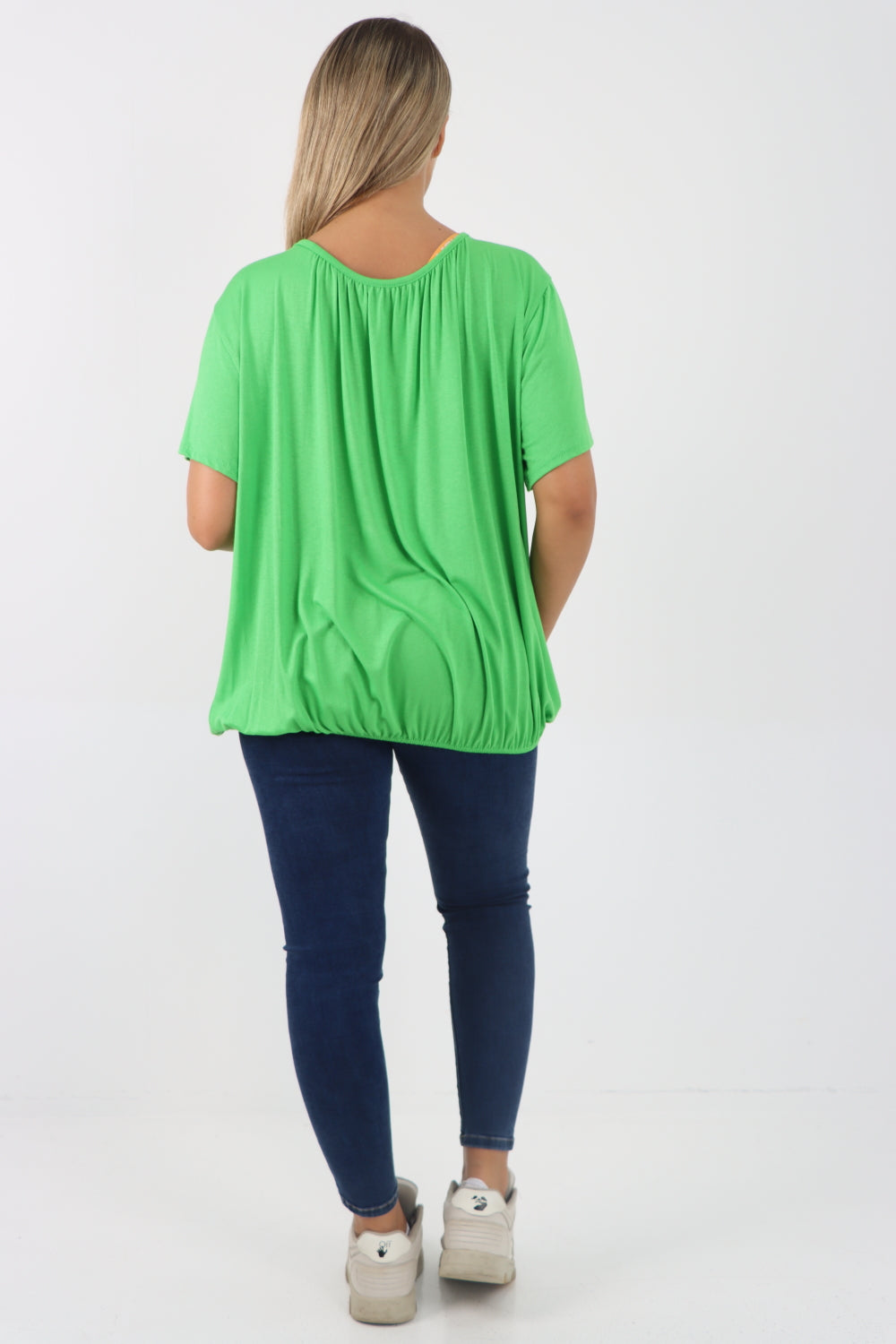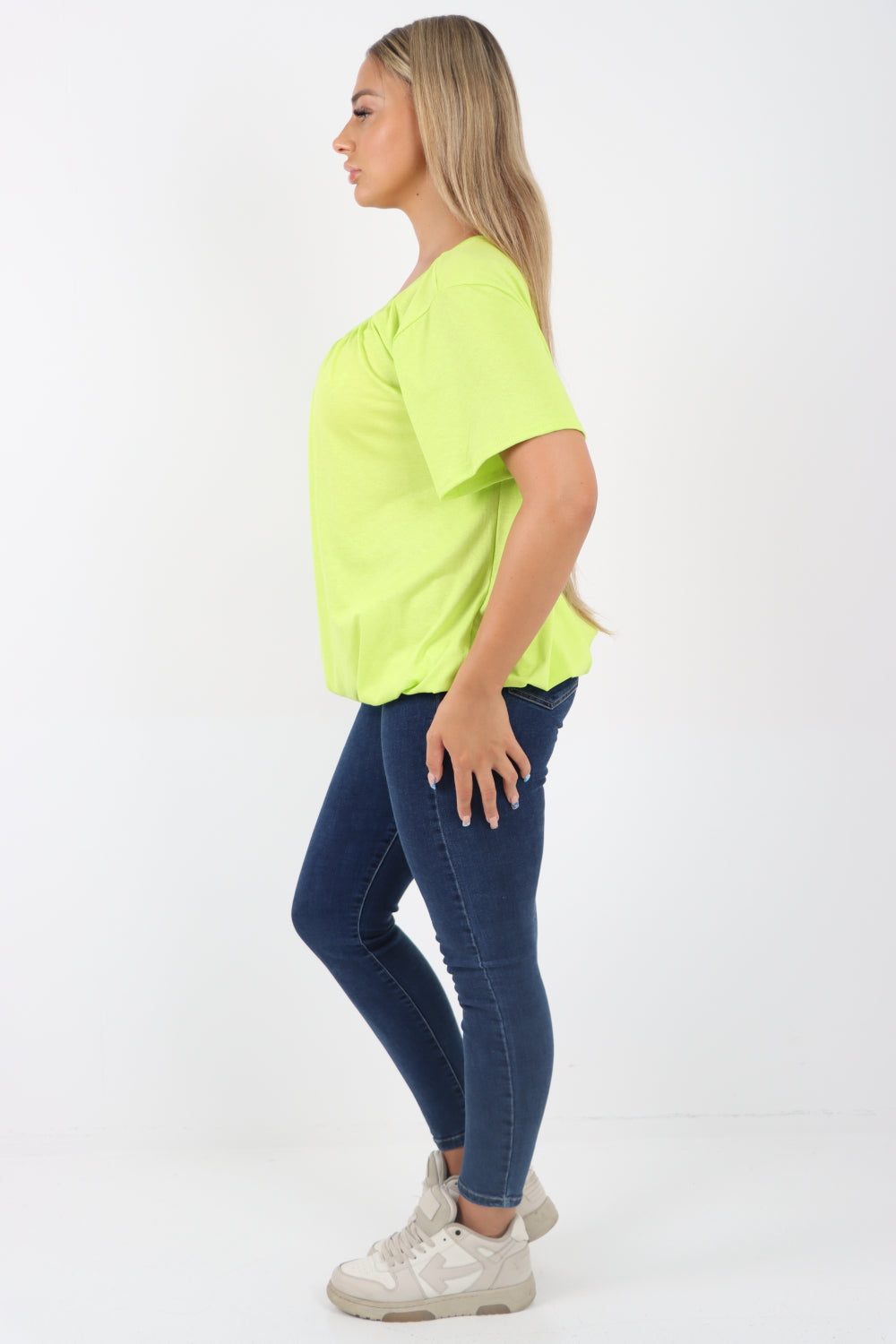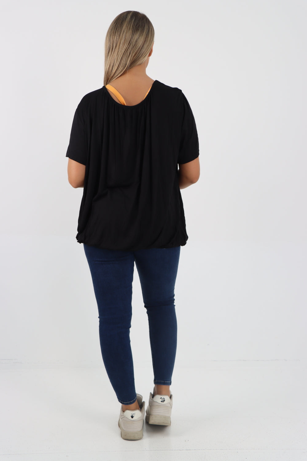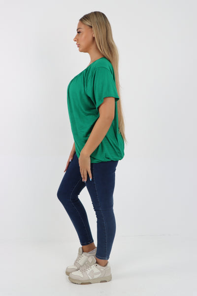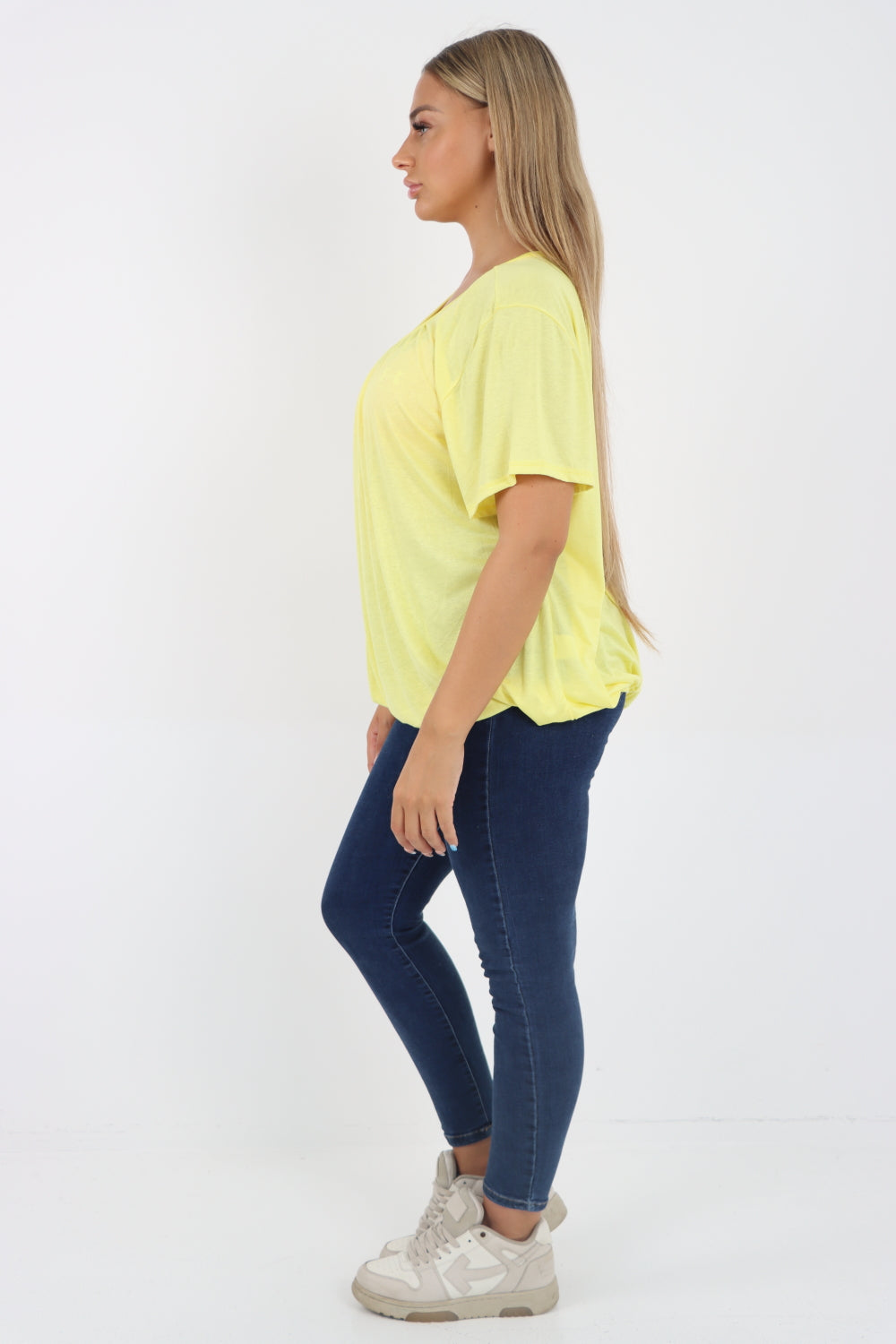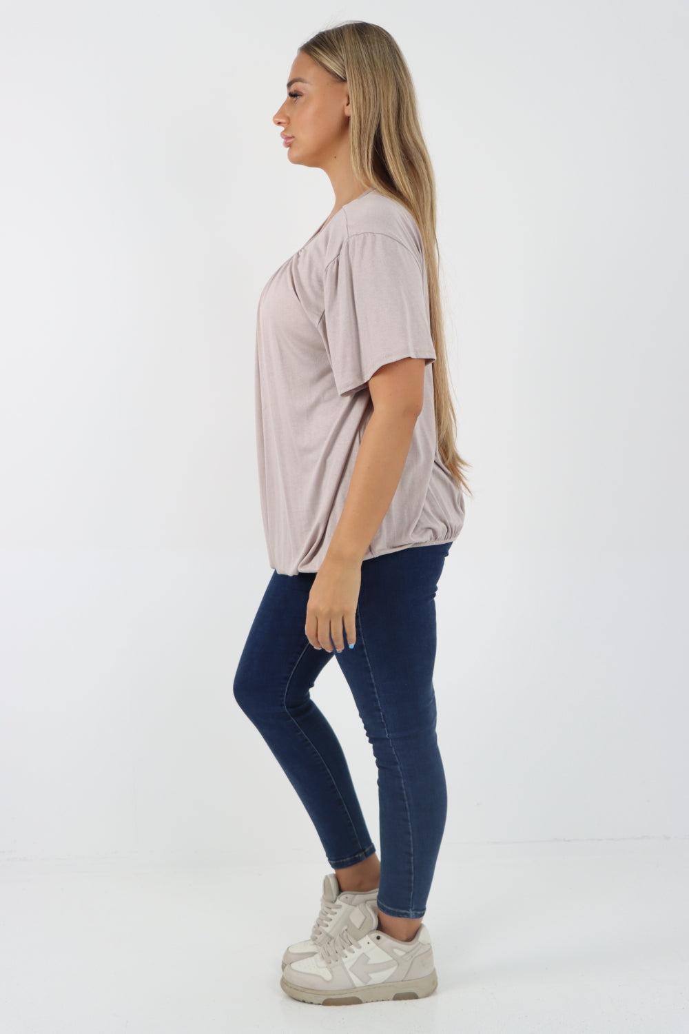 Made in Italy Bubble Hem Stretchy Round Neck Short Sleeve Top