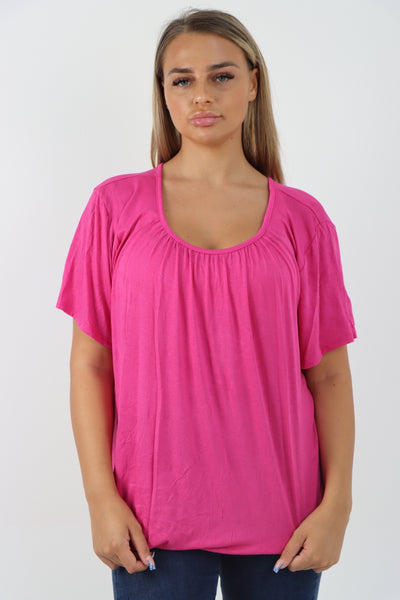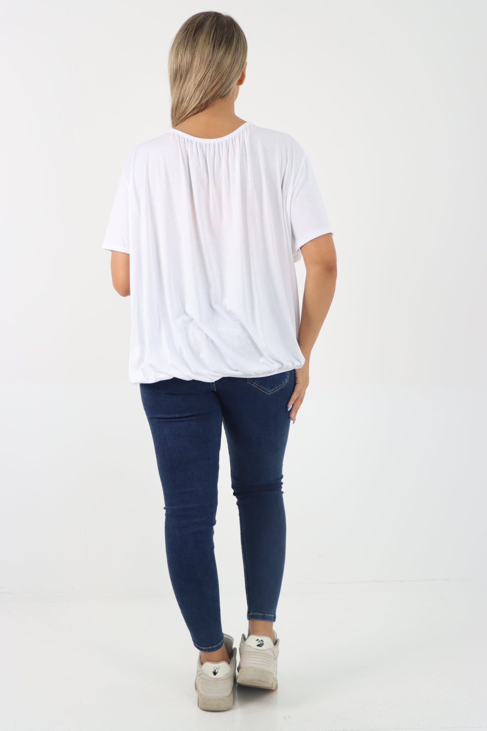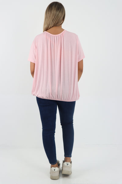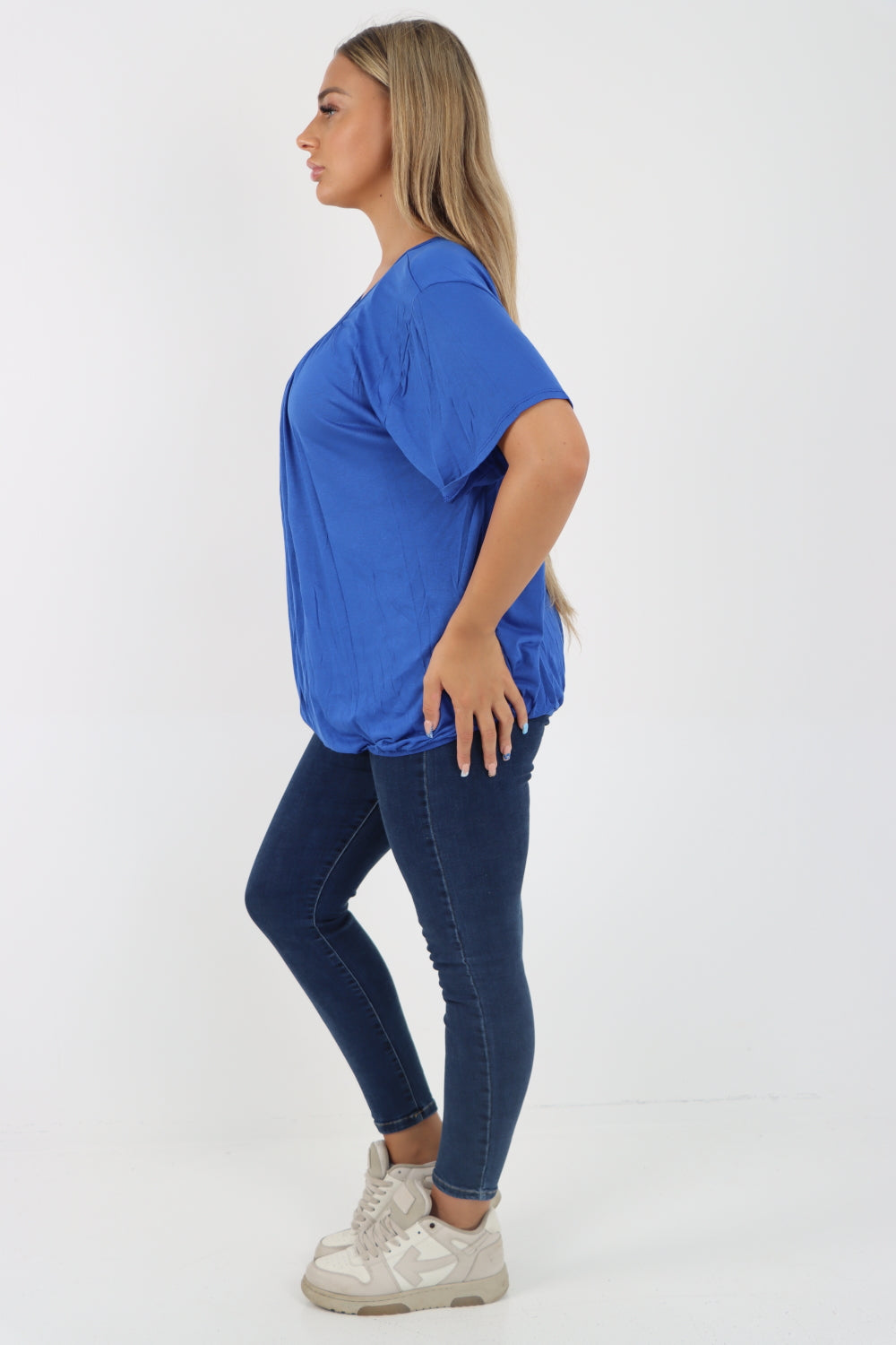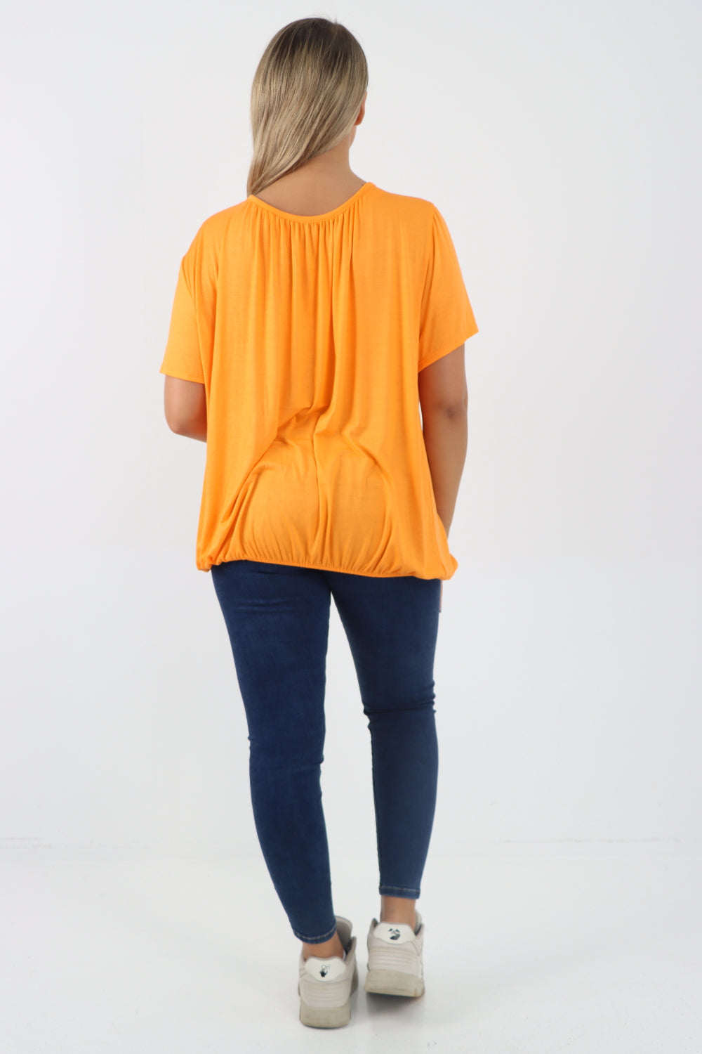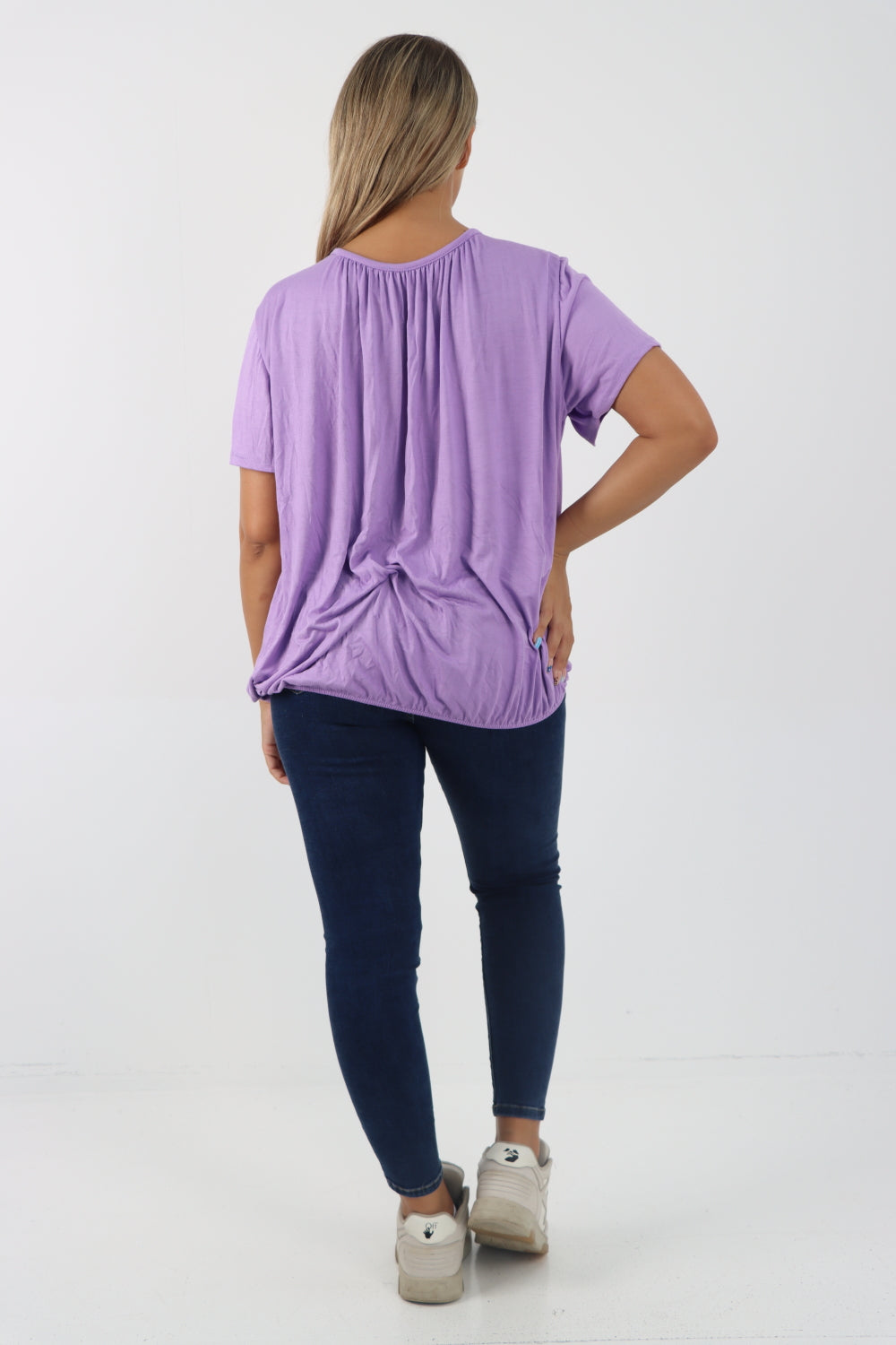 Made in Italy Bubble Hem Stretchy Round Neck Short Sleeve Top
