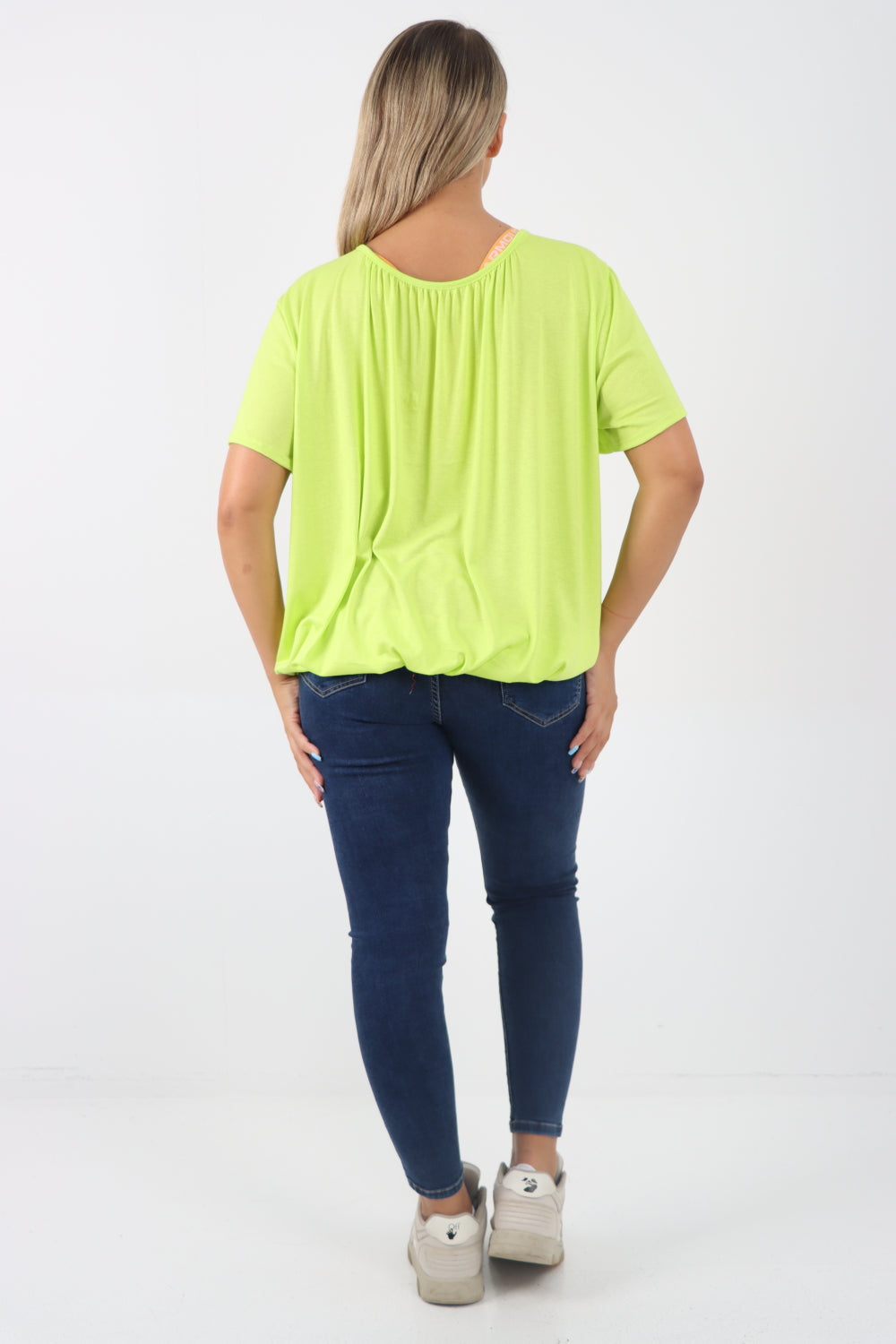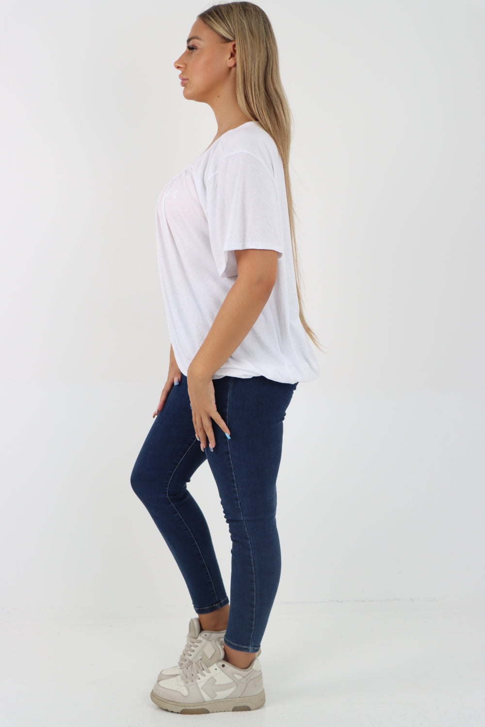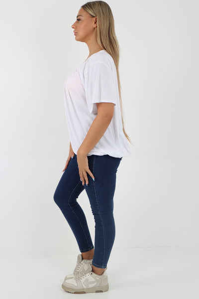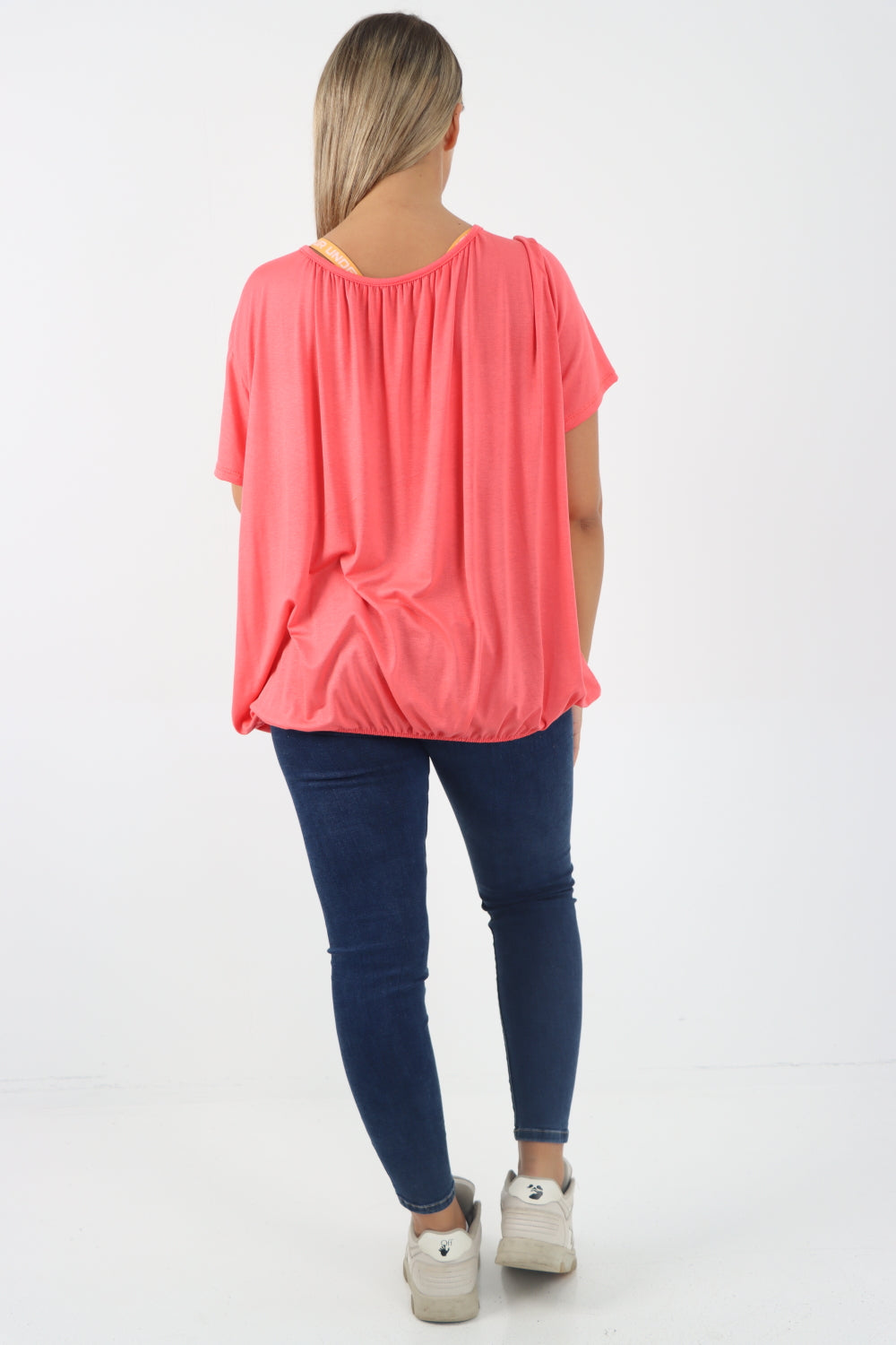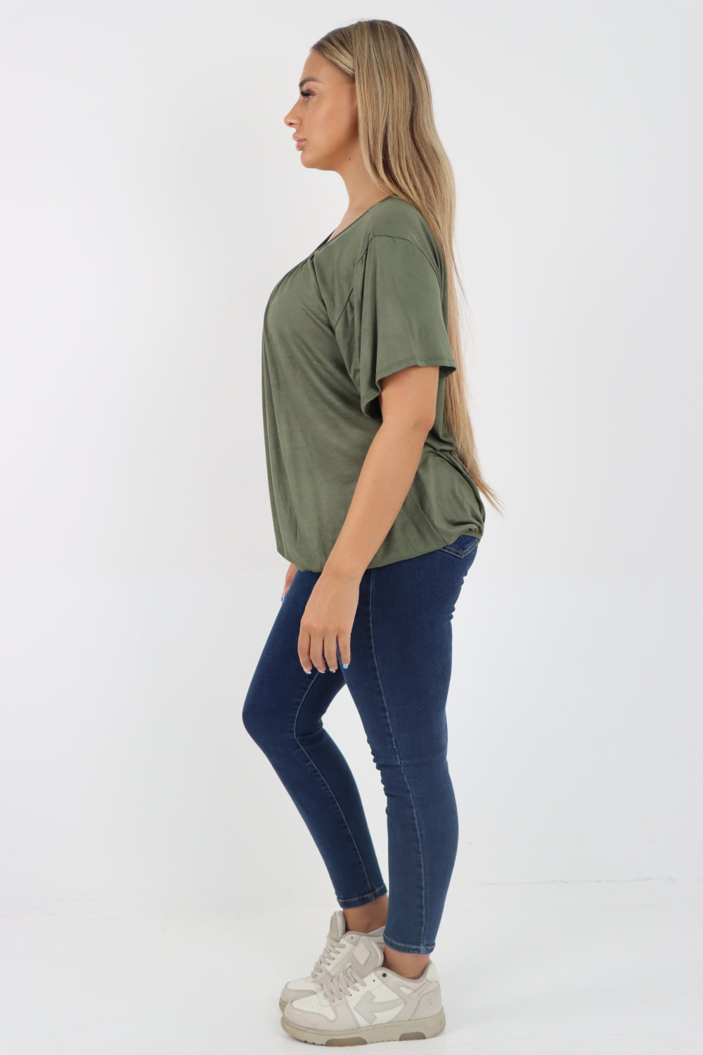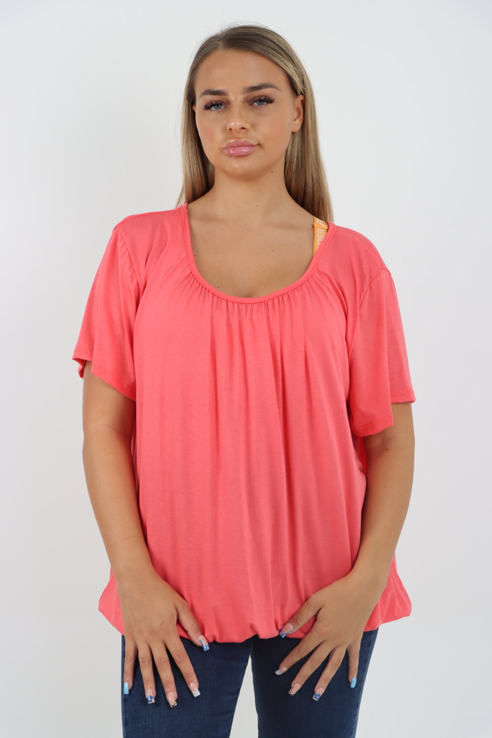Made in Italy Bubble Hem Stretchy Round Neck Short Sleeve Top