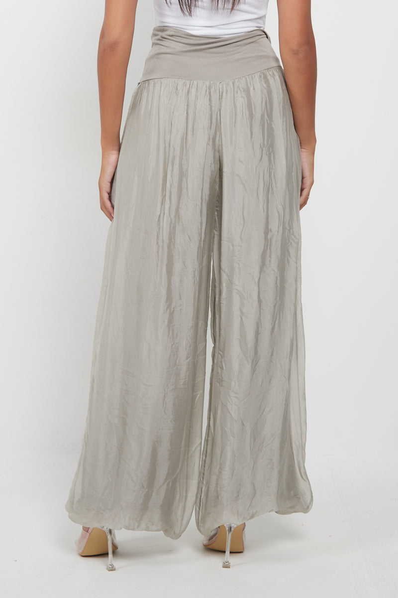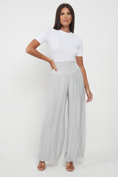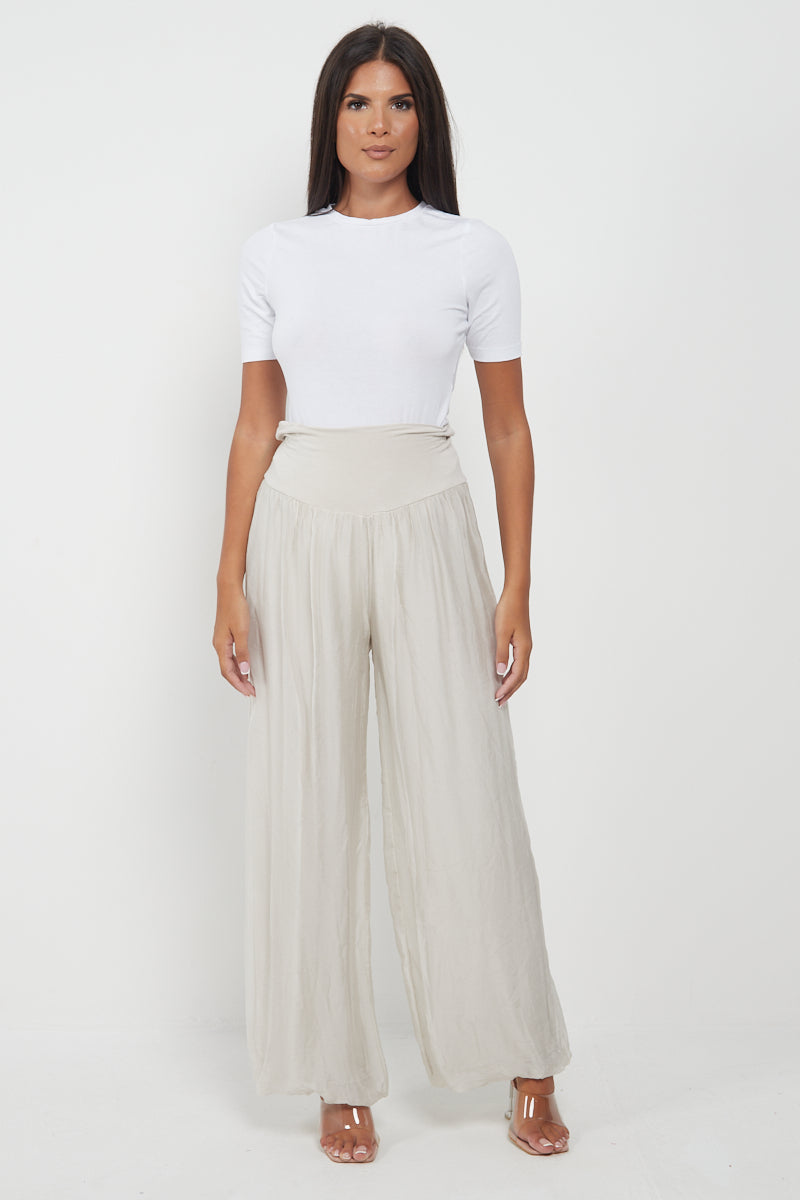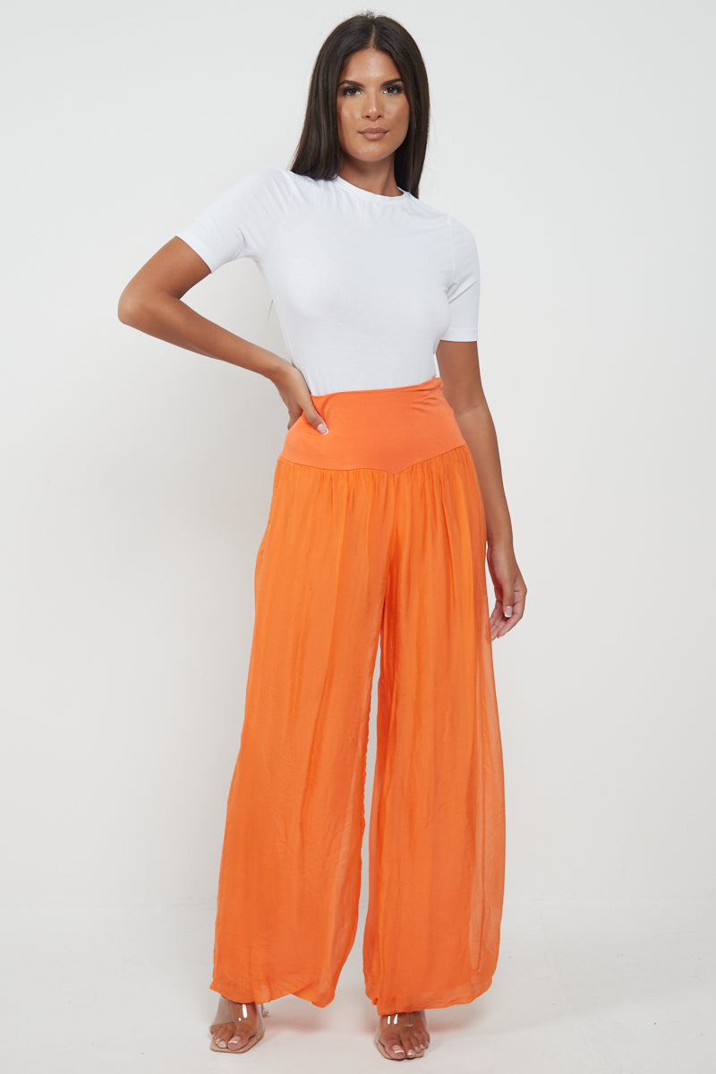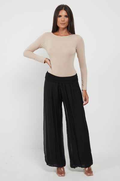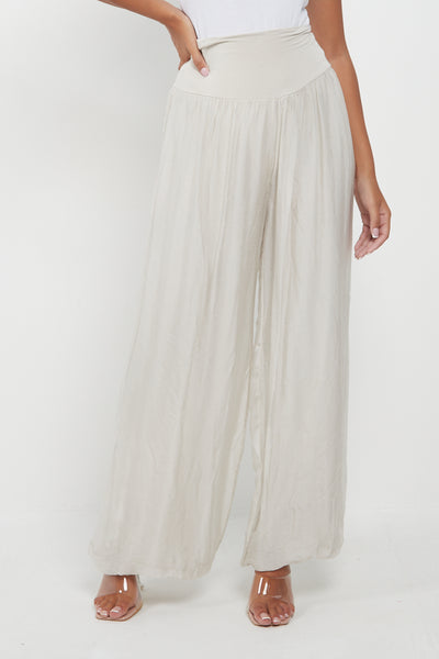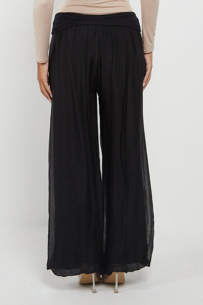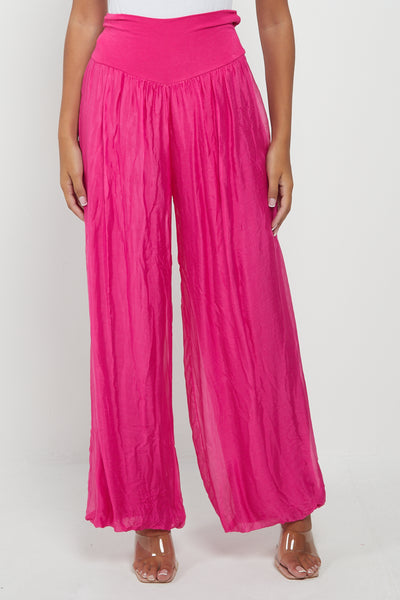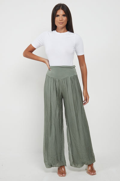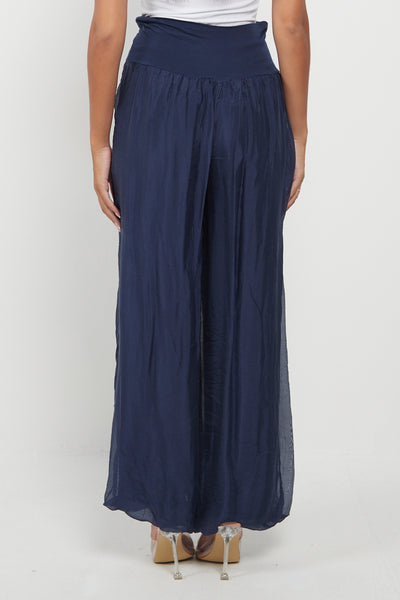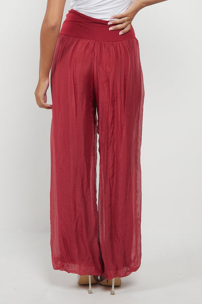 Bring a touch of effortless elegance to your store with the Italian Ladies Plain Wide Leg Silk Palazzo Trouser. Made in Italy using a soft silk-feel fabric, these trousers offer a smooth, luxurious texture and a beautifully flowing wide-leg silhouette. The elasticated waistband ensures a flexible, flattering fit that keeps your customers comfortable all day long.