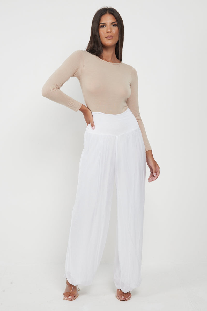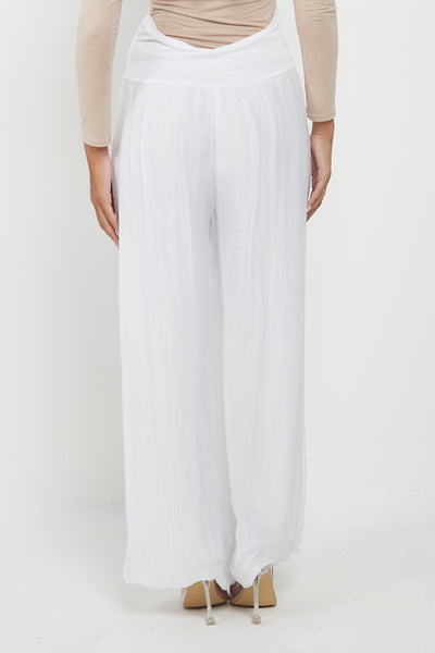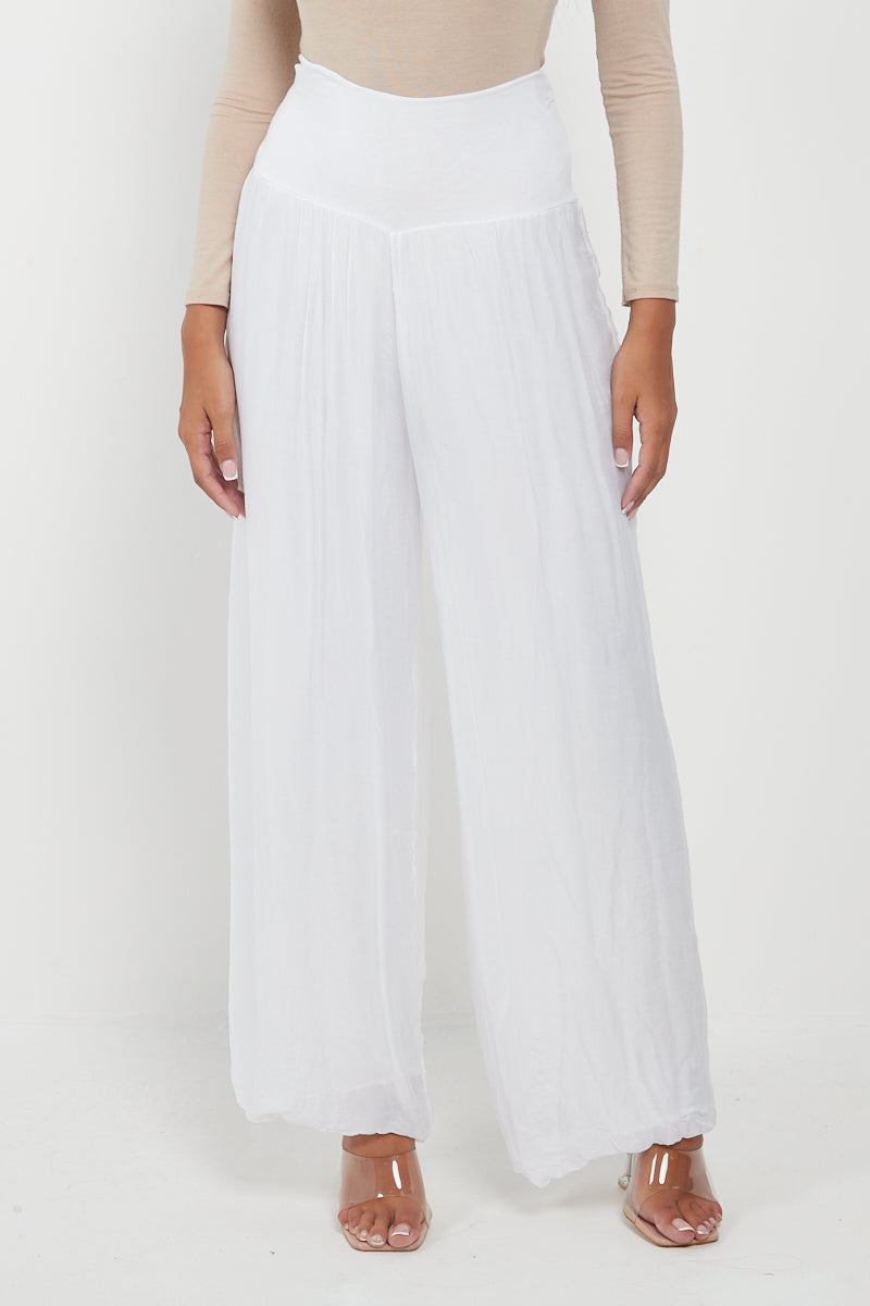 A must-have for boutiques looking to stock trendy wholesale pants that blend comfort with elegance. These palazzos are a great choice for trendy clothing collections focused on resort wear, travel style, or everyday luxury. Style them easily or pair with our wholesale Italian silk, cotton, or linen tops and dresses for a complete look.