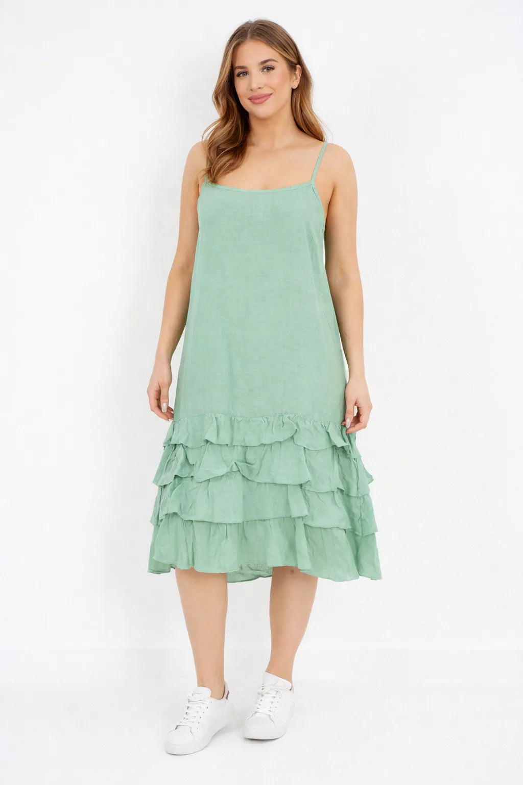 It’s about time you see how your customers want light dresses that feel easy and look special. The Italian Linen Strap Ruffle Layered Midi Dress is designed to offer both. It feels soft, falls loose, and works well for holidays, garden events, or warm days at home.