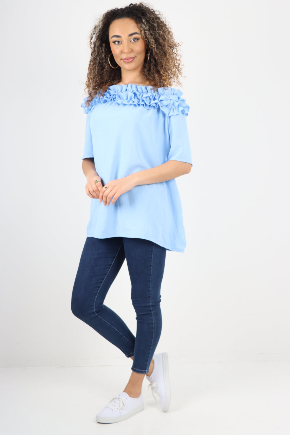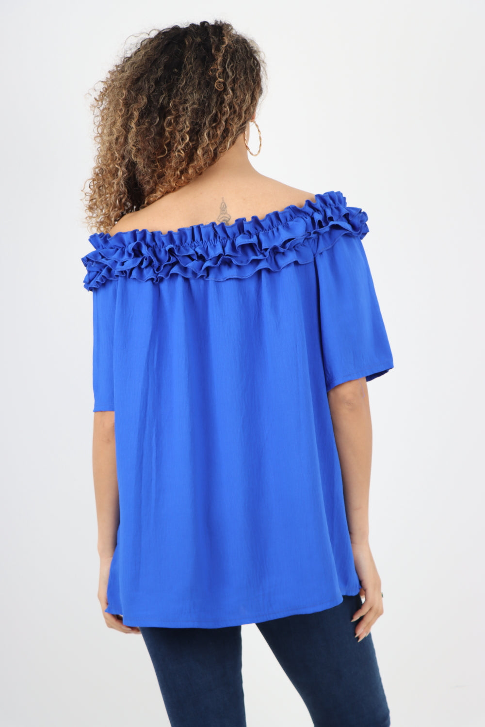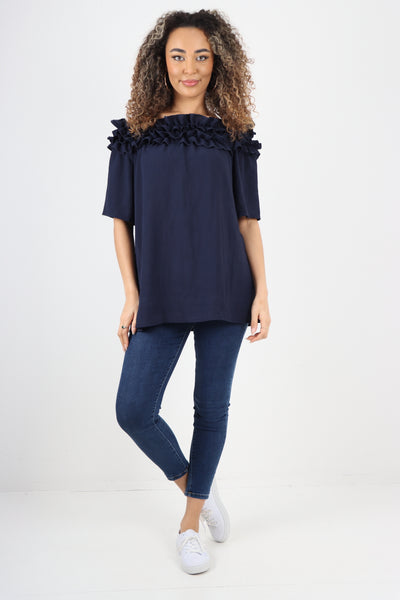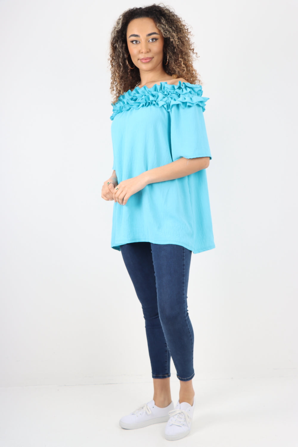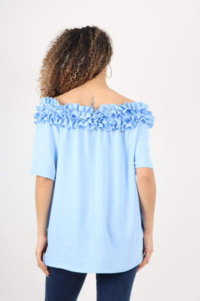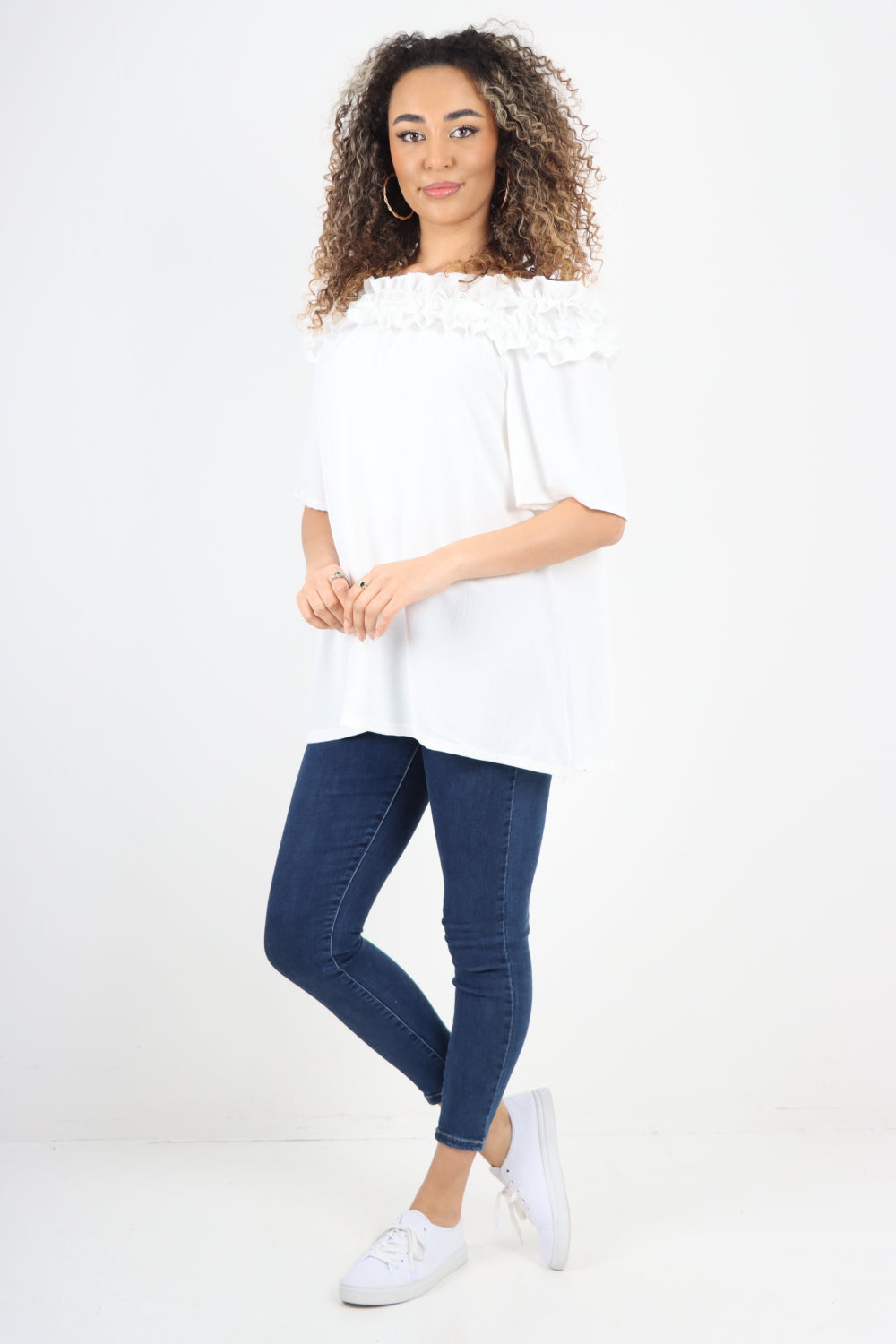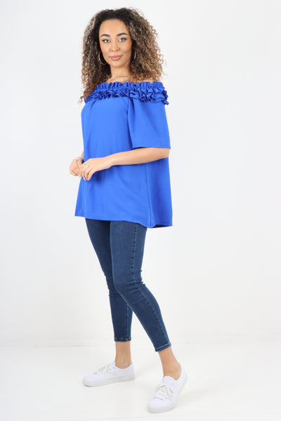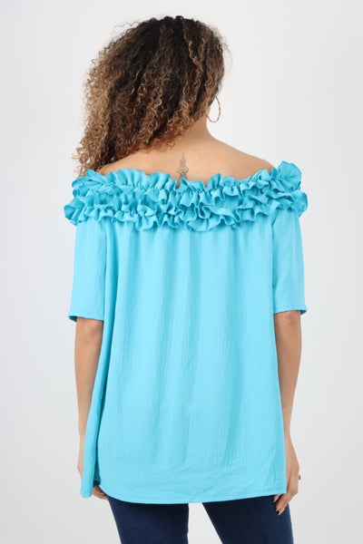 Made In Italy Off The Shoulder Ruffled Neck Plain Top