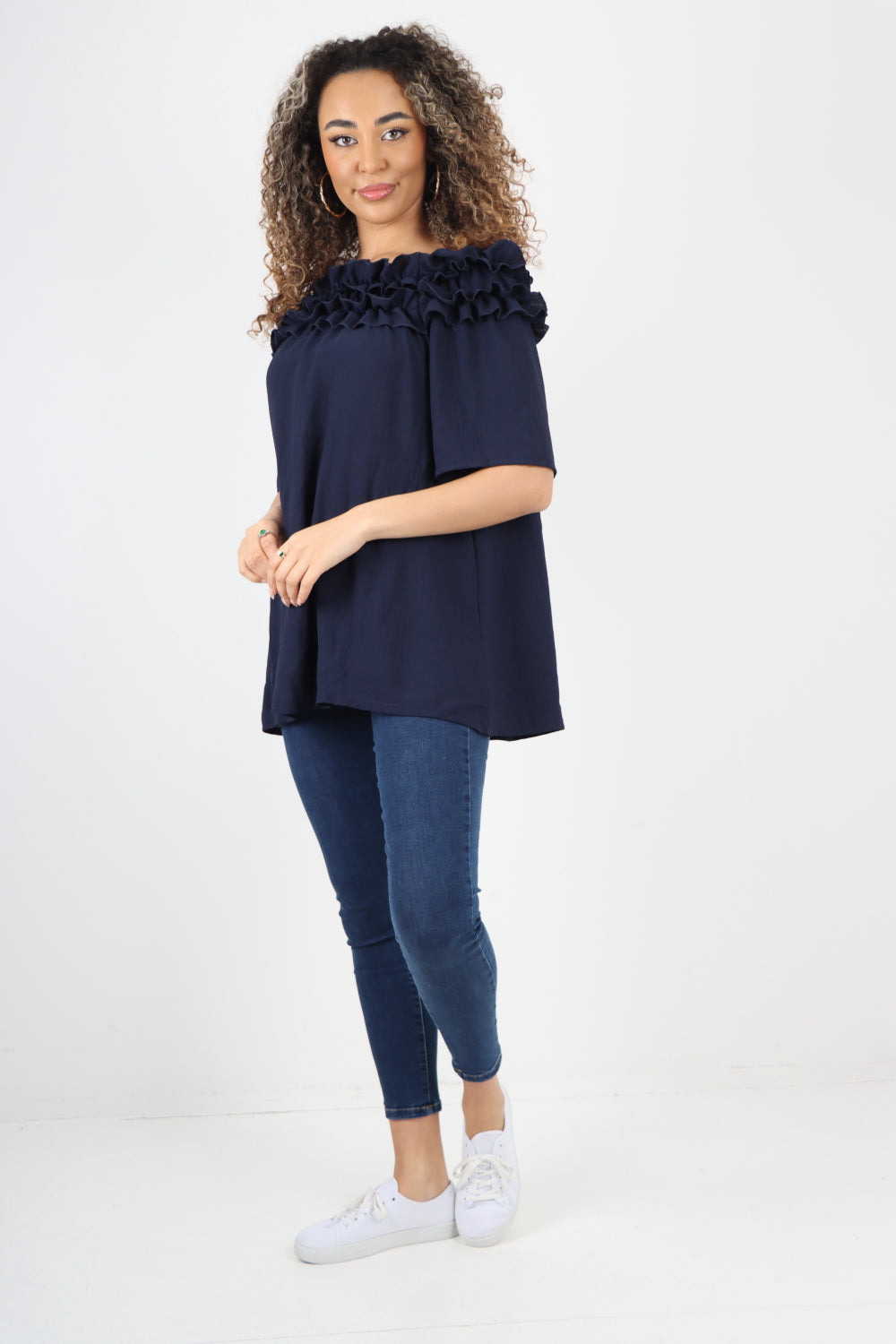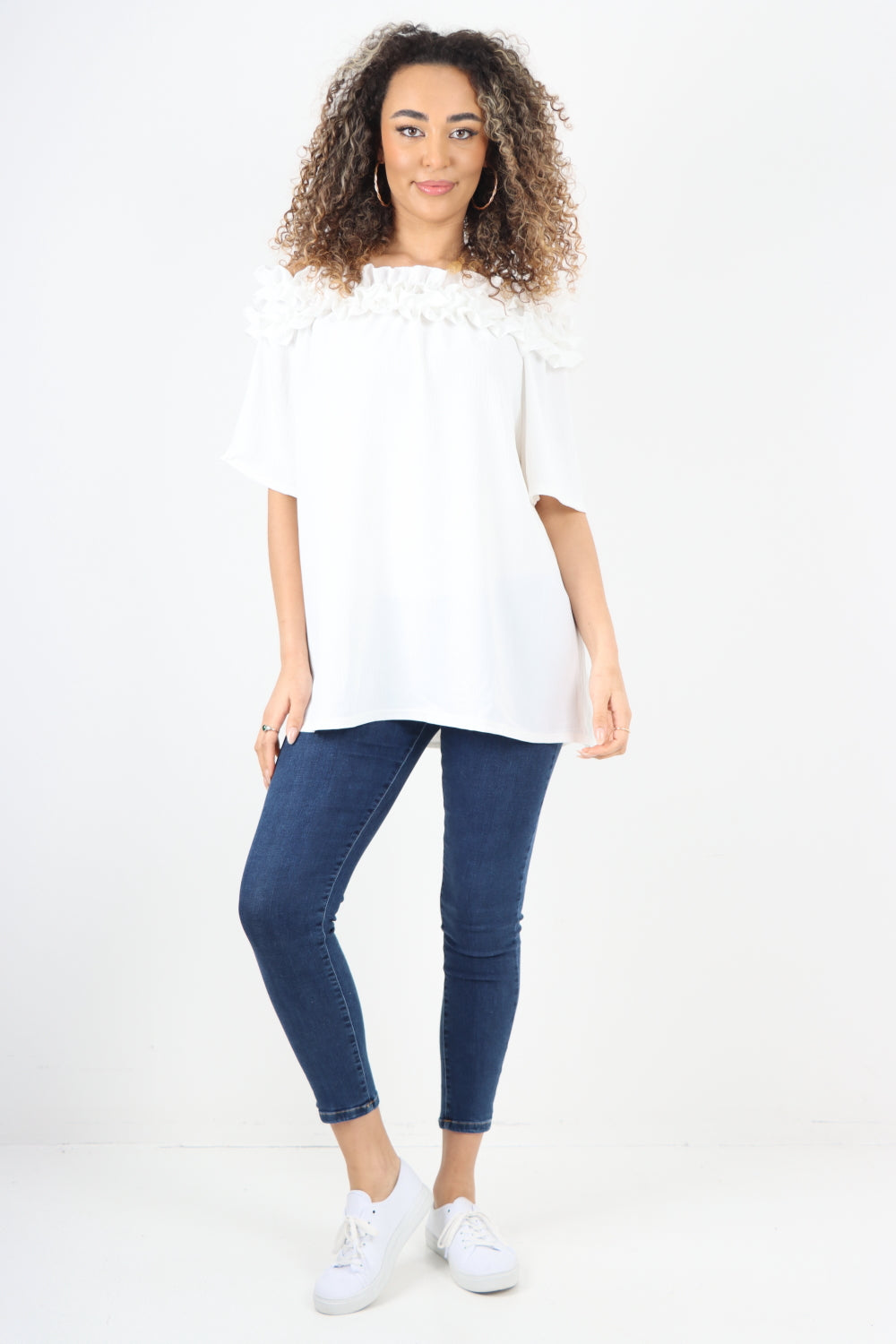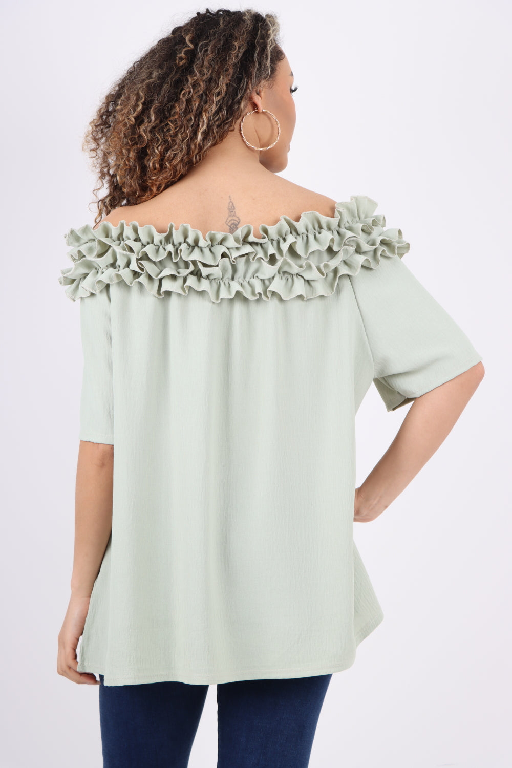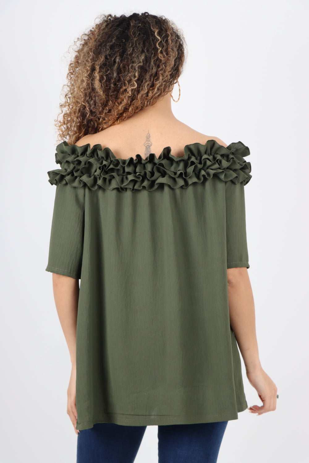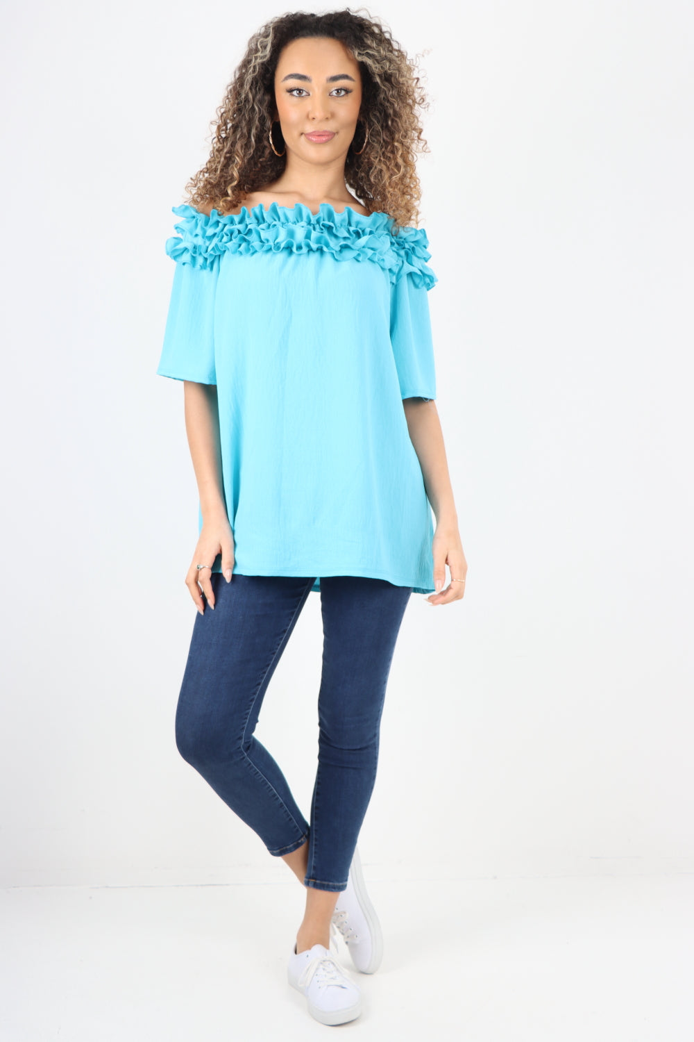 Made In Italy Off The Shoulder Ruffled Neck Plain Top