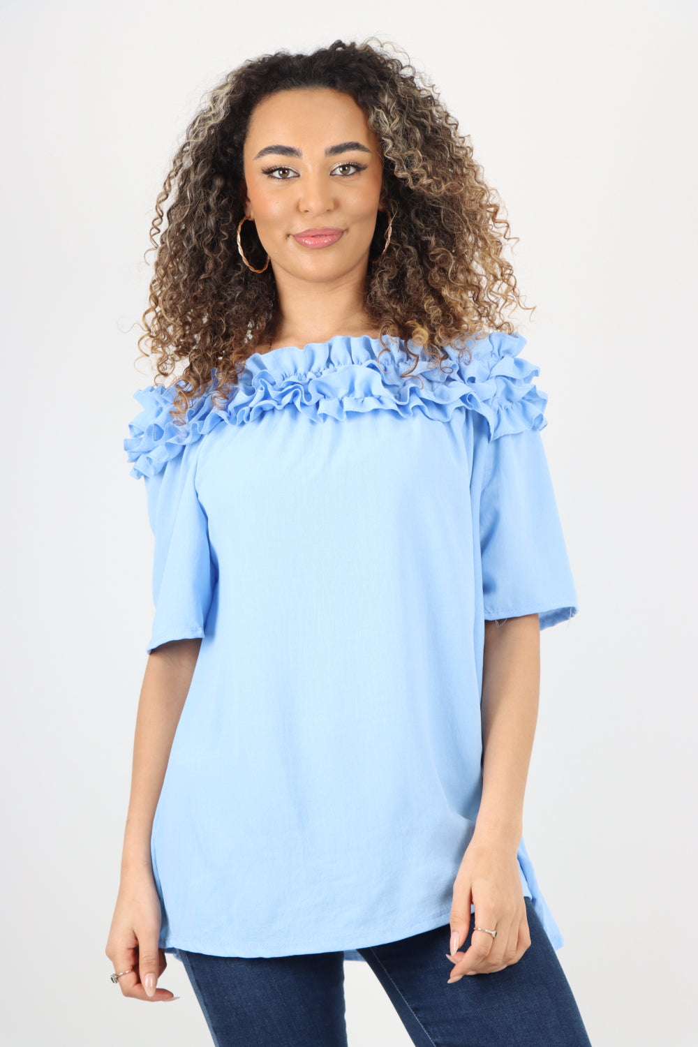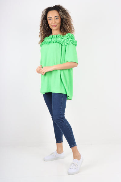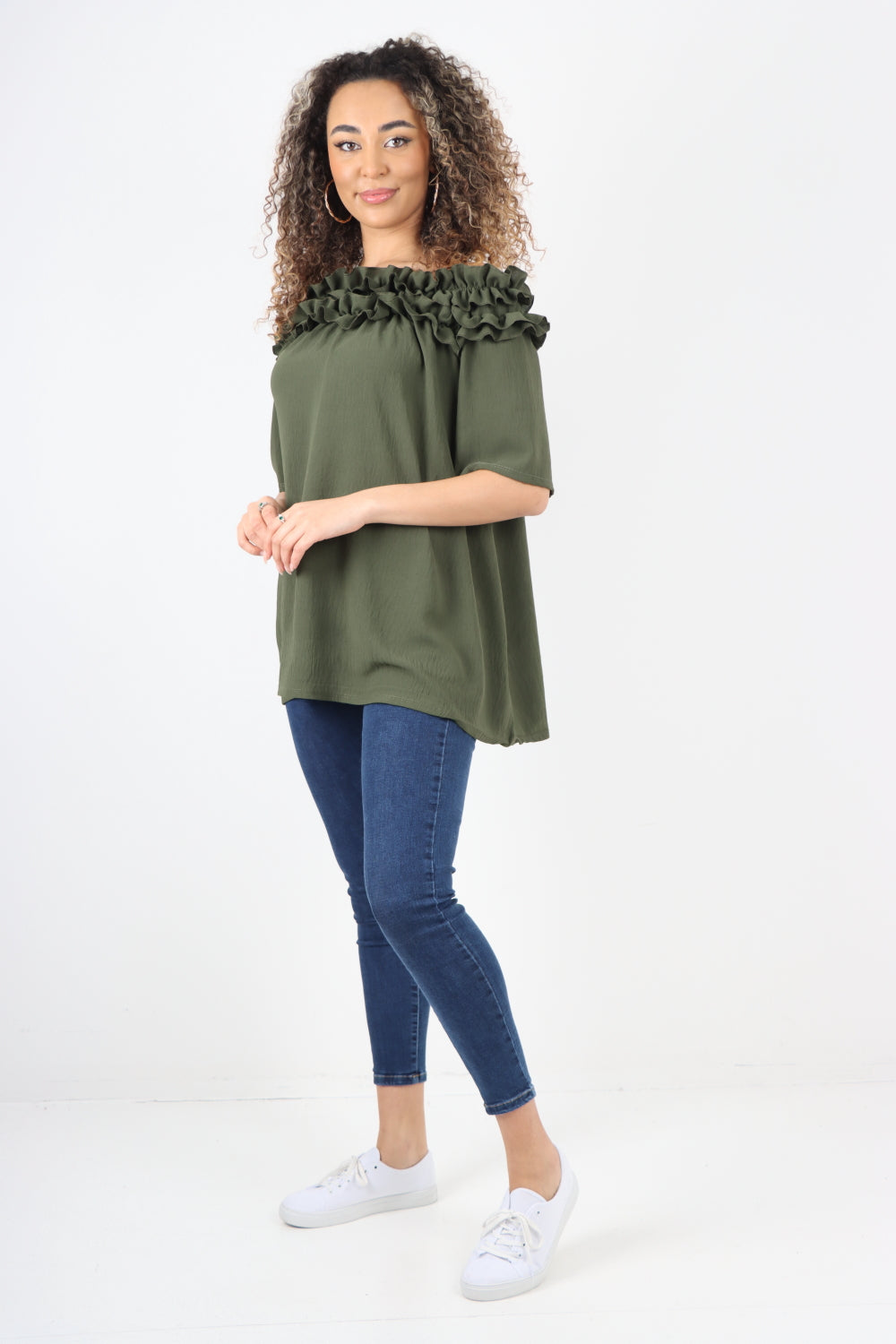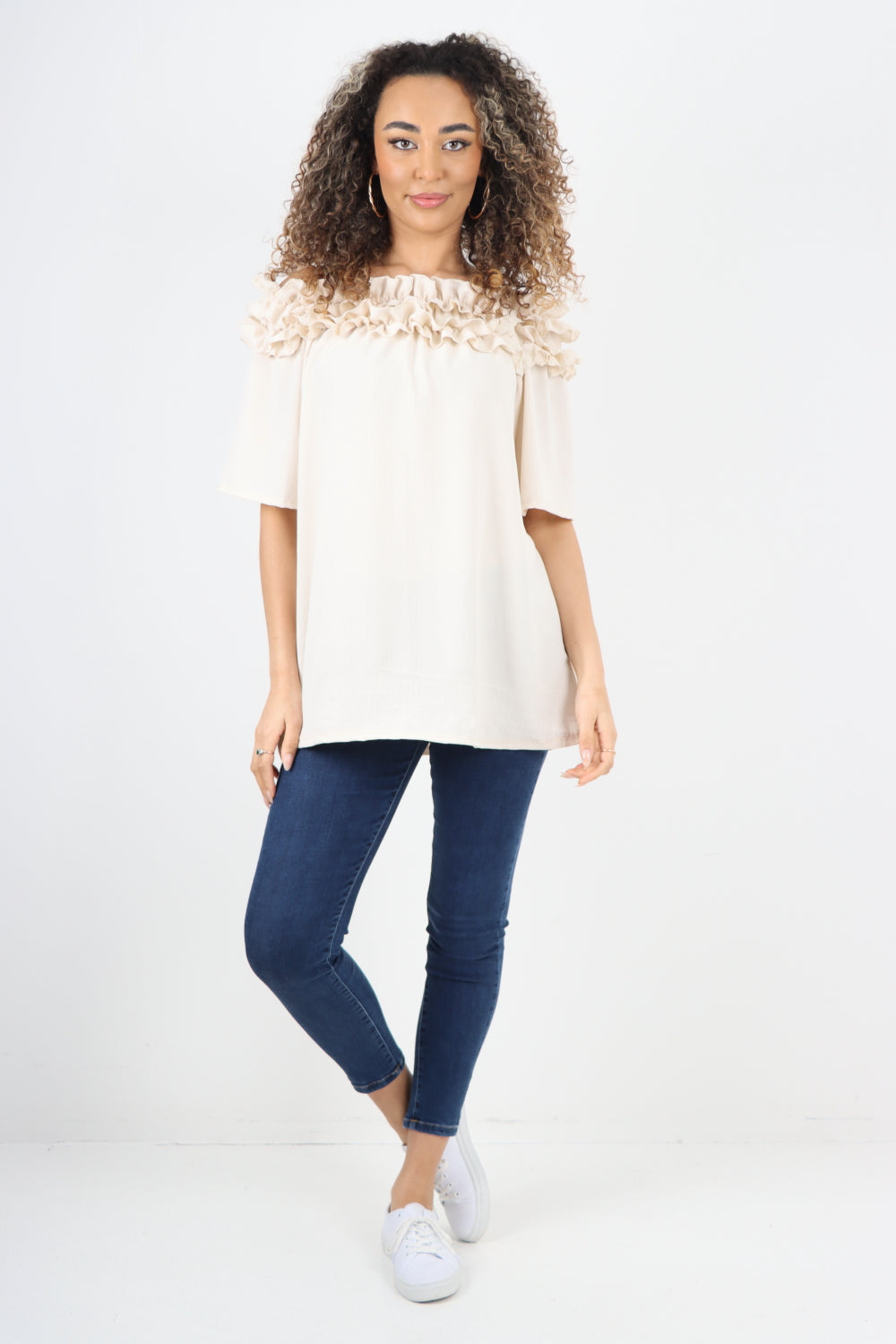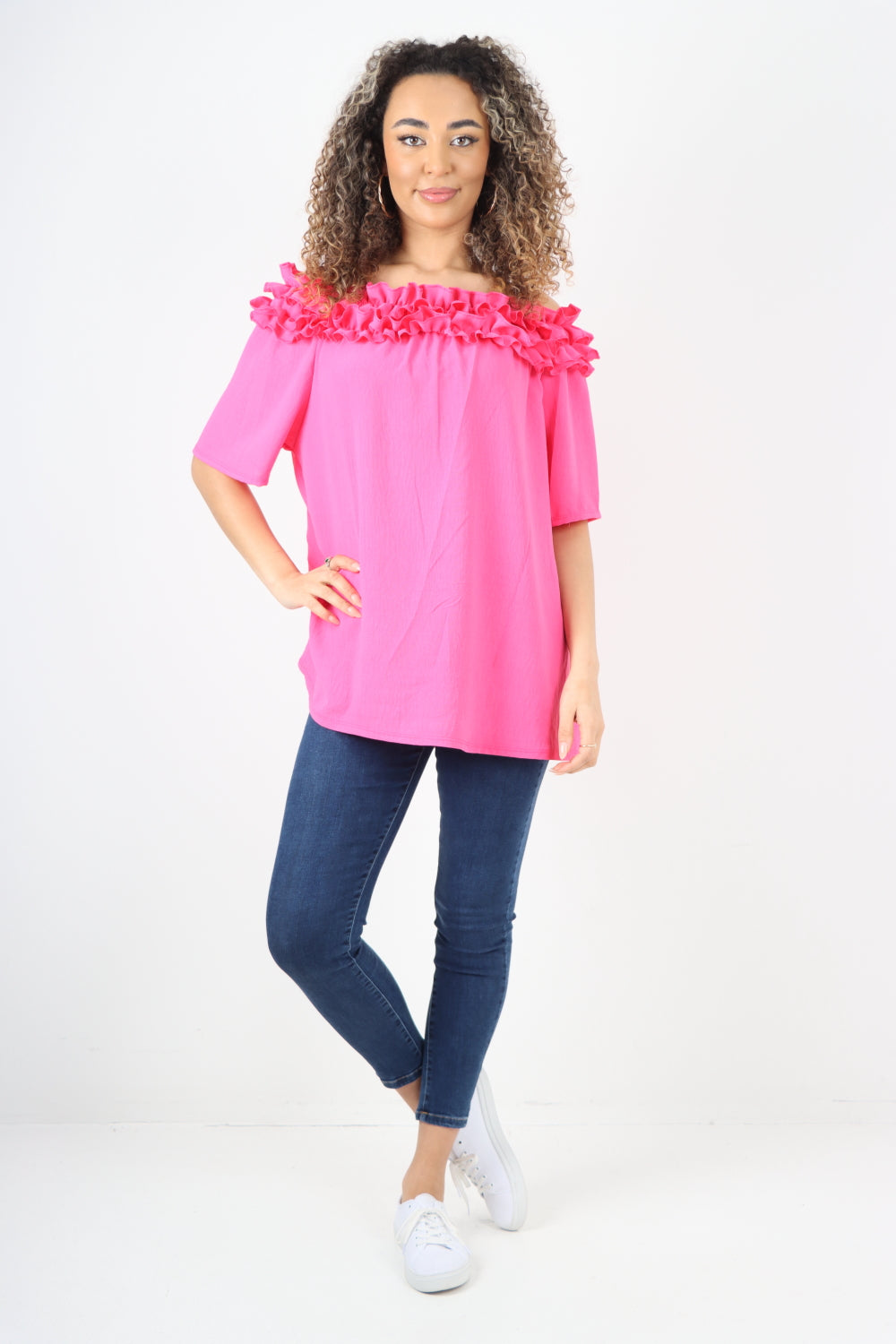 Made In Italy Off The Shoulder Ruffled Neck Plain Top