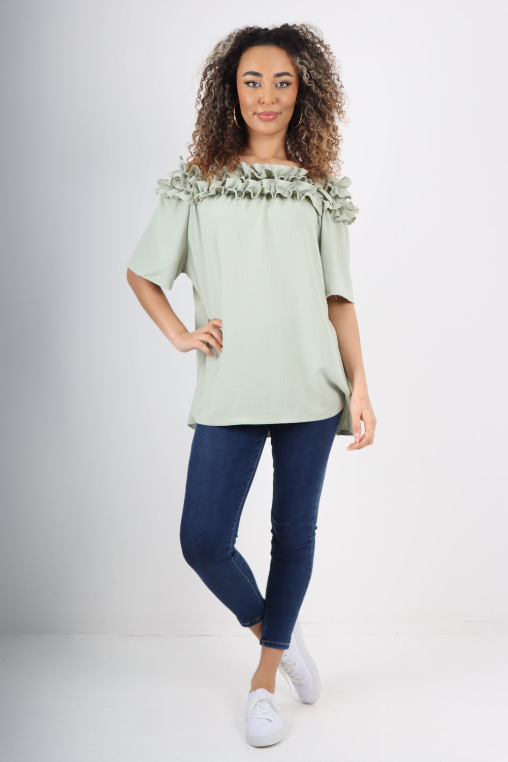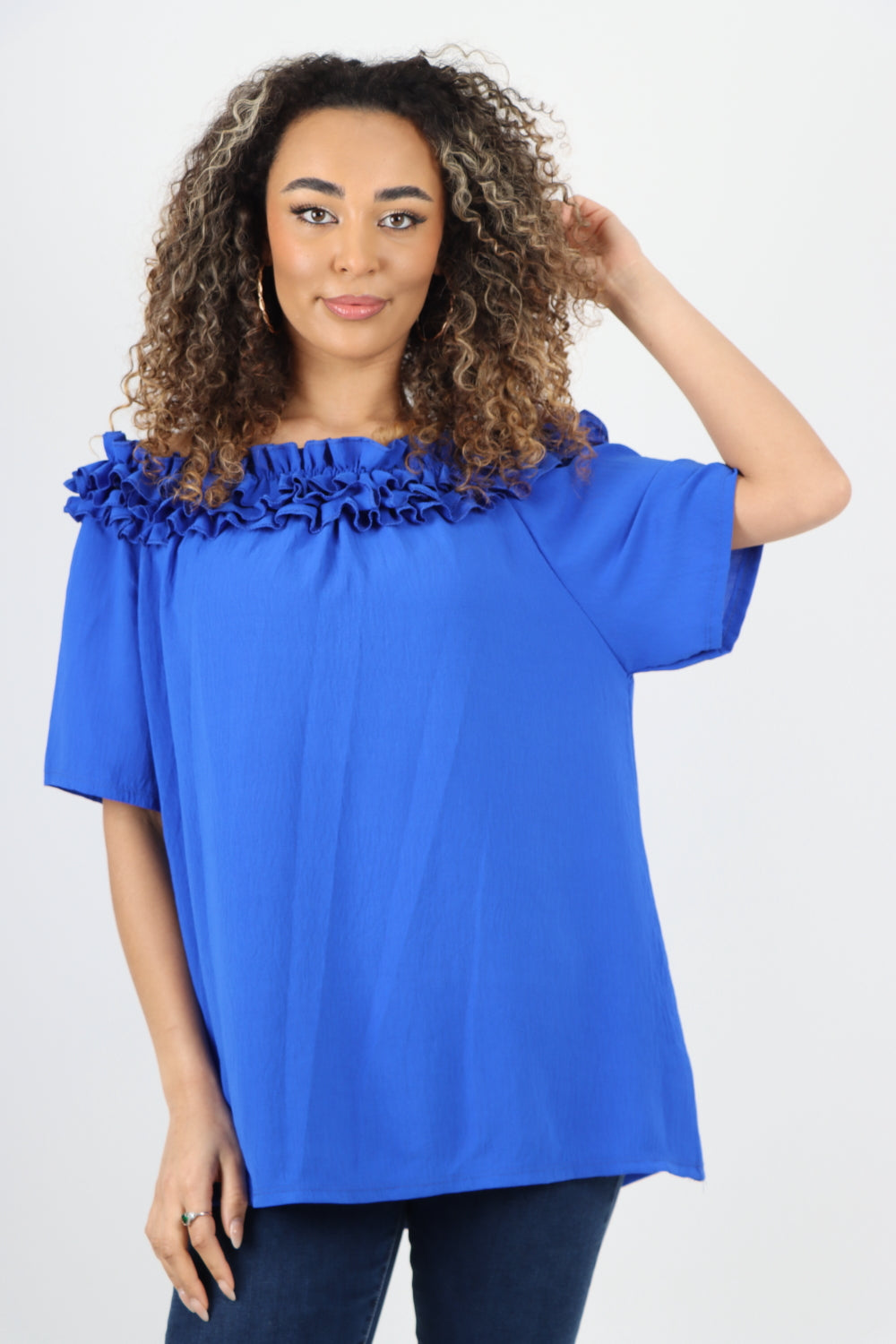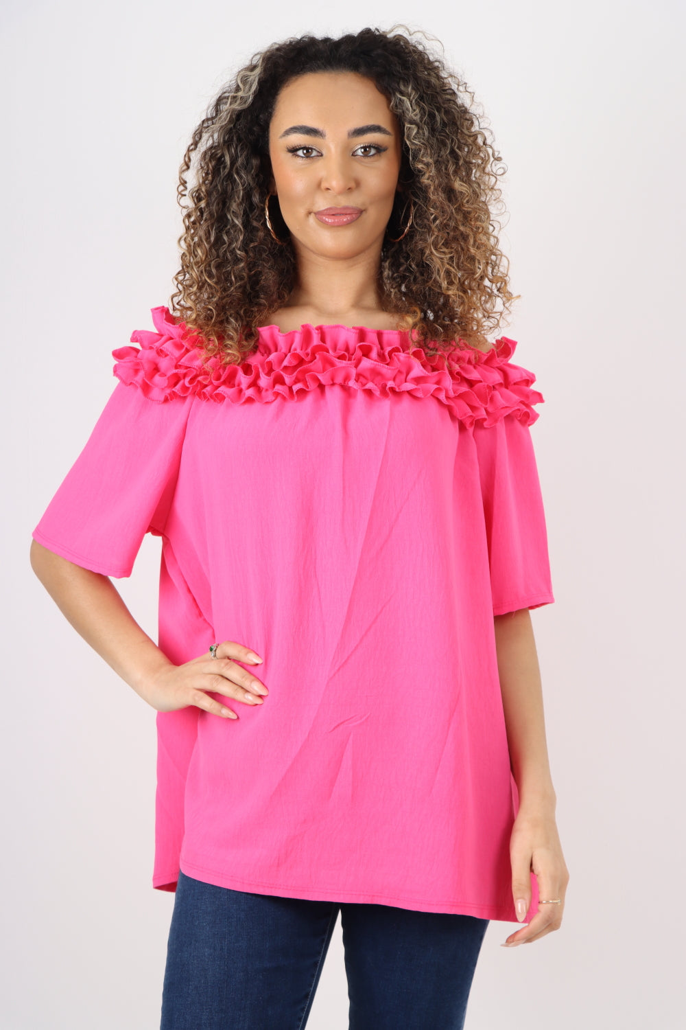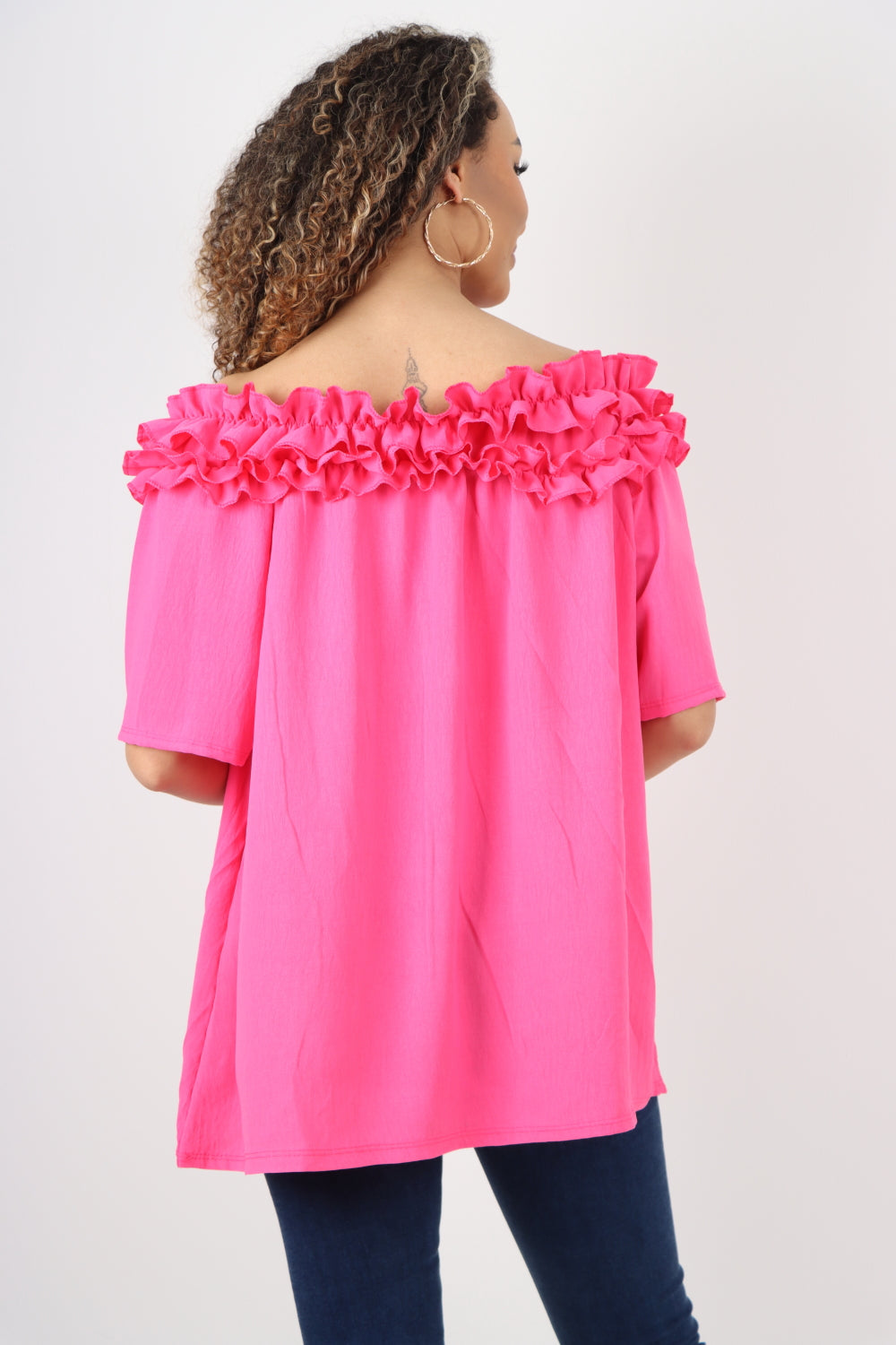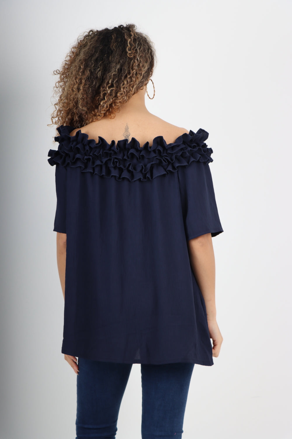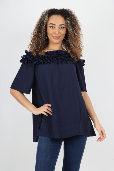 Made In Italy Off The Shoulder Ruffled Neck Plain Top