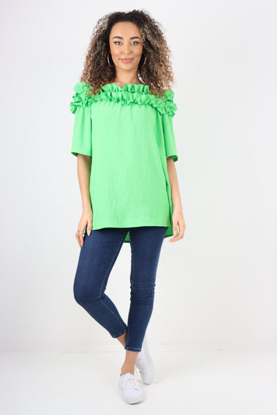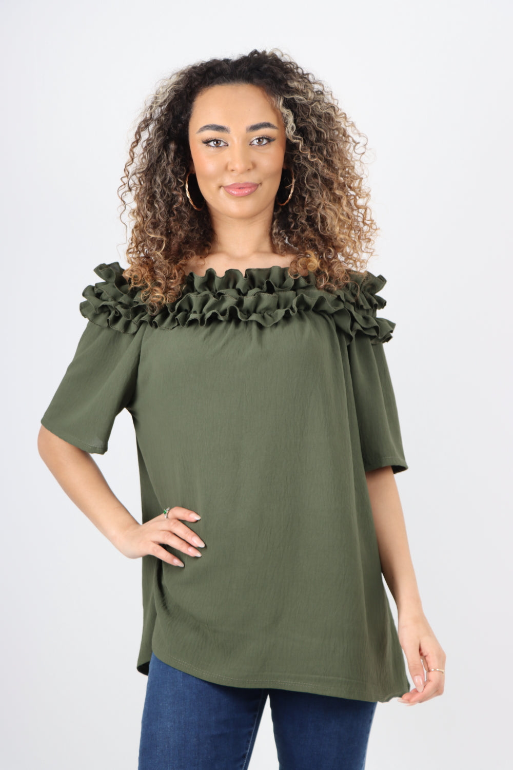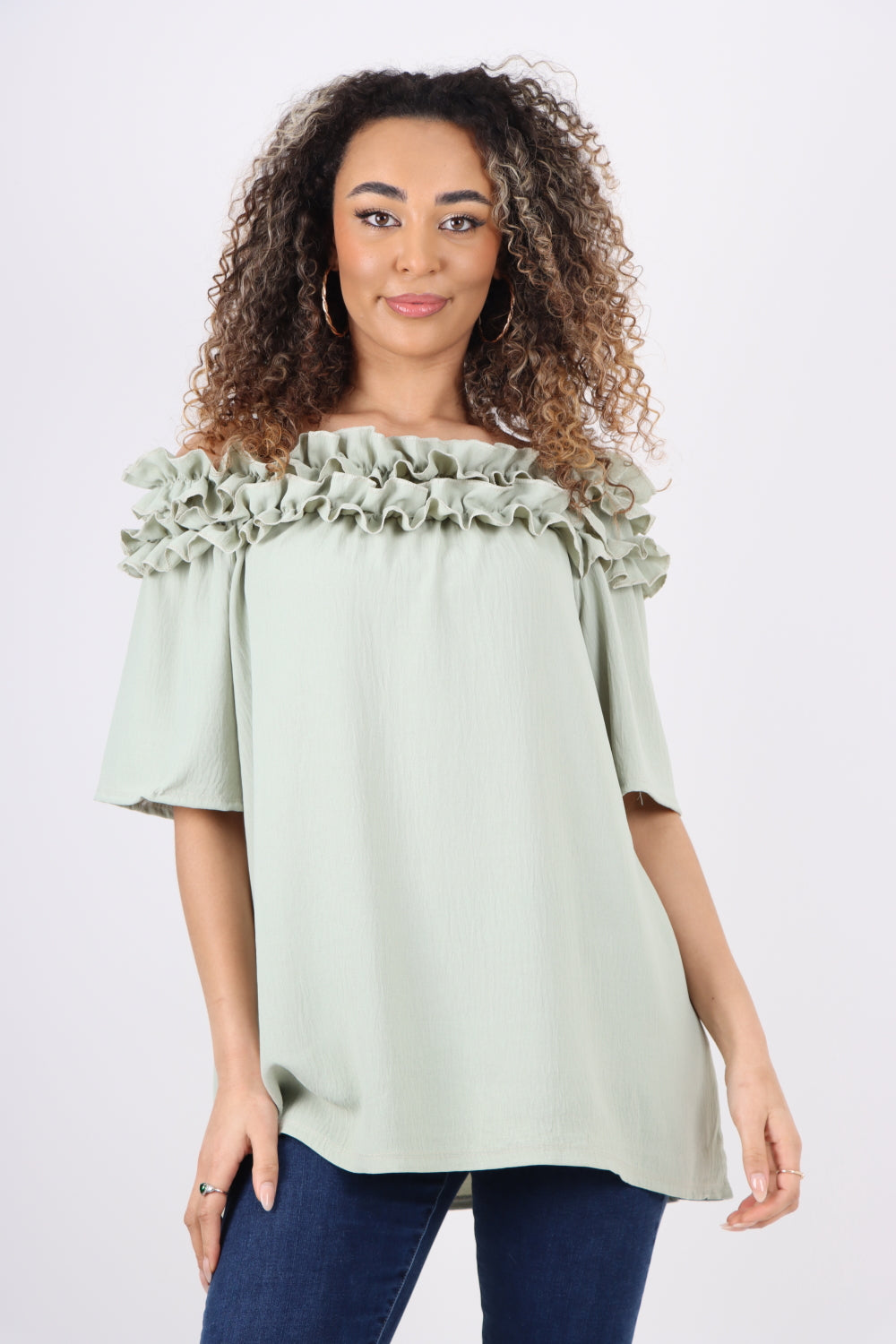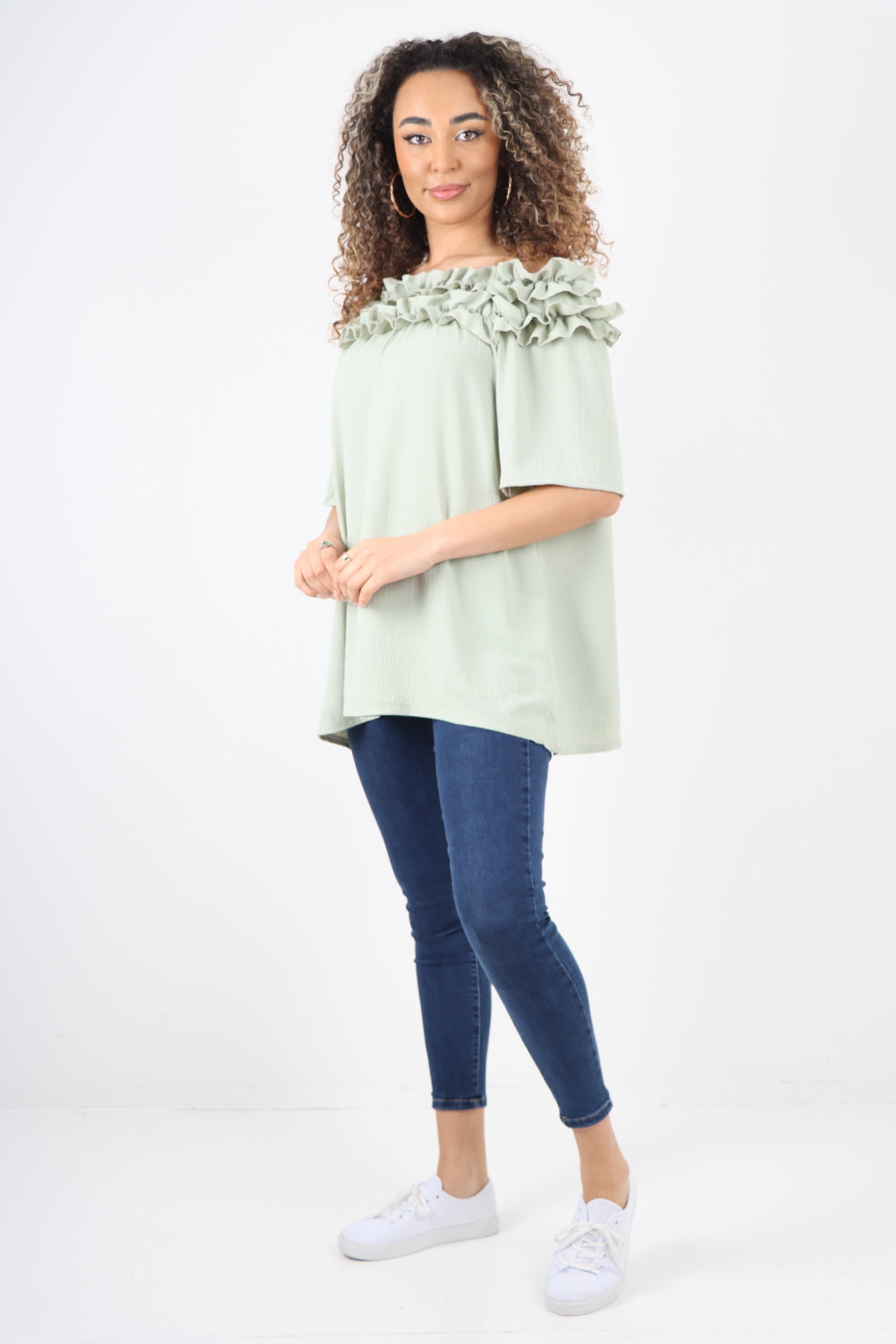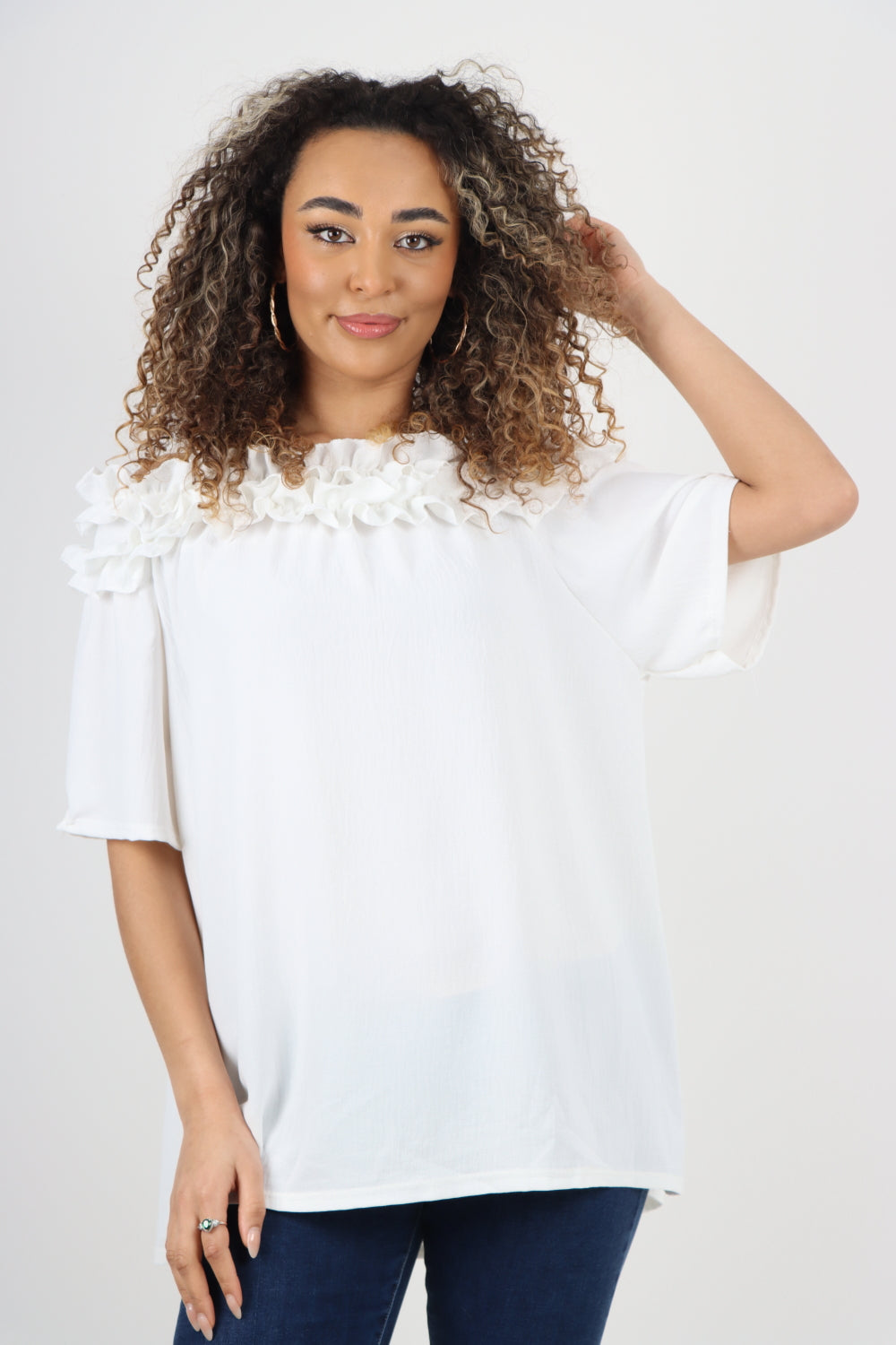 Made In Italy Off The Shoulder Ruffled Neck Plain Top