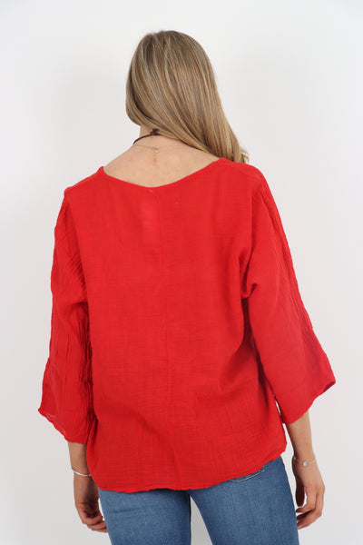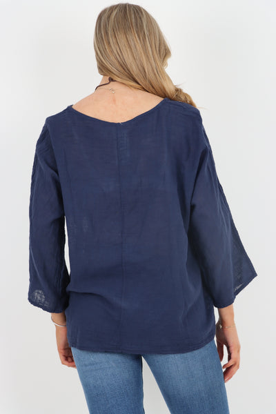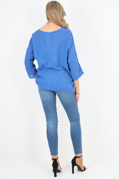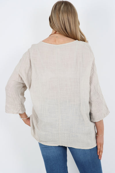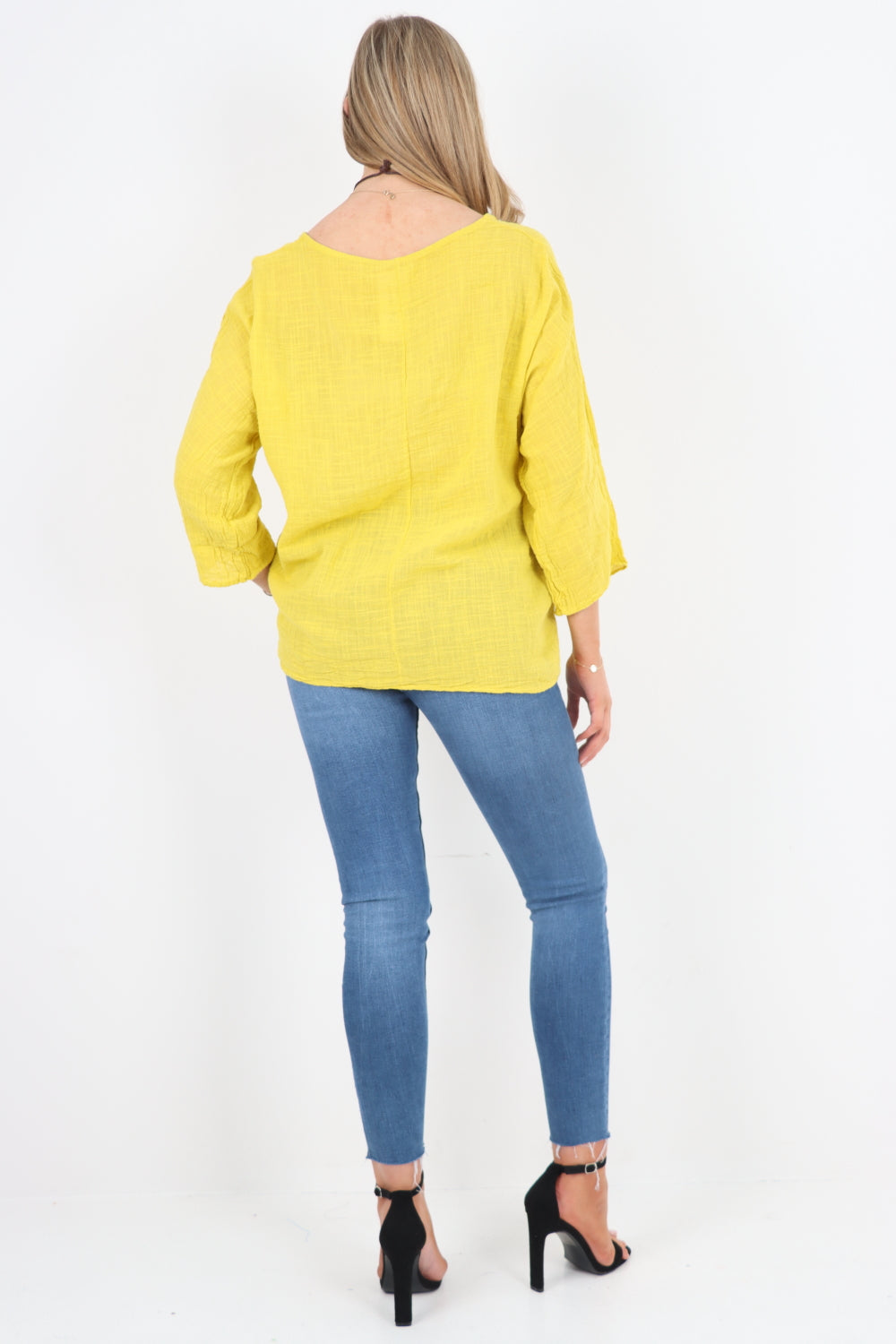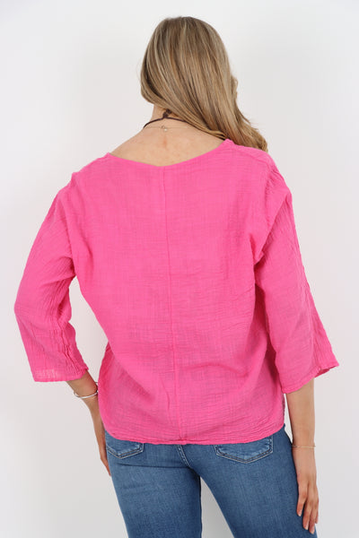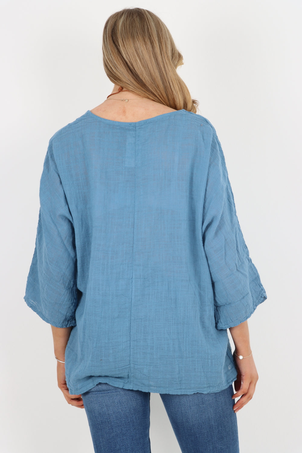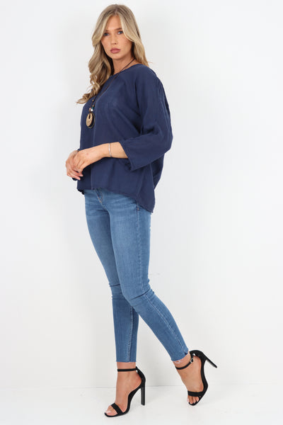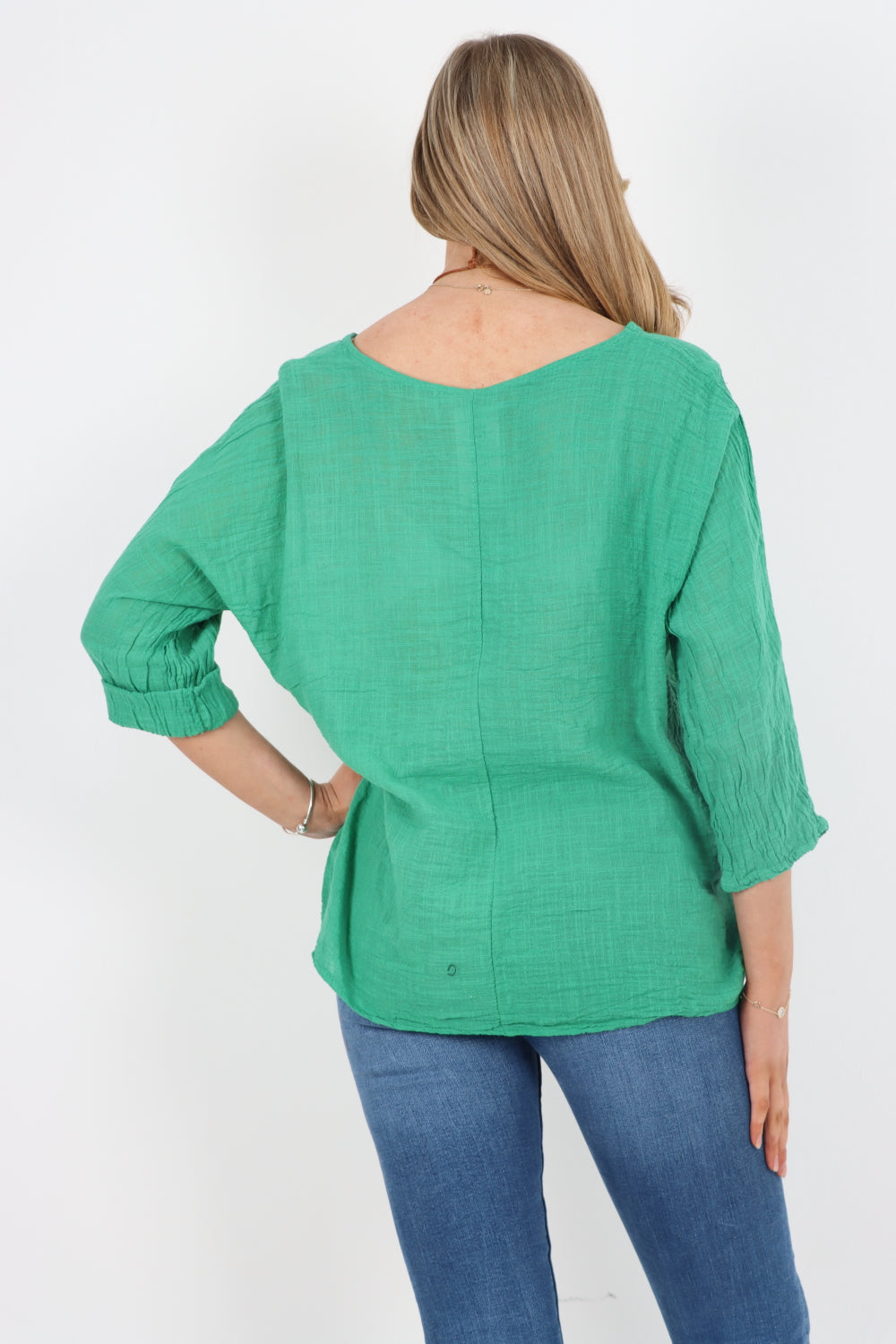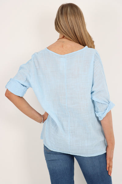 Made In Italy Lagenlook Plain Necklace Cotton Turn Up Sleeve Top