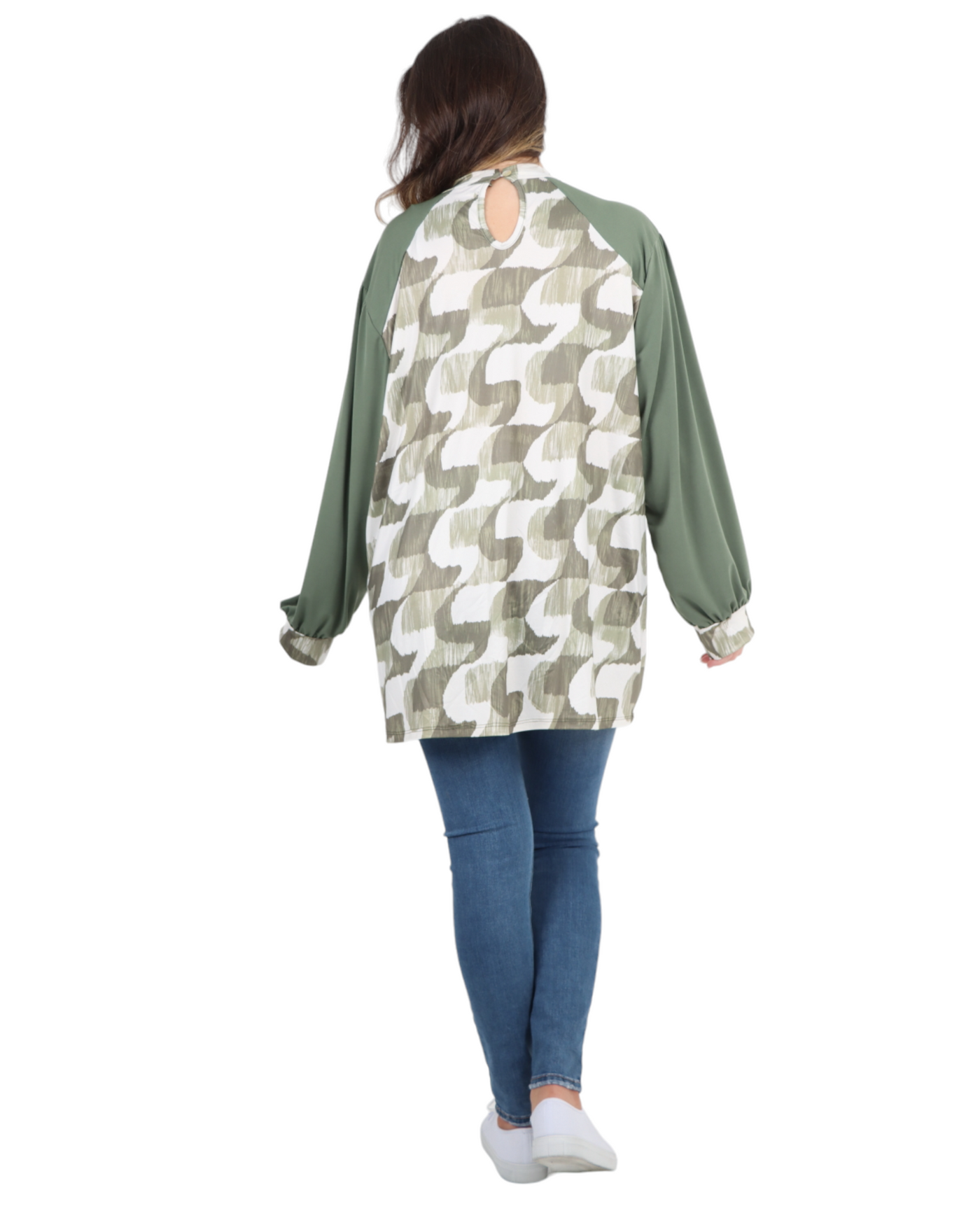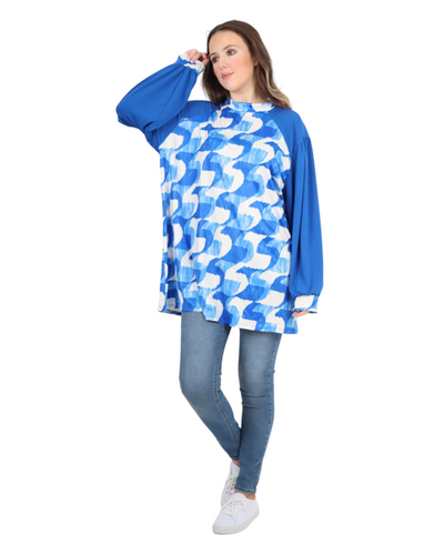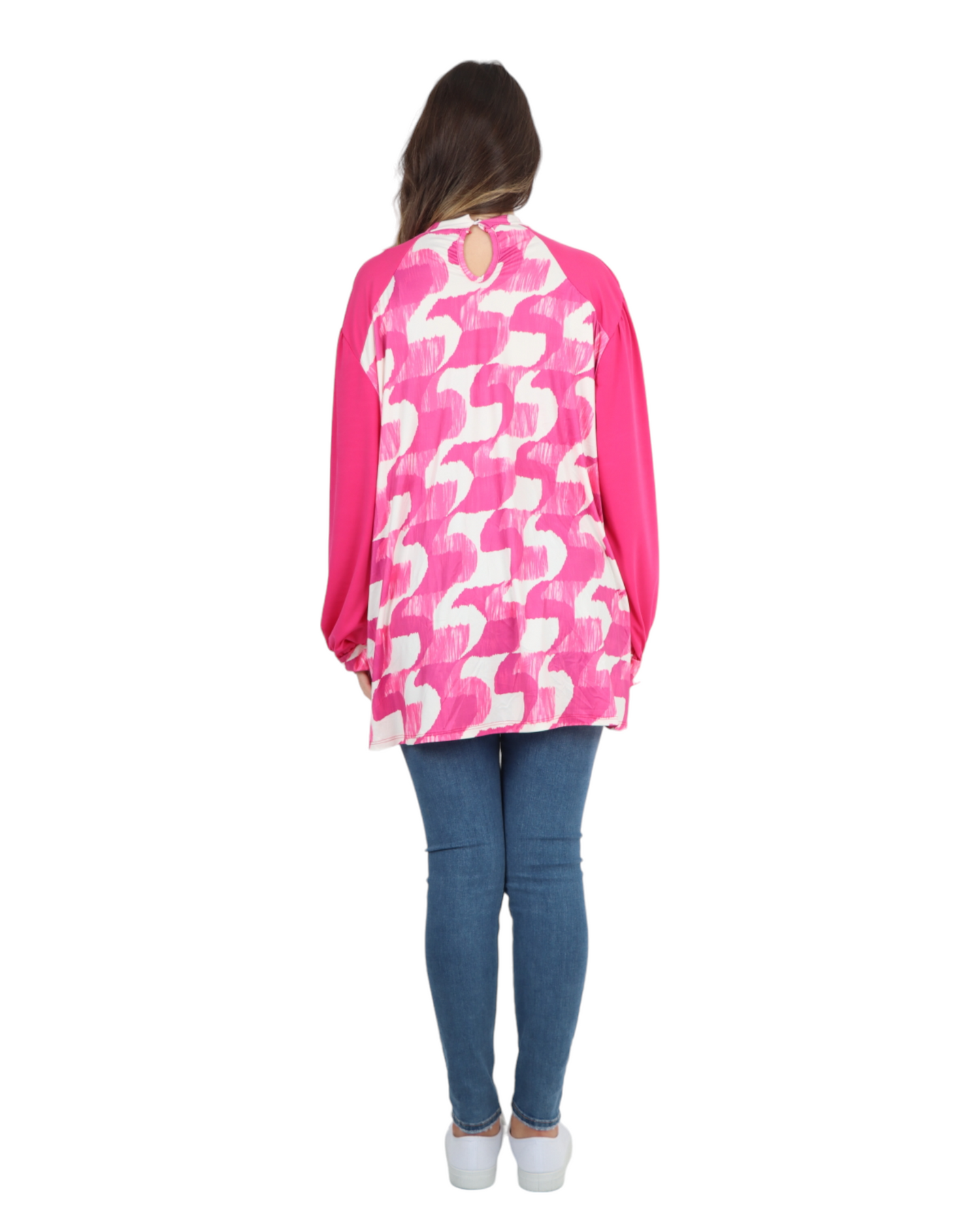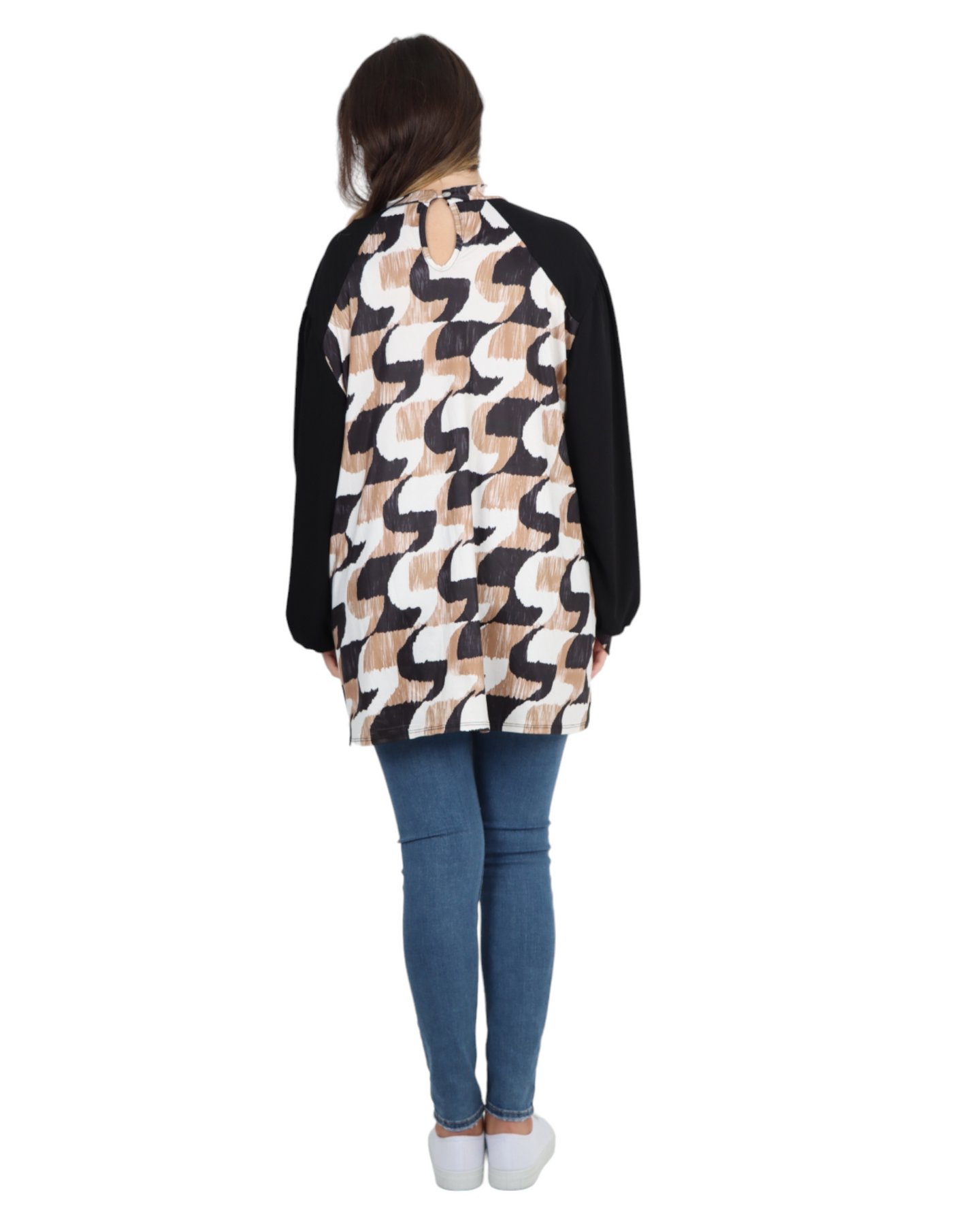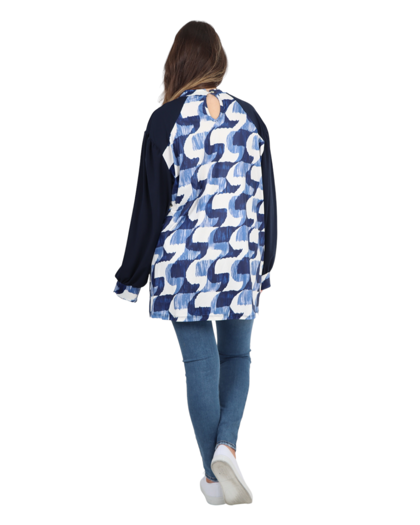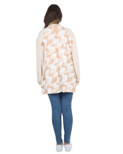 Made in Italy Printed Round Cut Out Back Neck Long Sleeve Top