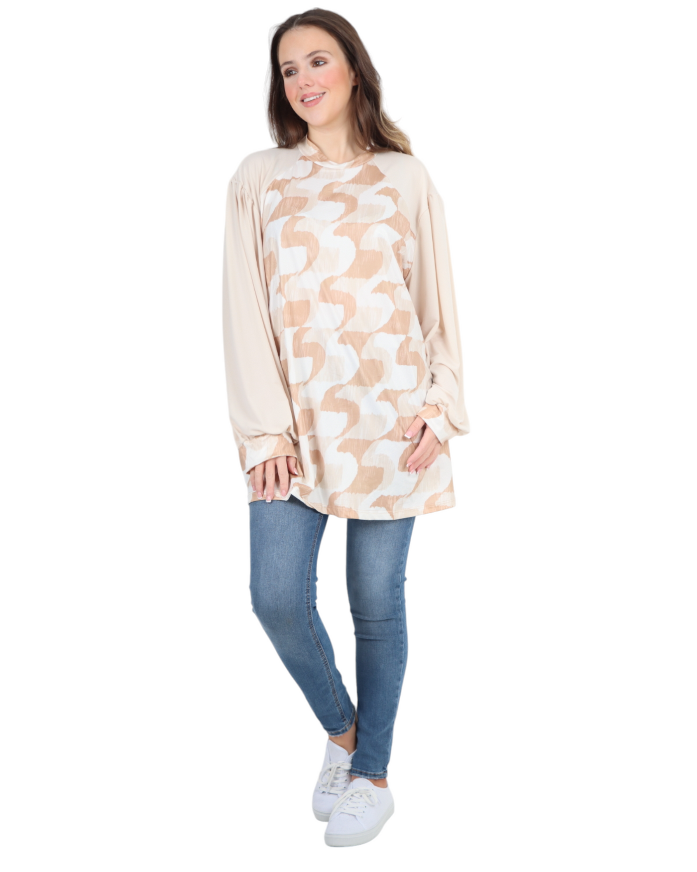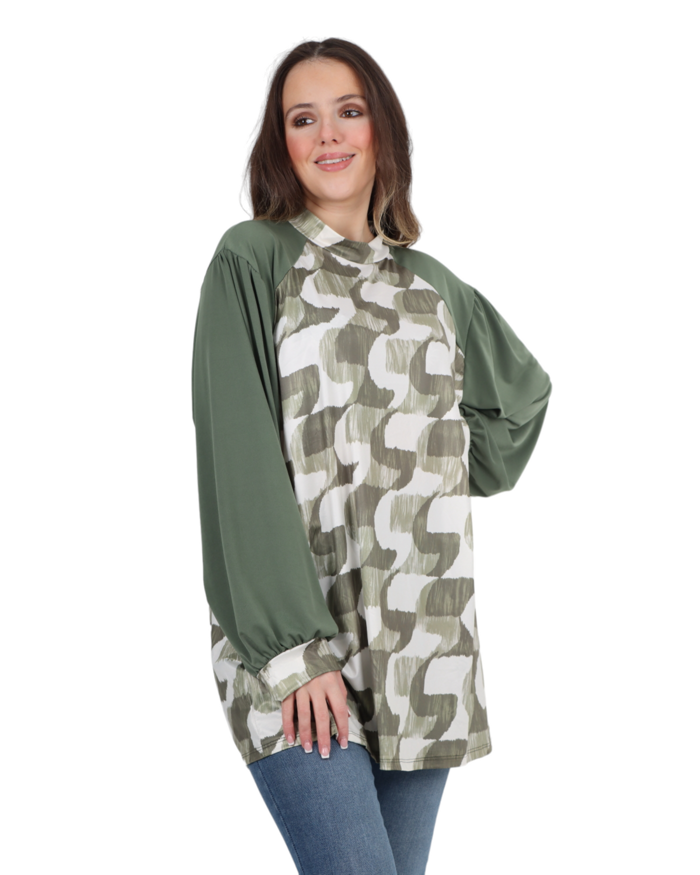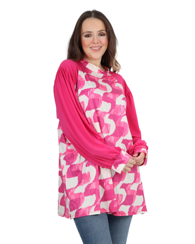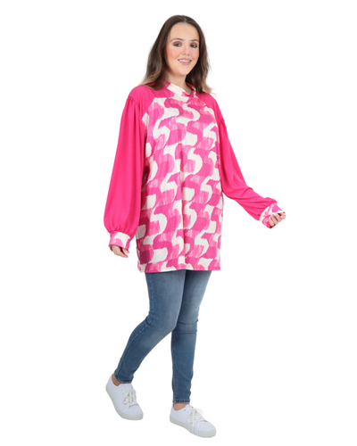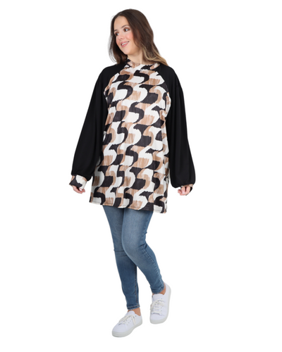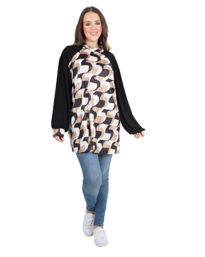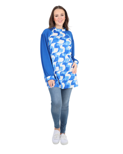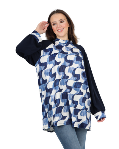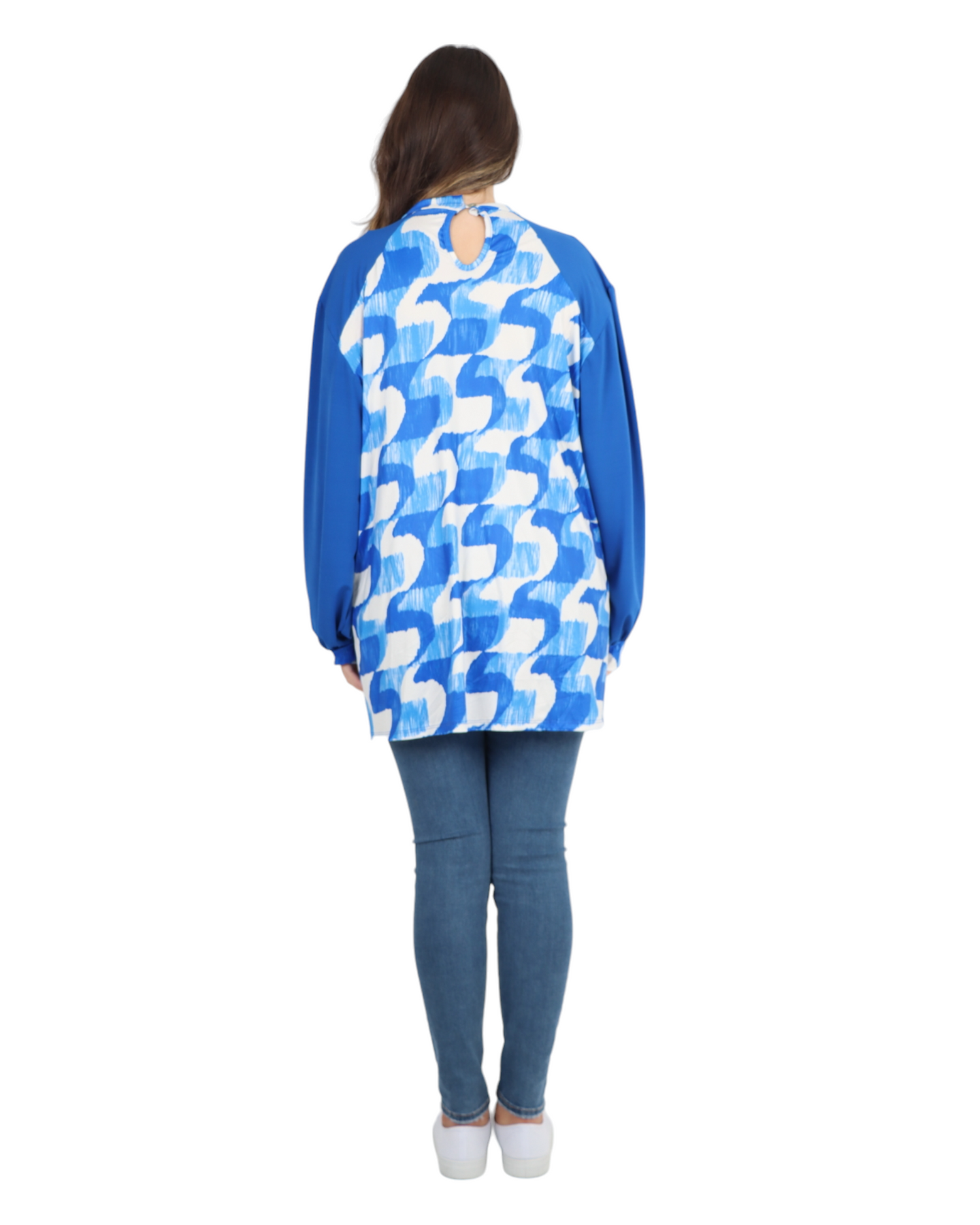 Made in Italy Printed Round Cut Out Back Neck Long Sleeve Top