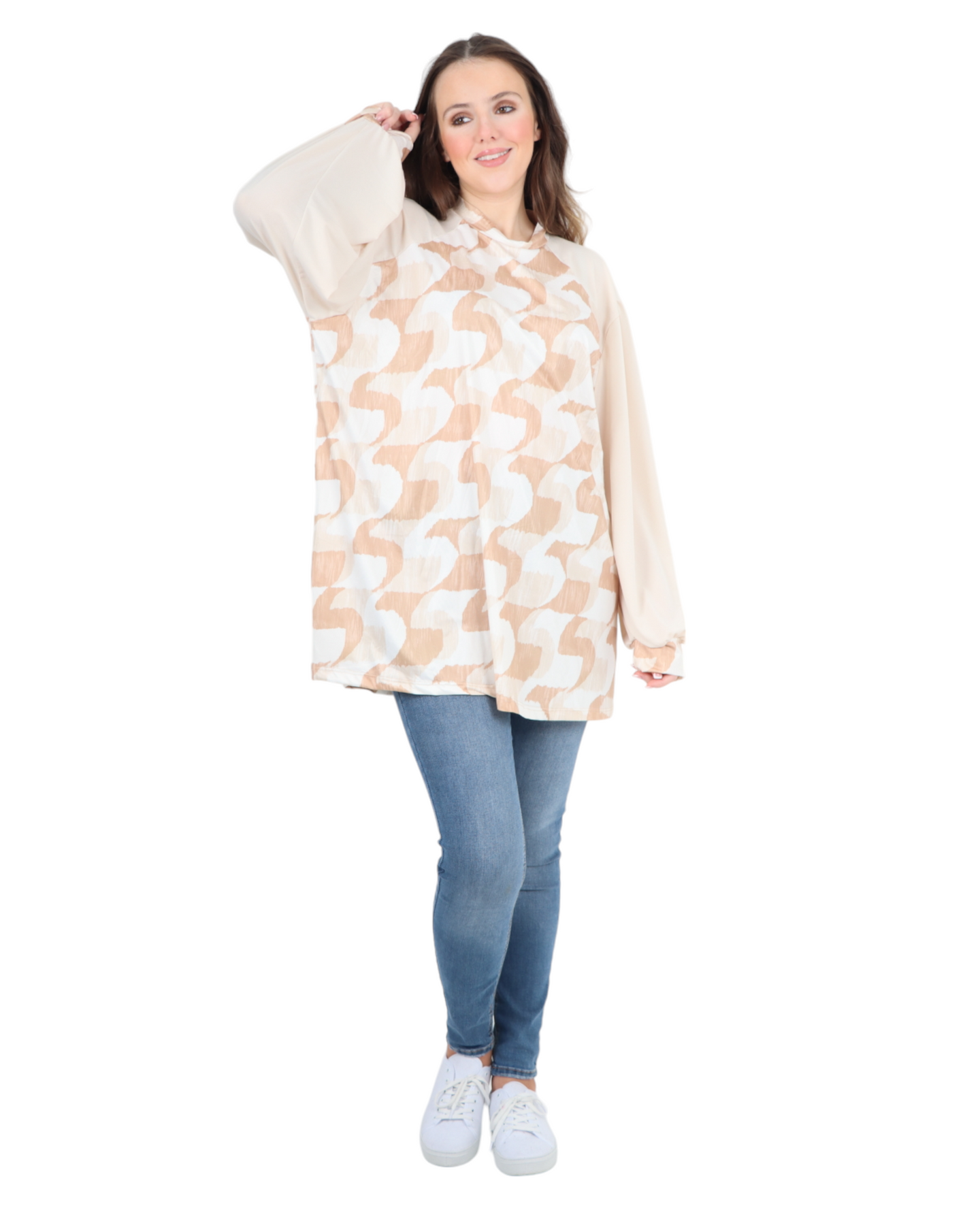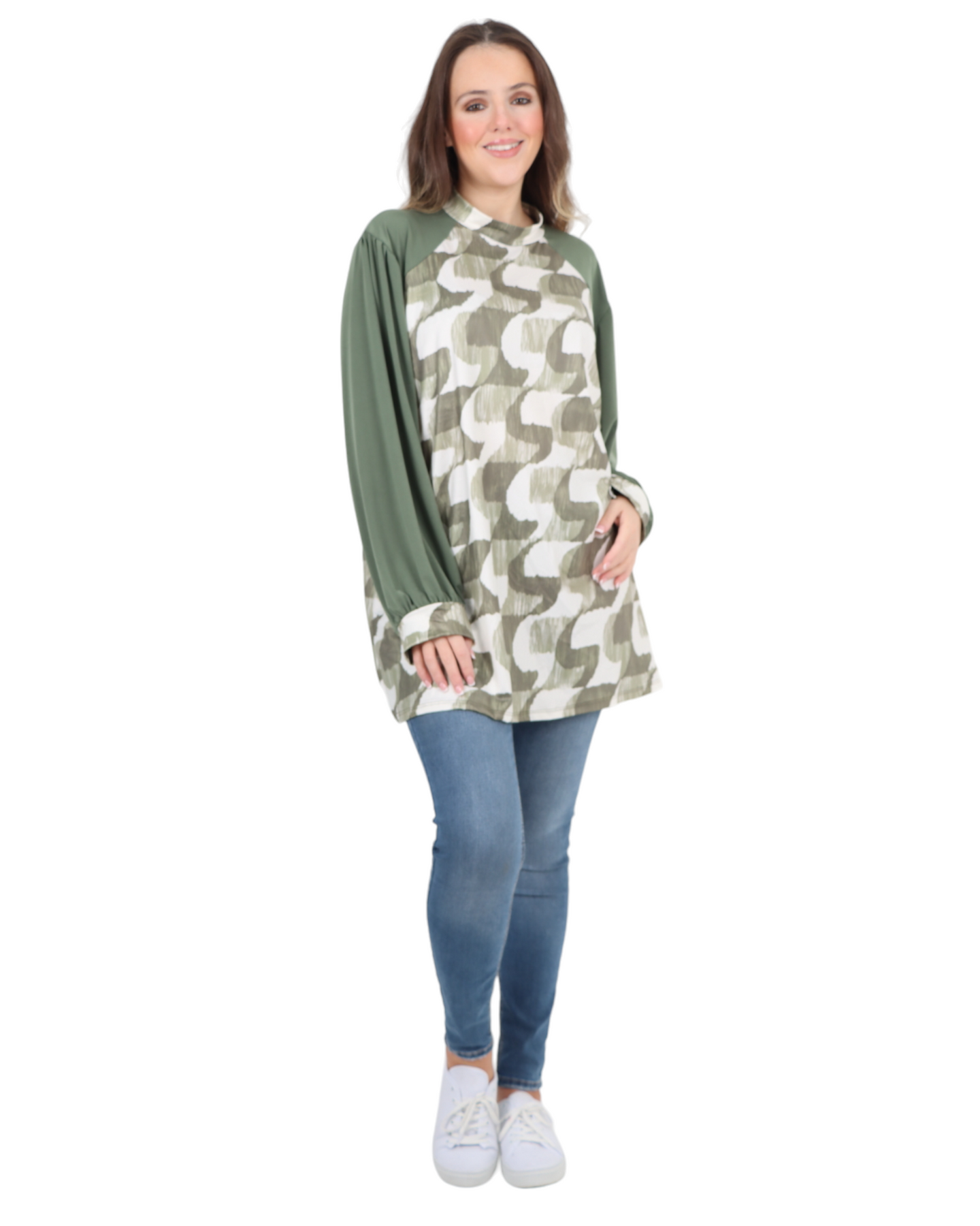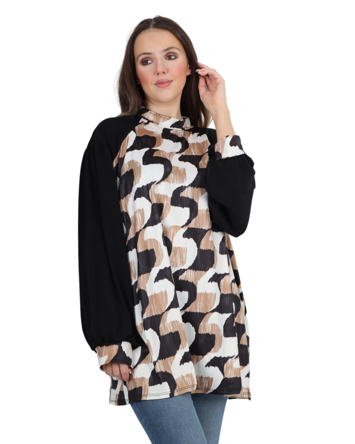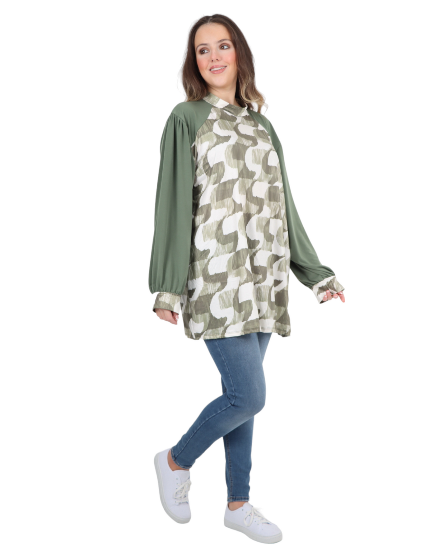 Made in Italy Printed Round Cut Out Back Neck Long Sleeve Top