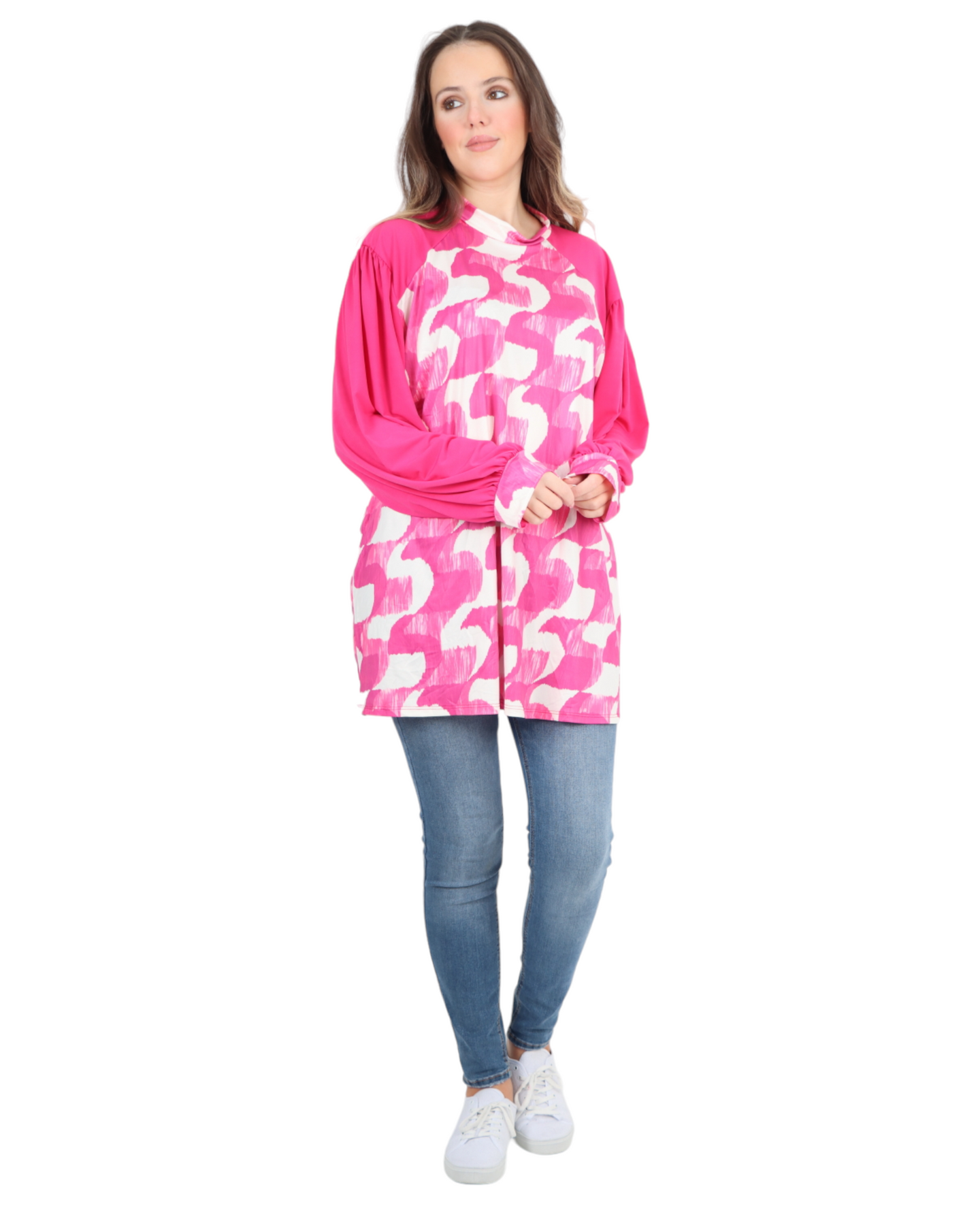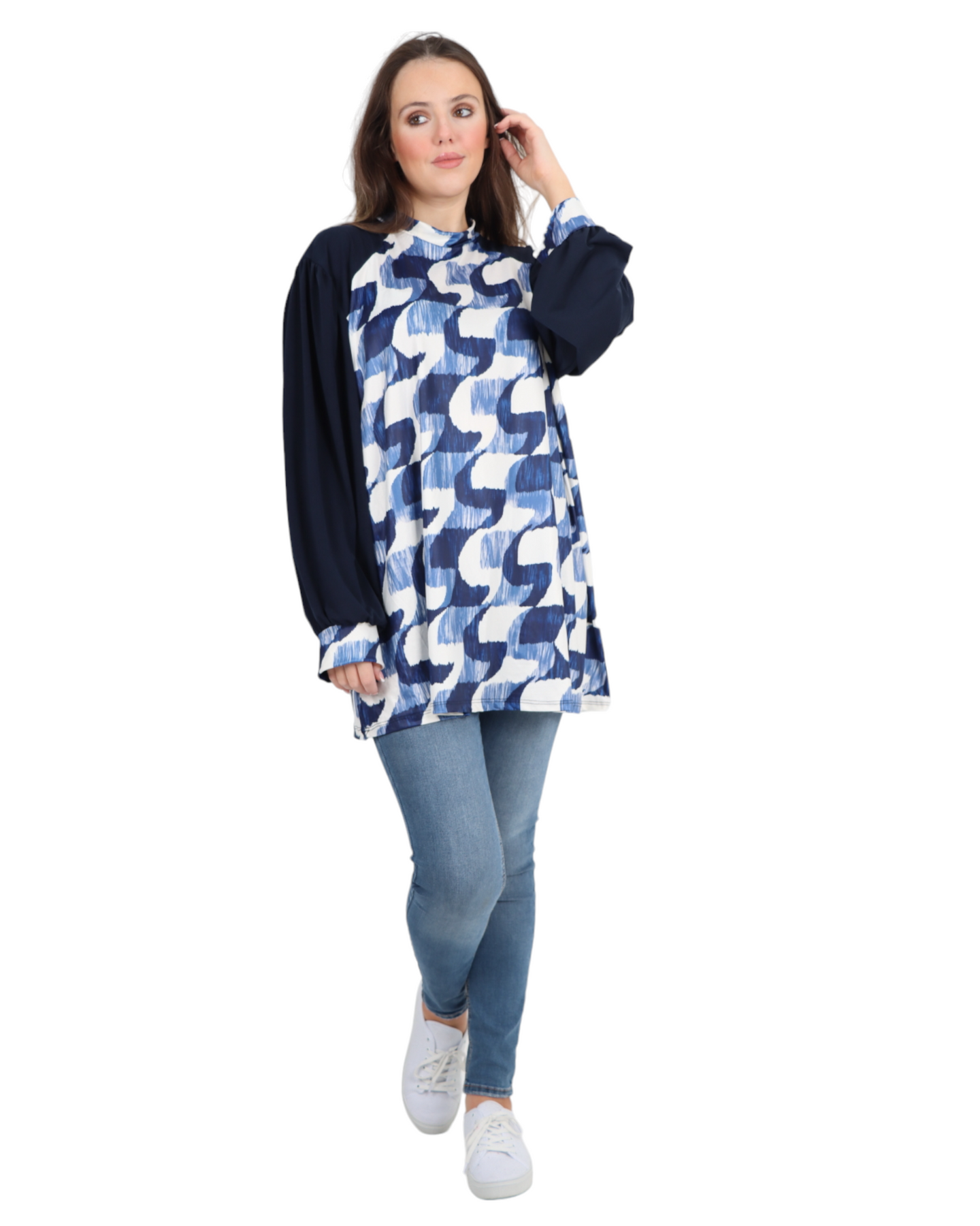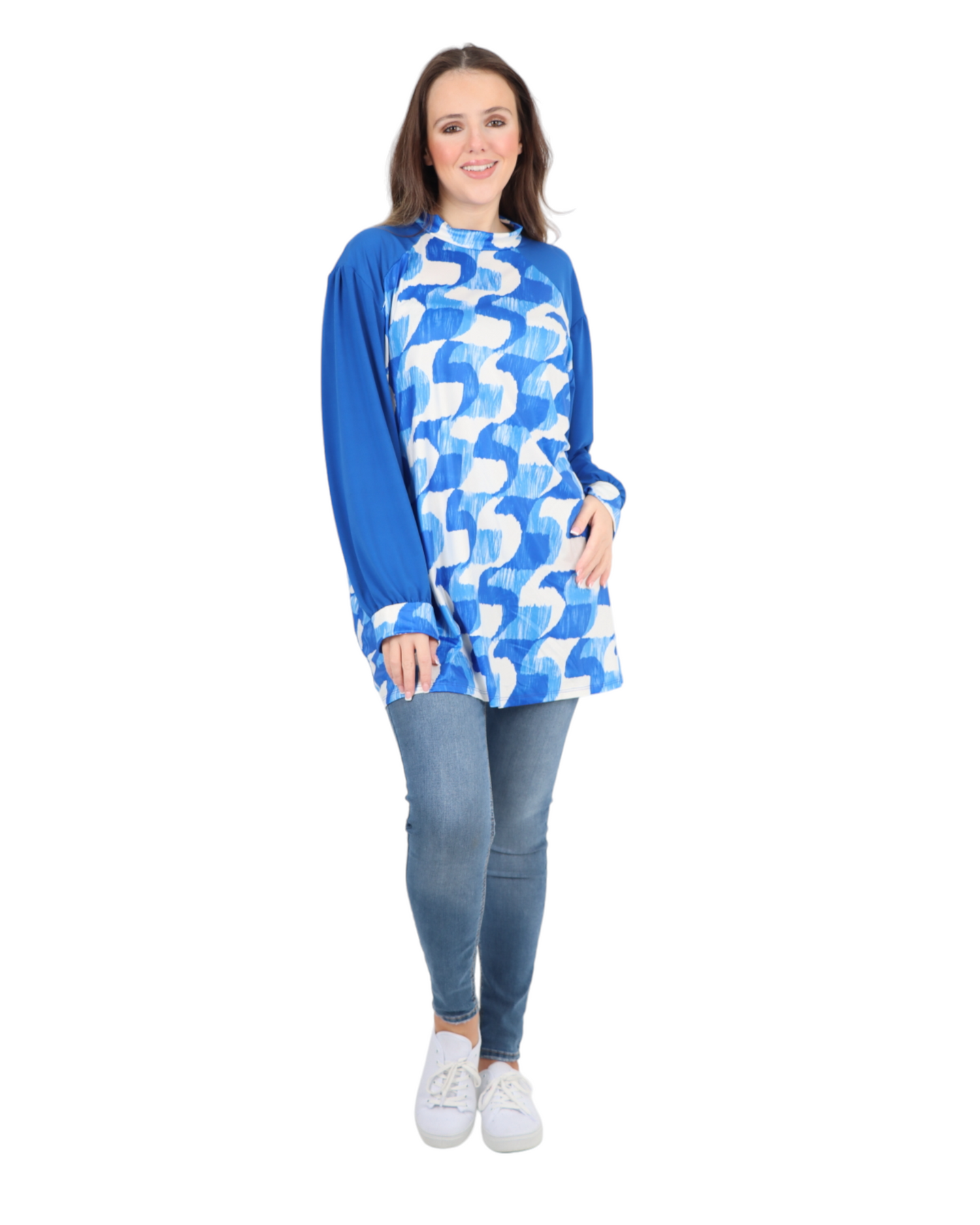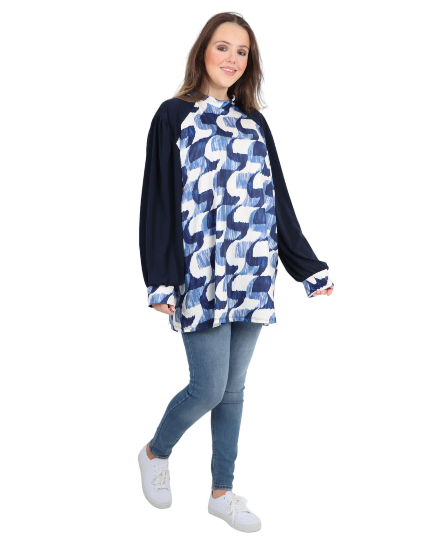 Made in Italy Printed Round Cut Out Back Neck Long Sleeve Top