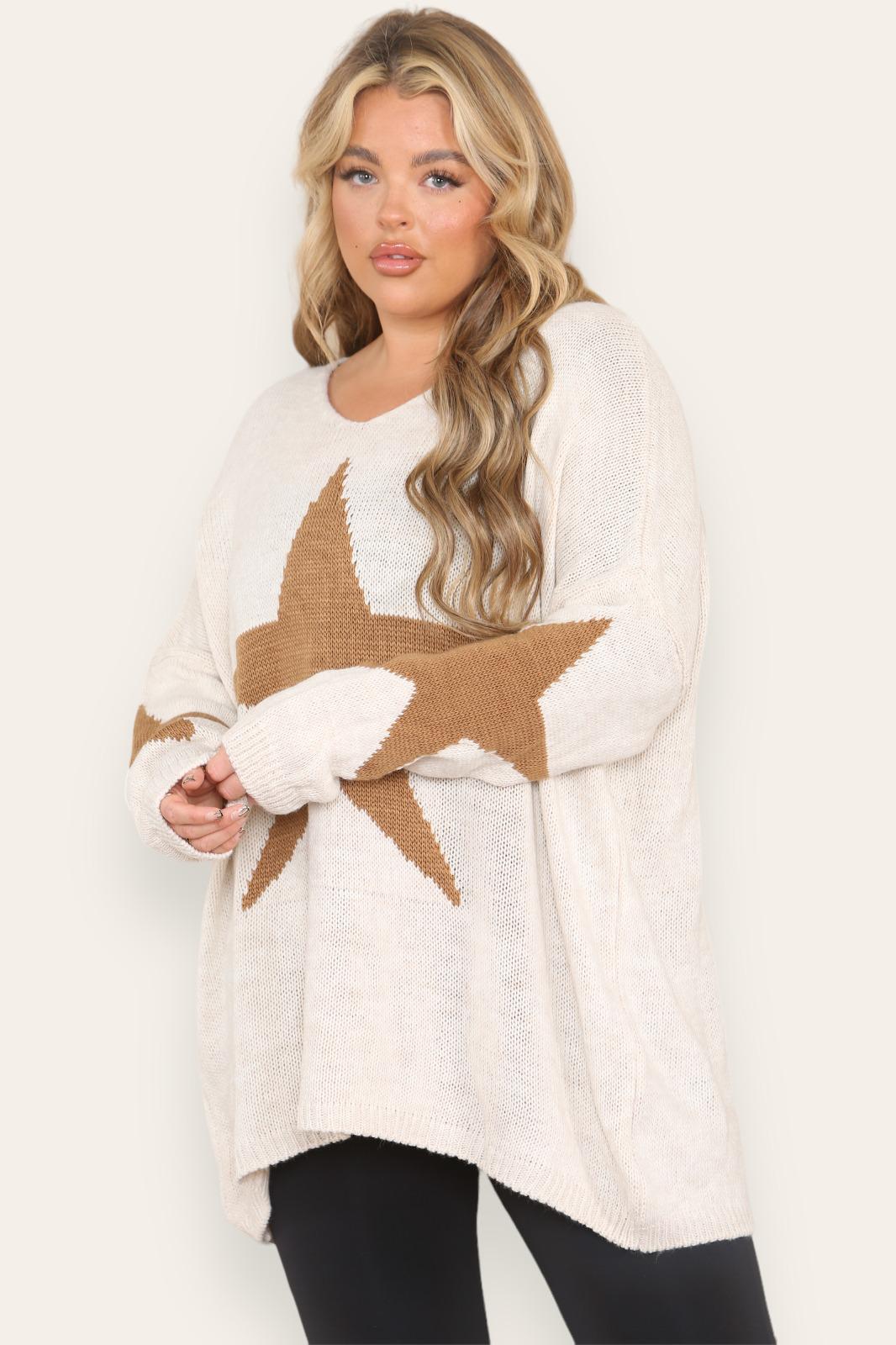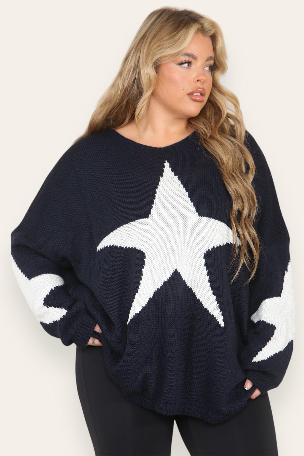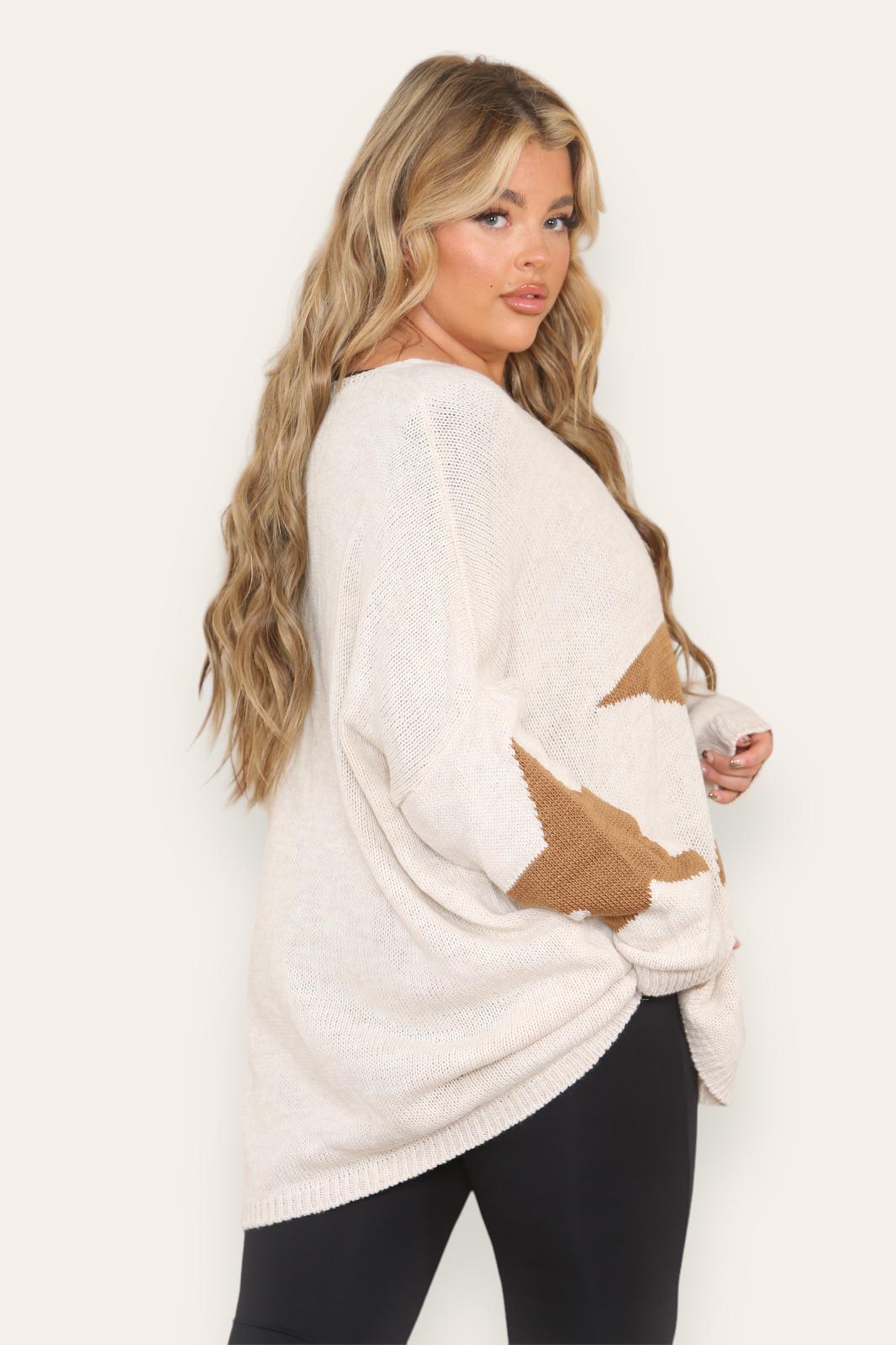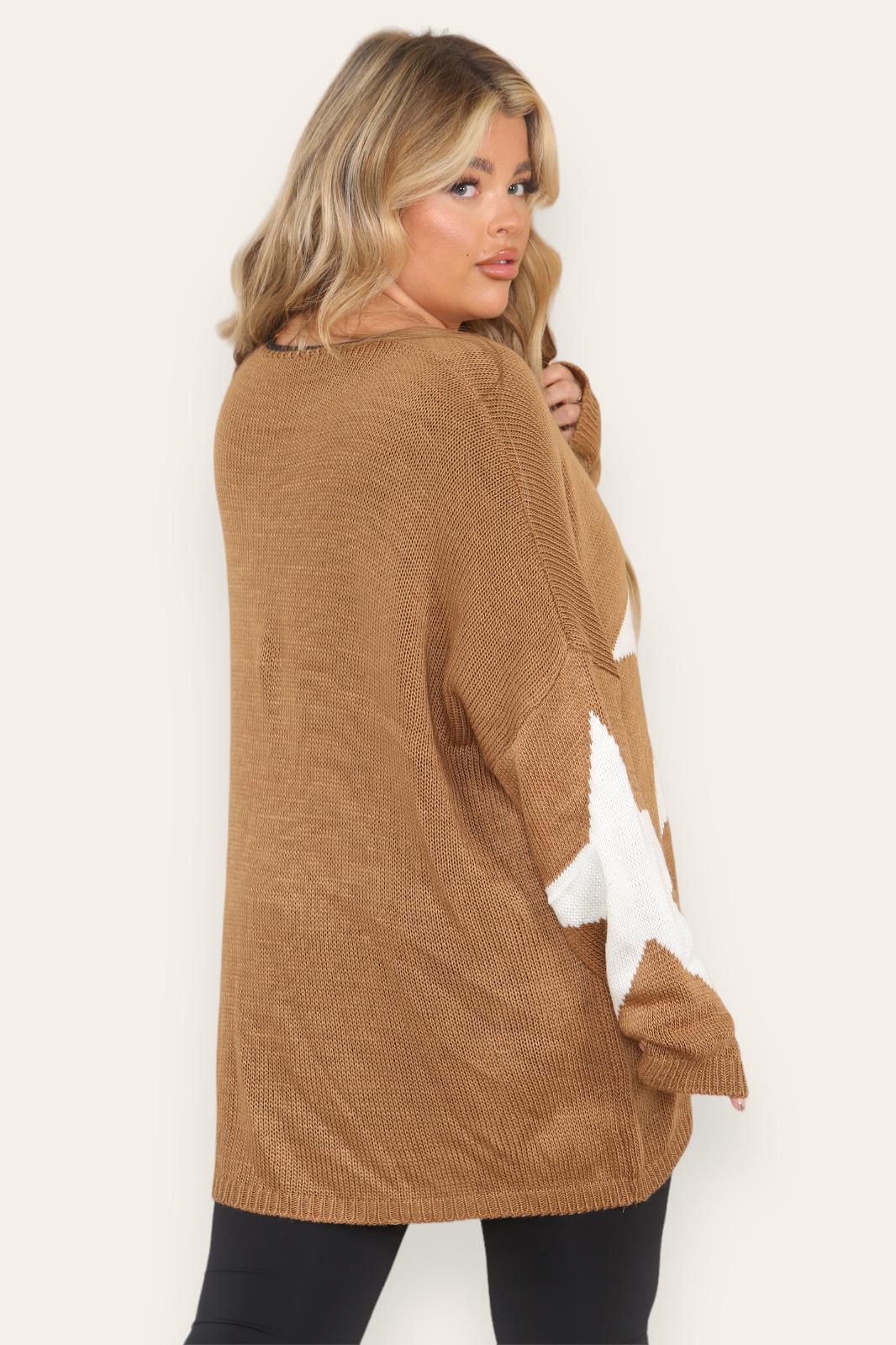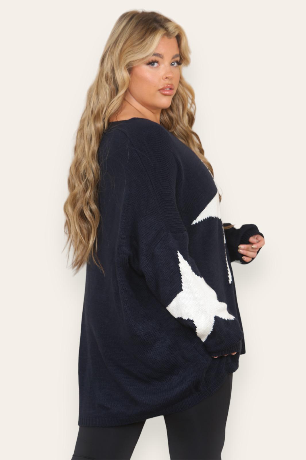 This Oversized Star Print Knitted Jumper  Top  is fun, cozy, statement piece your wardrobe has been waiting for. Its playful star design instantly catches attention while offering a sense of warmth and personality. Designed with a flattering oversized fit, this jumper caters comfortably to UK sizes 8–16. The knitted fabric is soft to the touch, breathable, and perfect for layering through autumn and winter. Whether you’re a boutique owner stocking fresh trends or someone searching for that perfect everyday knit, this one is a clear standout.