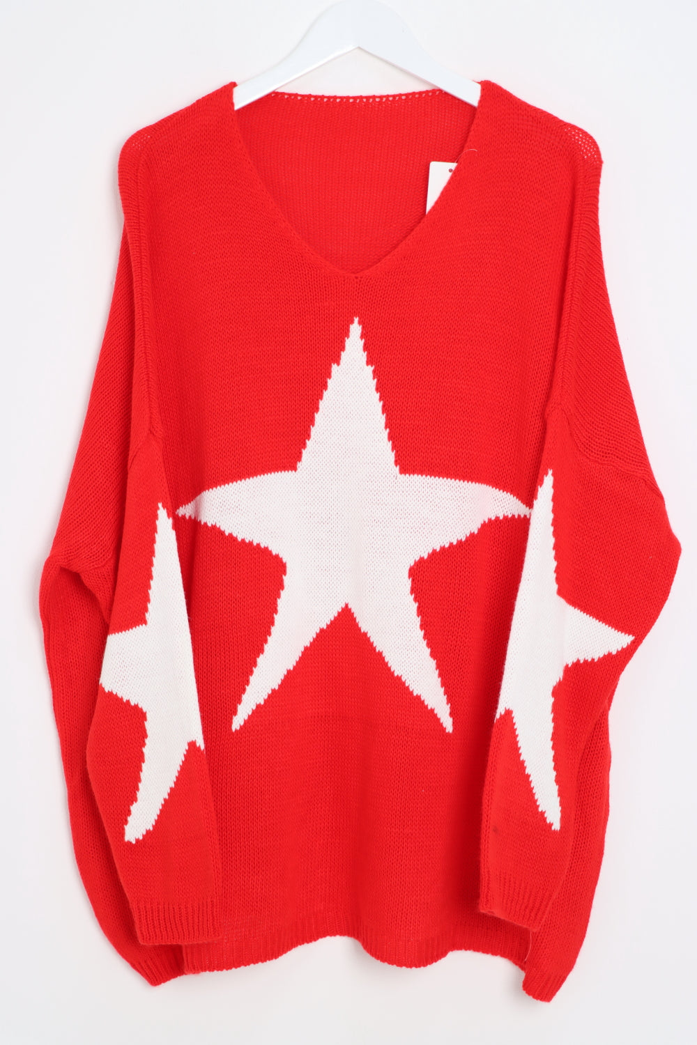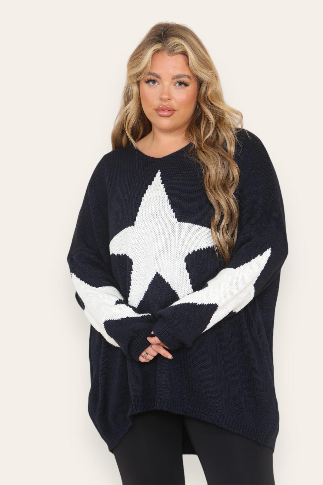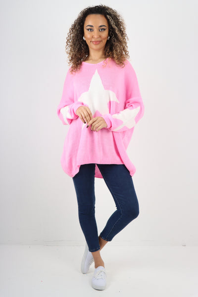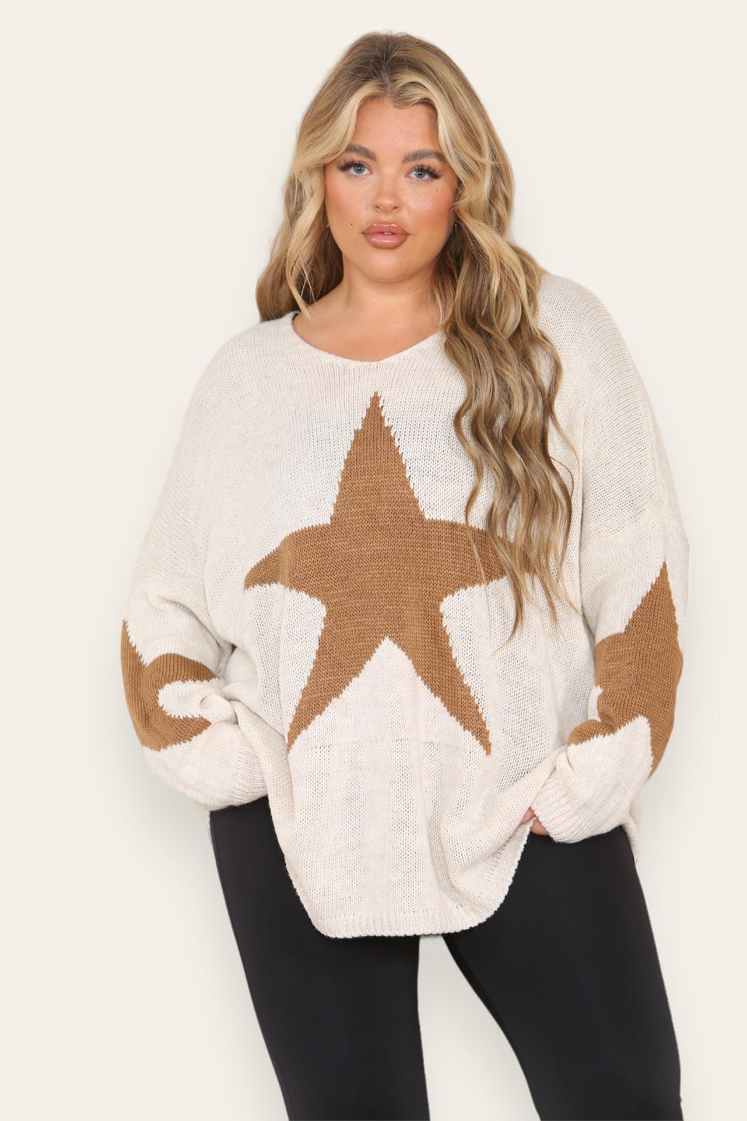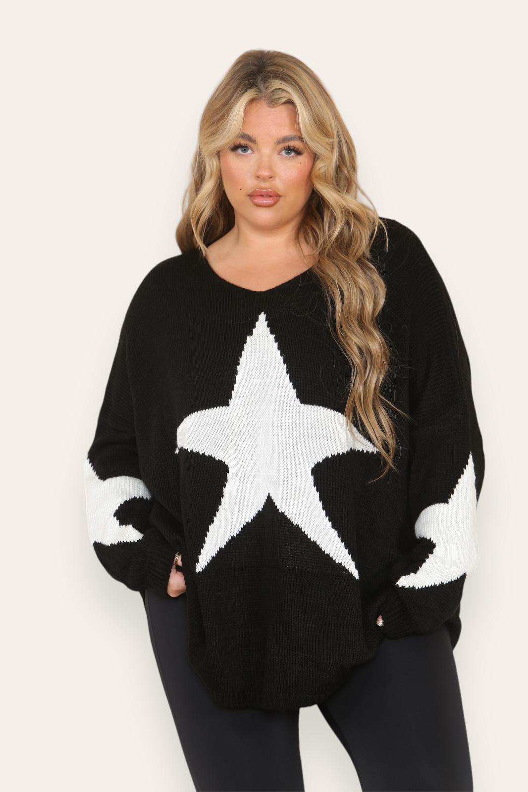 This Oversized Star Print Knitted Jumper  Top  is fun, cozy, statement piece your wardrobe has been waiting for. Its playful star design instantly catches attention while offering a sense of warmth and personality. Designed with a flattering oversized fit, this jumper caters comfortably to UK sizes 8–16. The knitted fabric is soft to the touch, breathable, and perfect for layering through autumn and winter. Whether you’re a boutique owner stocking fresh trends or someone searching for that perfect everyday knit, this one is a clear standout.