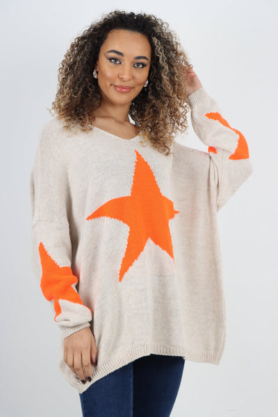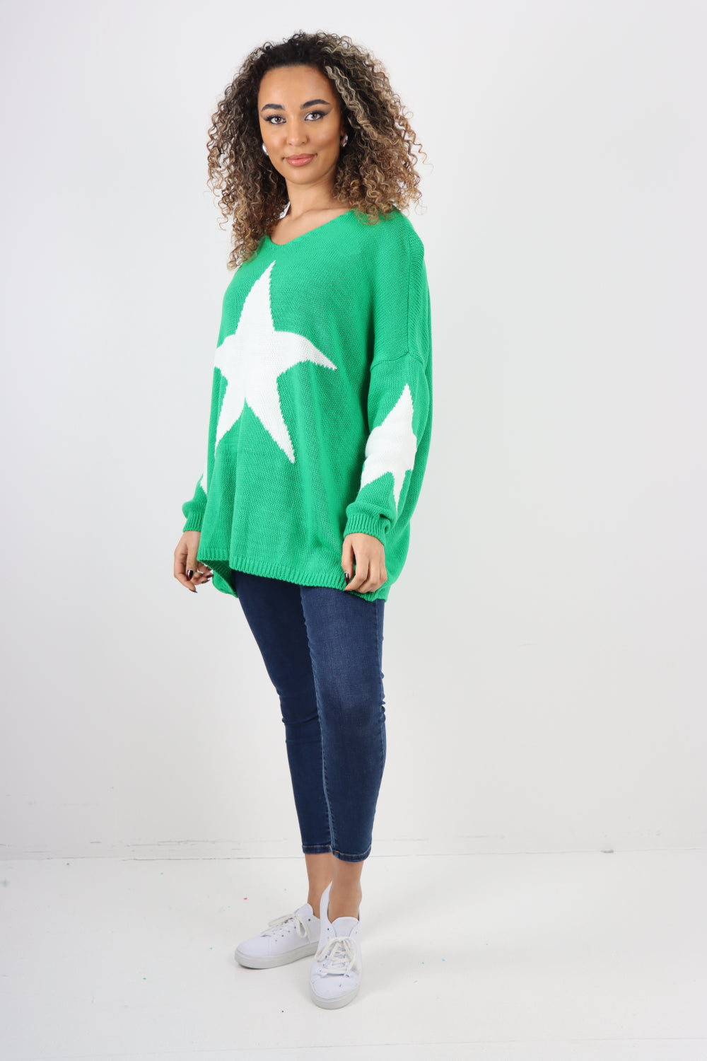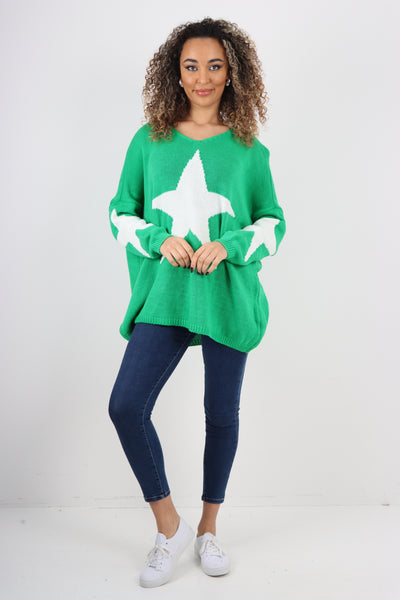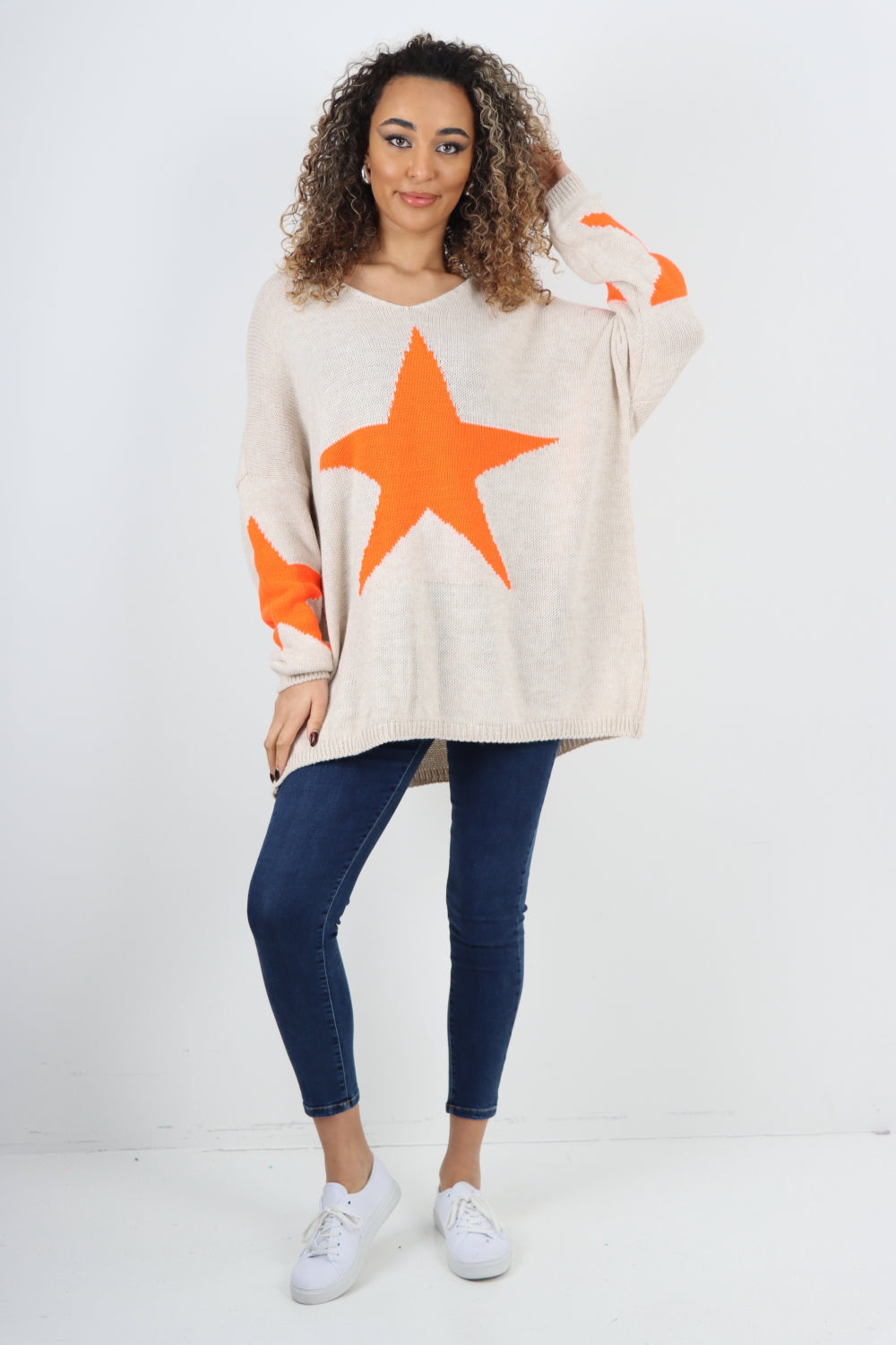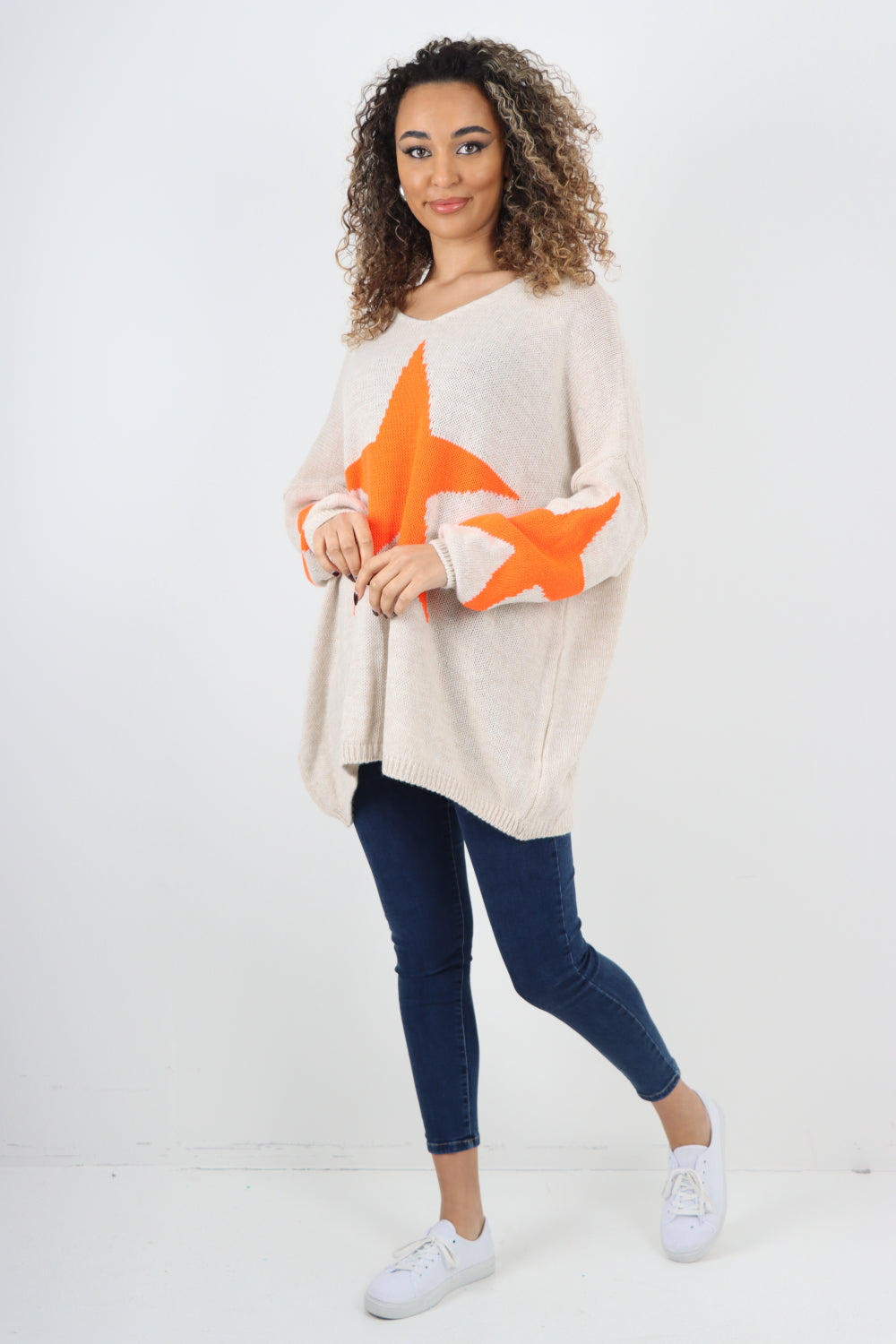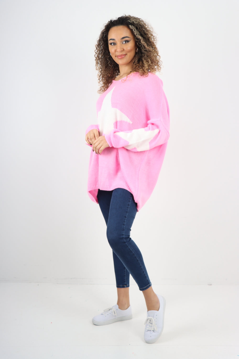This Oversized Star Print Knitted Jumper  Top  is fun, cozy, statement piece your wardrobe has been waiting for. Its playful star design instantly catches attention while offering a sense of warmth and personality. Designed with a flattering oversized fit, this jumper caters comfortably to UK sizes 8–16. The knitted fabric is soft to the touch, breathable, and perfect for layering through autumn and winter. Whether you’re a boutique owner stocking fresh trends or someone searching for that perfect everyday knit, this one is a clear standout.