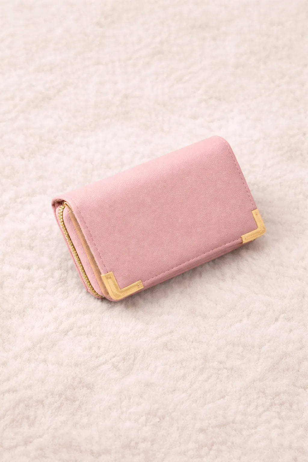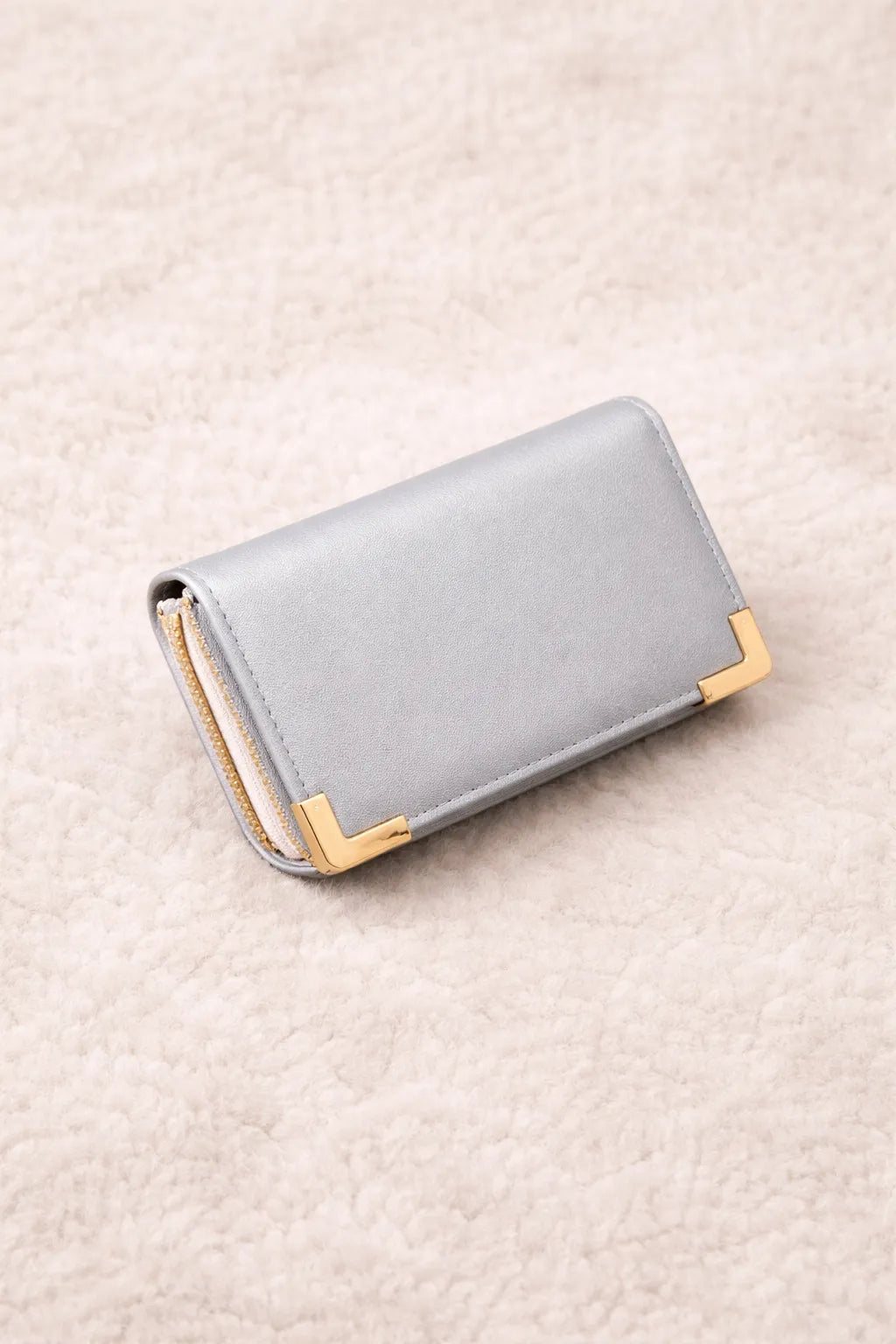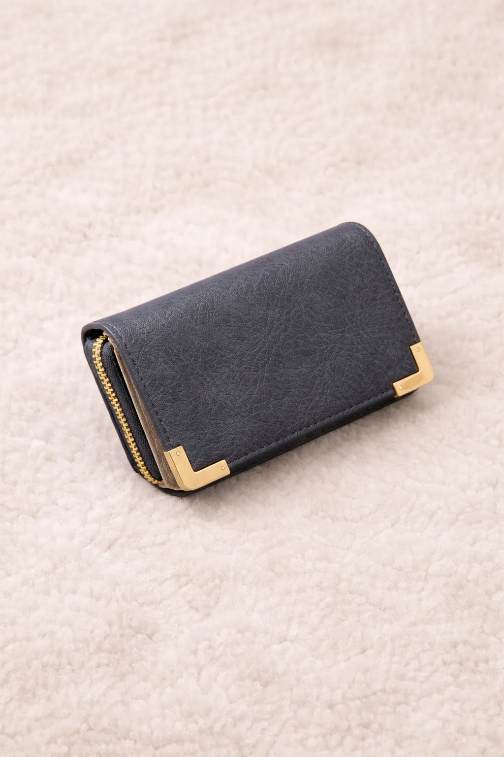 Stay organised in style with this elegant women’s compact zip-around wallet, designed for everyday use. Featuring a secure zip closure, multiple card slots, a spacious coin compartment, and luxury metal corner detailing, this wallet combines practicality with a premium finish in a sleek, space-saving design.